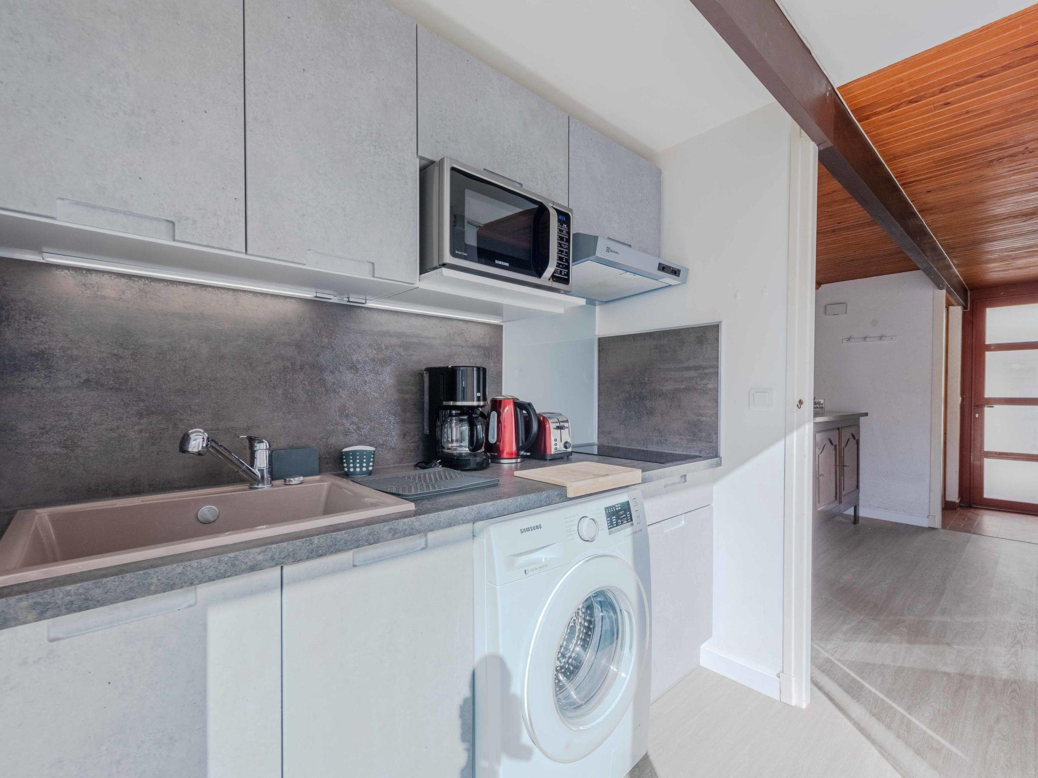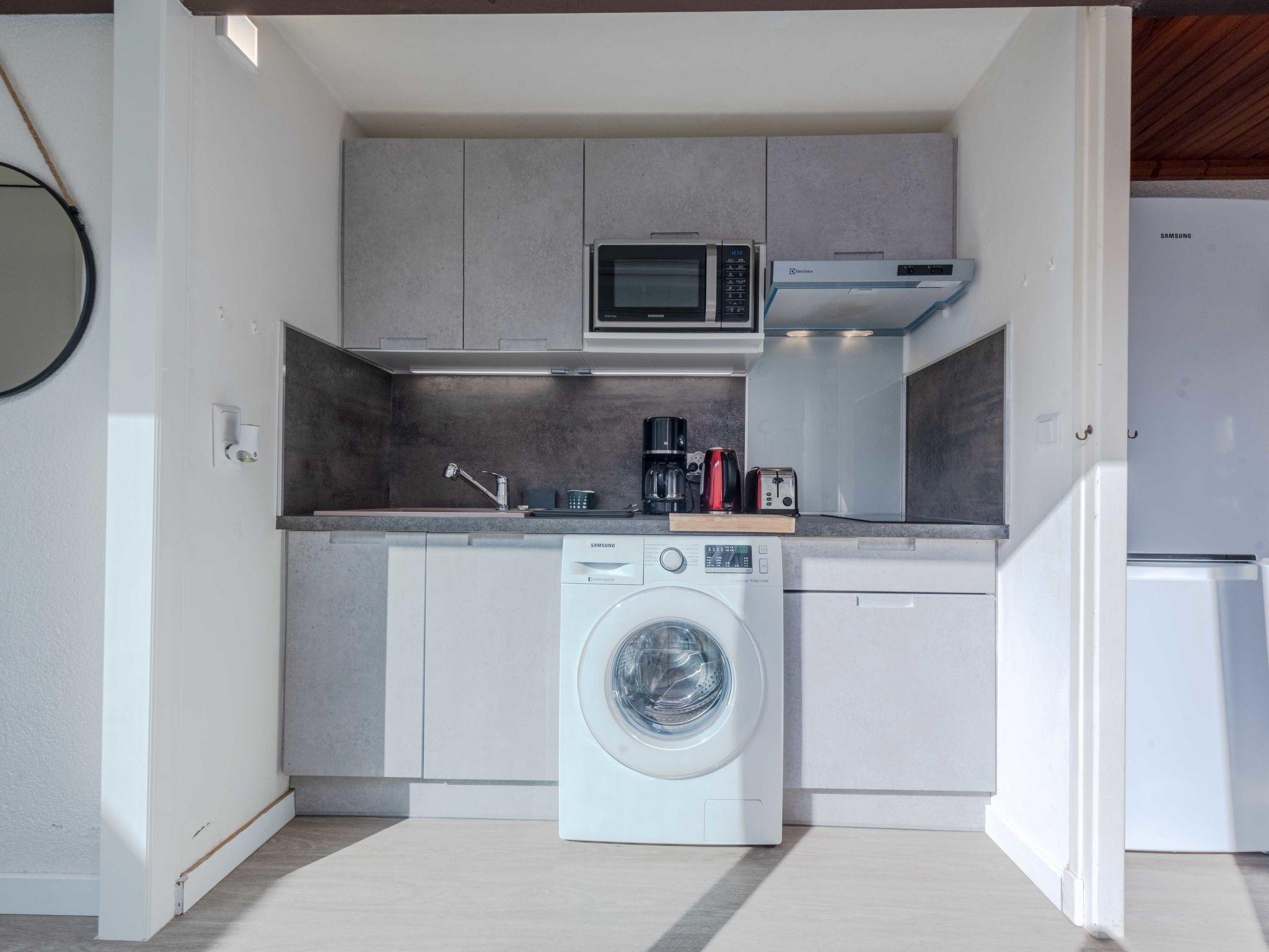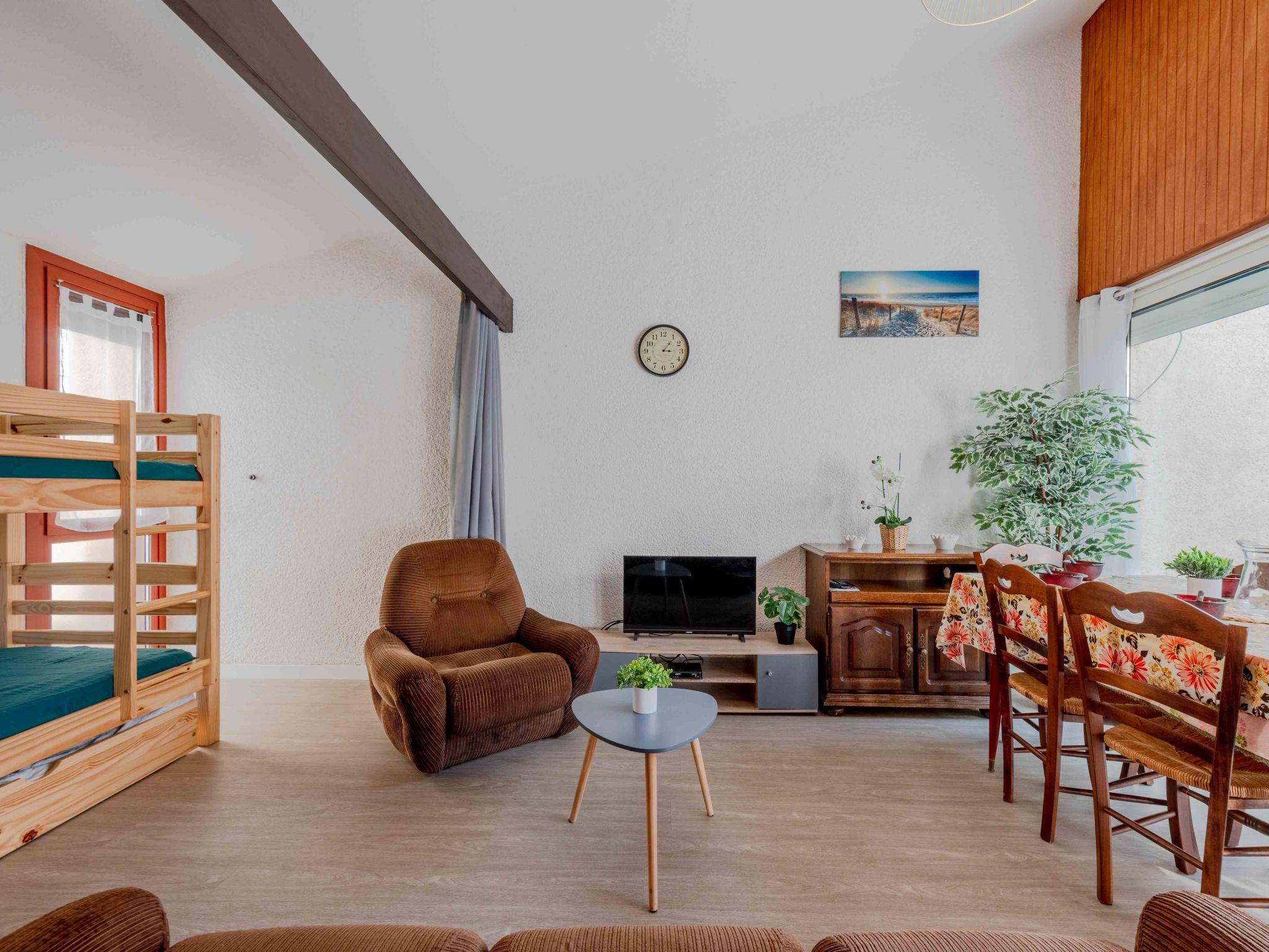 2-room house 61 m2, on the ground floor. Beautiful furnishings: living/dining room. 1 room with 1 french bed (1 x 140 cm, length 190 cm). Sleeping alcove with 1 x 1 bunk beds (80 cm, length 190 cm), 1 pull-out bed (2 pers. 2 x 80 cm, length 190 cm). (2 ceramic glass hob hotplates, toaster, kettle, electric coffee machine, combination microwave). Shower, sep. WC. Heating, air-conditioning. Terrace 15 m2. Terrace furniture. Facilities: washing machine. Internet (WiFi, extra). Parking. Please note: maximum 1 pet/ dog allowed. Smoke alarm. Offer by a private individual according to Art. 155, IV of CGI.