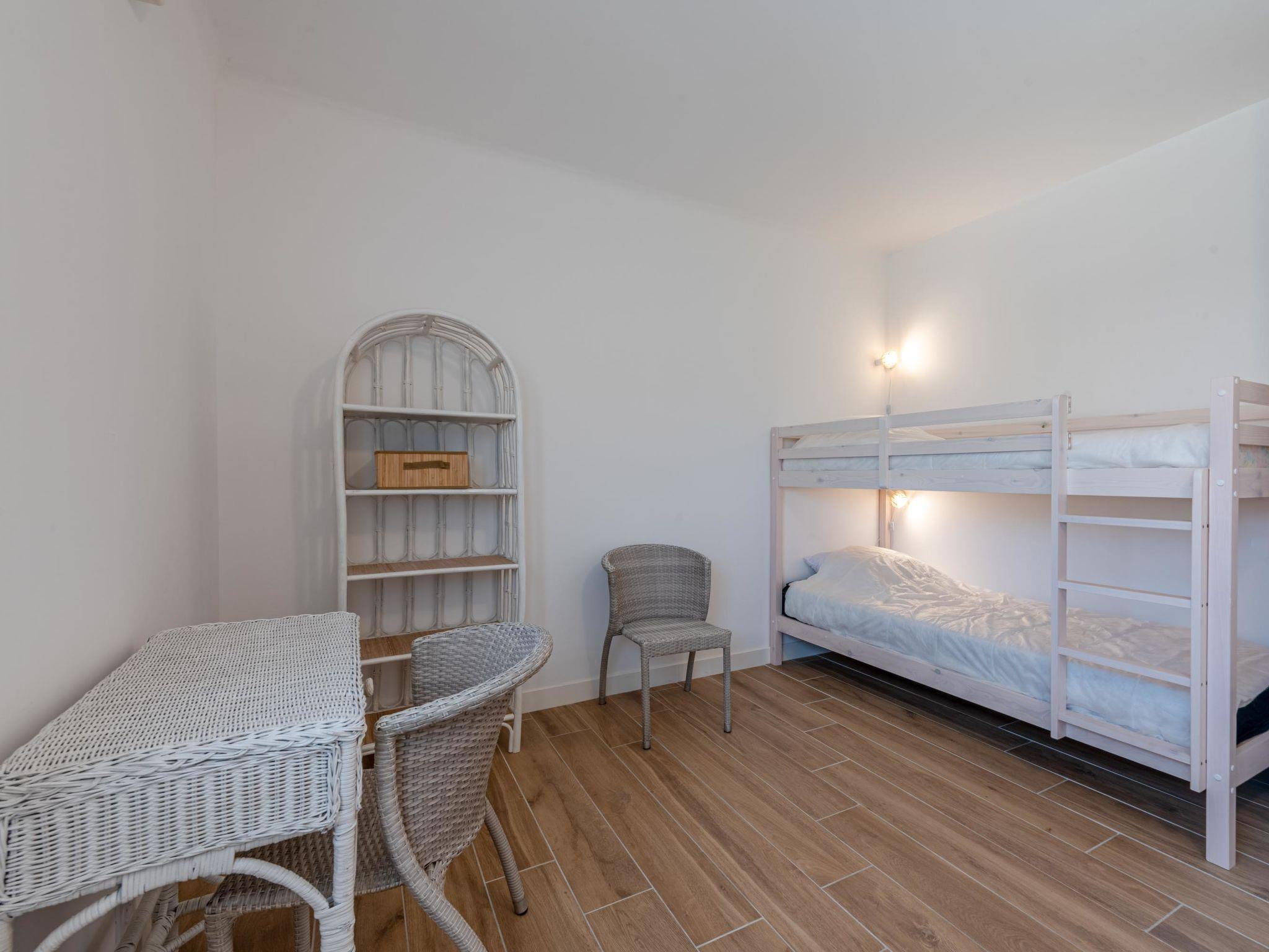 "La Terrasse", 2-room apartment 50 m2 on 1st floor, east facing position. Living/dining room with TV (flat screen). Exit to the terrace. 1 room with 1 x 2 bunk beds (90 cm, length 190 cm), 1 french bed (1 x 160 cm, length 200 cm). Open kitchen (oven, dishwasher, 3 ceramic glass hob hotplates, toaster, kettle, microwave, electric coffee machine). Exit to the terrace. Shower, sep. WC. Air-conditioning. Terrace 15 m2, east facing position. Terrace furniture. Facilities: washing machine. Internet (WiFi, free). Please note: smoke alarm. Offer by a private individual according to Art. 155, IV of CGI.