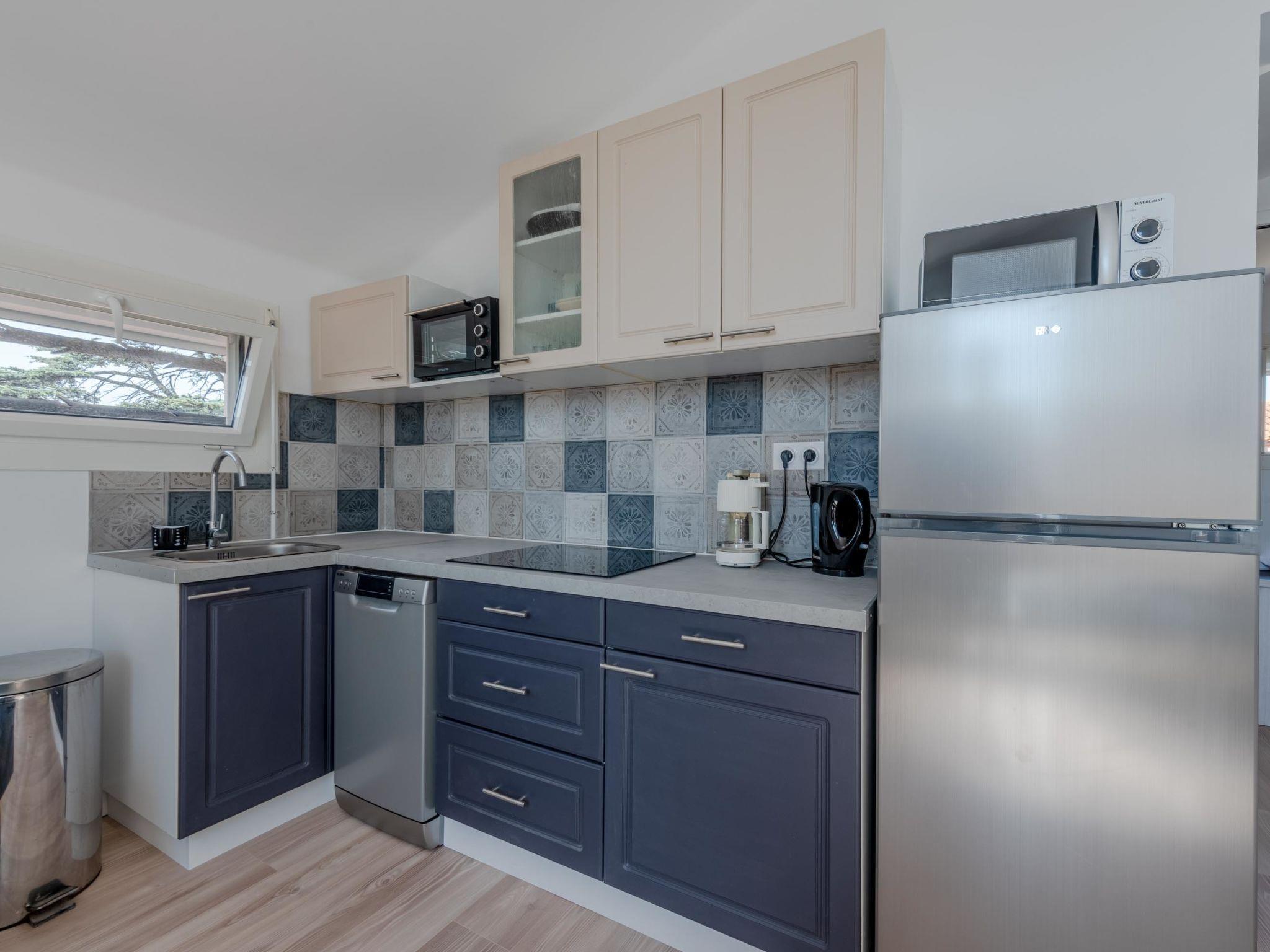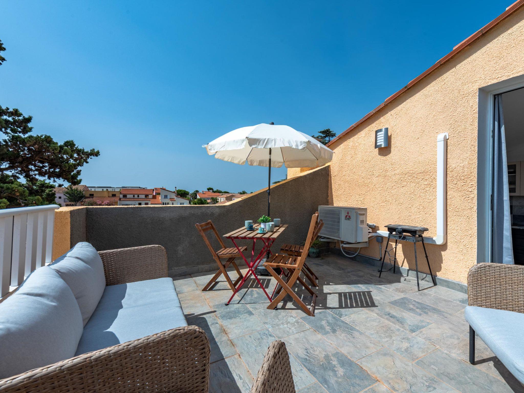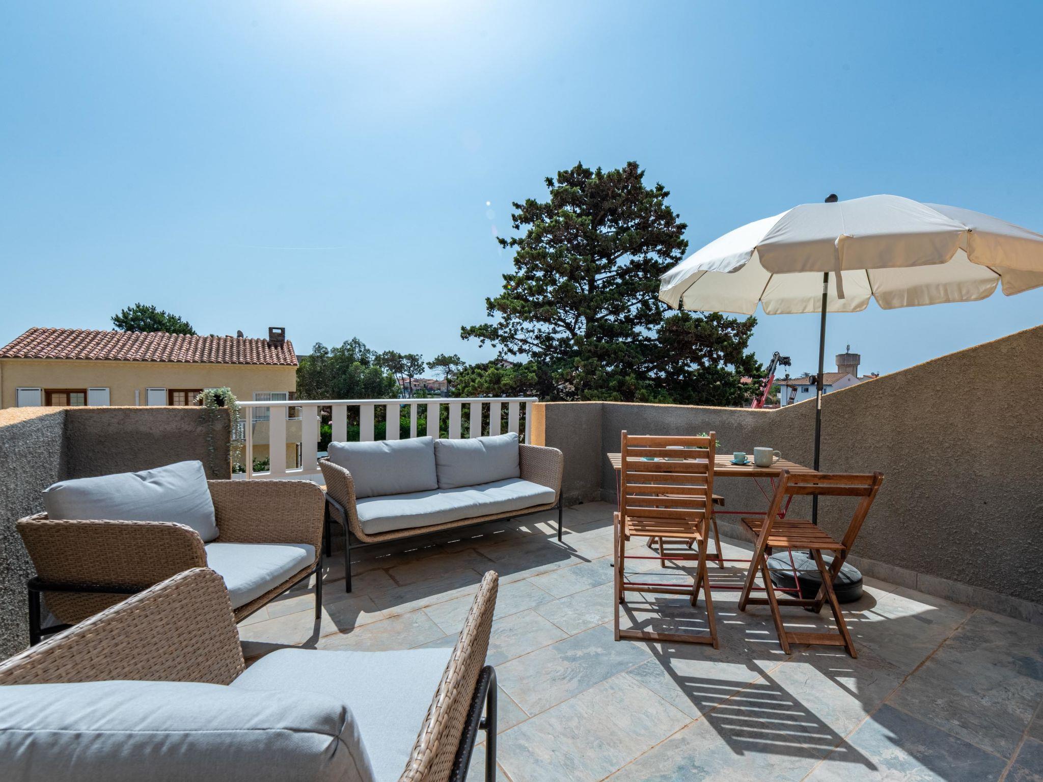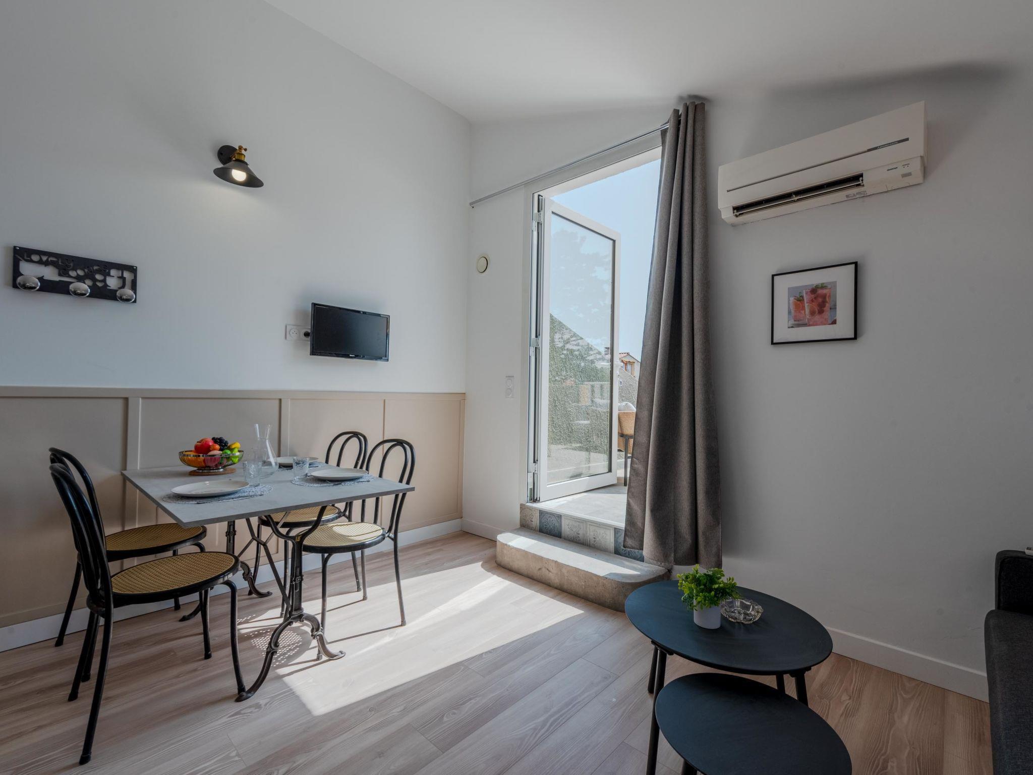 "Le Balcon", 2-room apartment 30 m2 on 2nd floor. Living/dining room with 1 sofabed (90 cm, length 190 cm), TV (flat screen). Exit to the terrace. 1 room with 1 french bed (1 x 140 cm, length 190 cm). Open kitchen (dishwasher, 3 ceramic glass hob hotplates, toaster, kettle, microwave, electric coffee machine). Exit to the terrace. Shower, sep. WC. Air-conditioning. Terrace 15 m2, east facing position. Terrace furniture. Facilities: washing machine. Internet (WiFi, free). Please note: smoke alarm. Offer by a private individual according to Art. 155, IV of CGI.