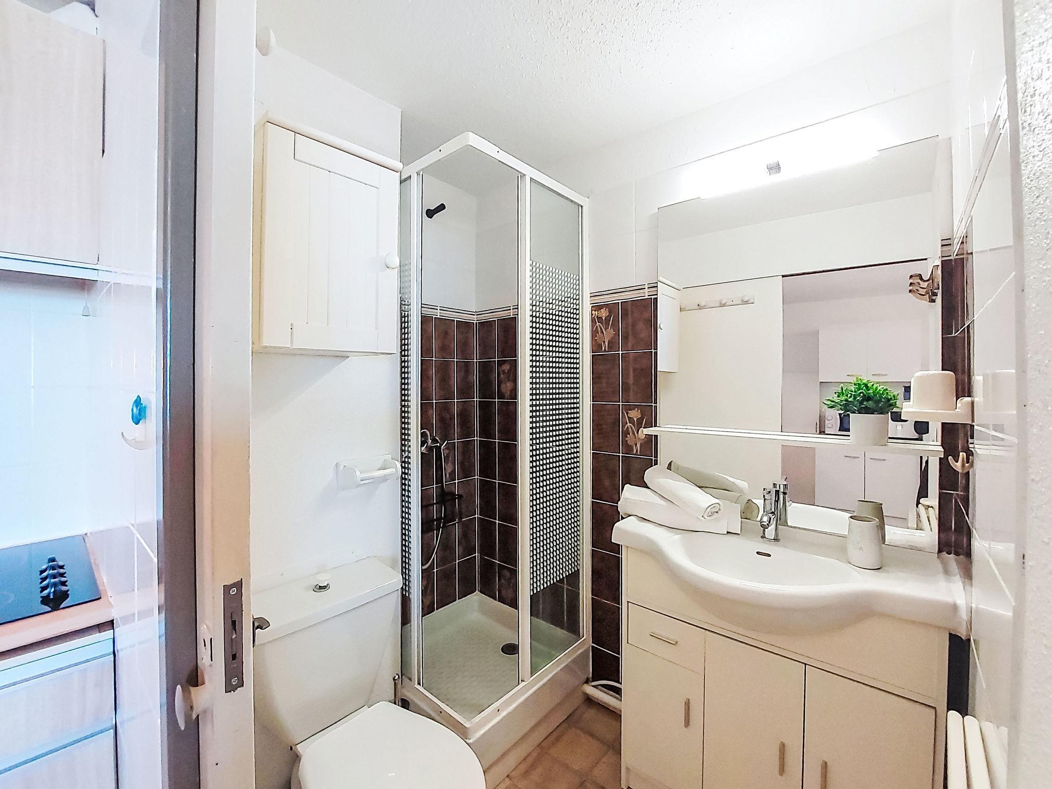 2-room apartment 28 m2 on 2nd floor, north-east facing position. Dining room with TV (flat screen). 1 room with 1 french bed (1 x 140 cm, length 190 cm). Sleeping alcove with 1 x 2 bunk beds (80 cm, length 190 cm). Kitchenette (4 ceramic glass hob hotplates, toaster, kettle, freezer, electric coffee machine, combination microwave). Shower/WC. Beautiful view of the sea and the garden. Facilities: washing machine, dryer. Internet (WiFi). Parking. Please note: smoke alarm. Offer by a private individual according to Art. 155, IV of CGI.