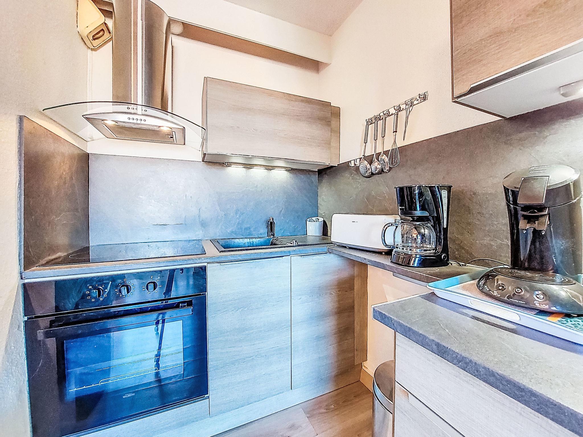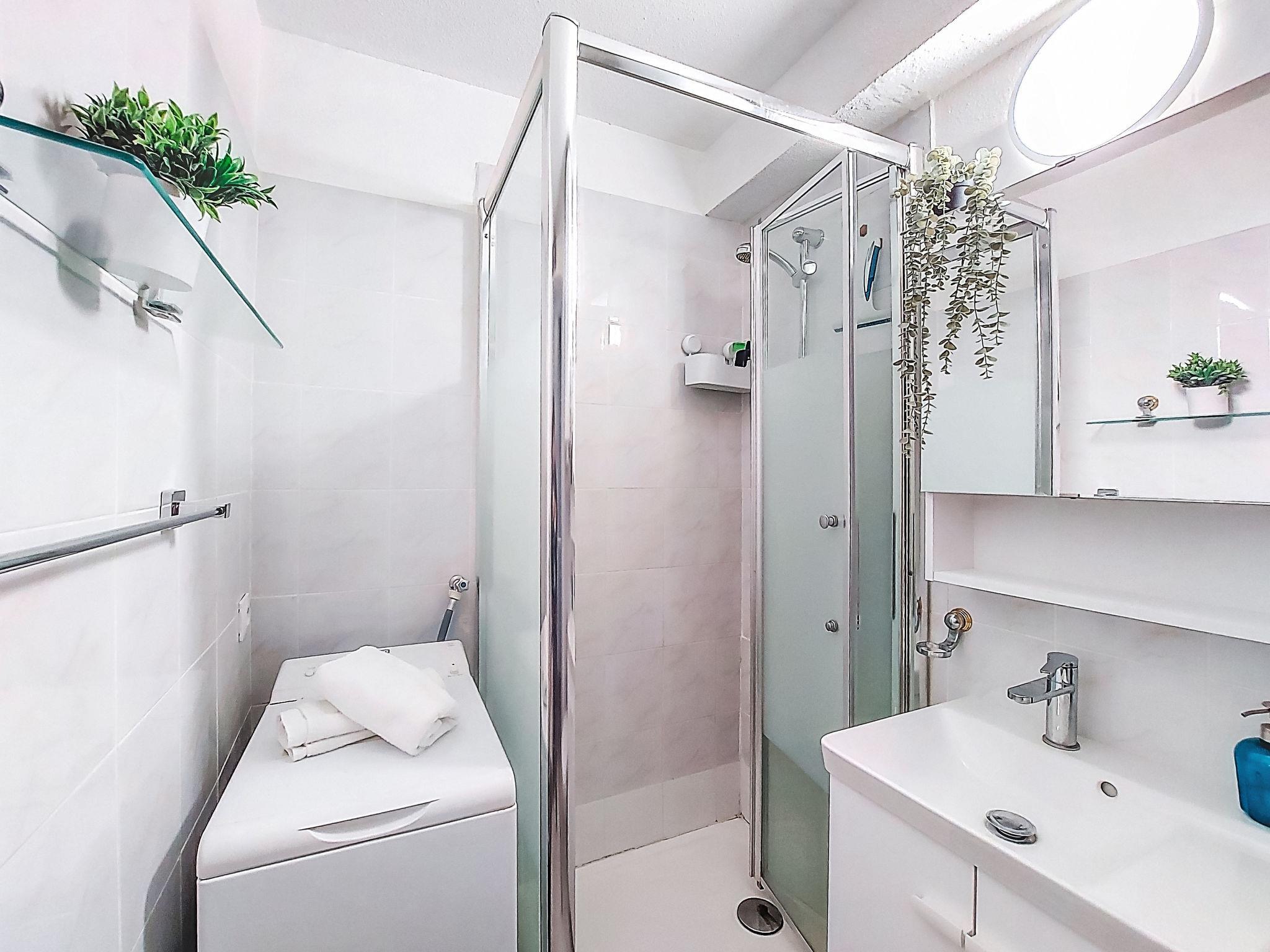 2-room apartment 28 m2 on 3rd floor. Living room with TV (flat screen). Exit to the loggia. 1 room with 1 double sofabed (1 x 140 cm, length 190 cm). Open kitchen (3 ceramic glass hob hotplates, toaster, microwave, electric coffee machine). Shower/WC. Upper floor: gallery with 1 french bed (1 x 140 cm, length 190 cm). Side view of the sea. Facilities: washing machine, dryer. Internet (WiFi, extra). Offer by a private individual according to Art. 155, IV of CGI.