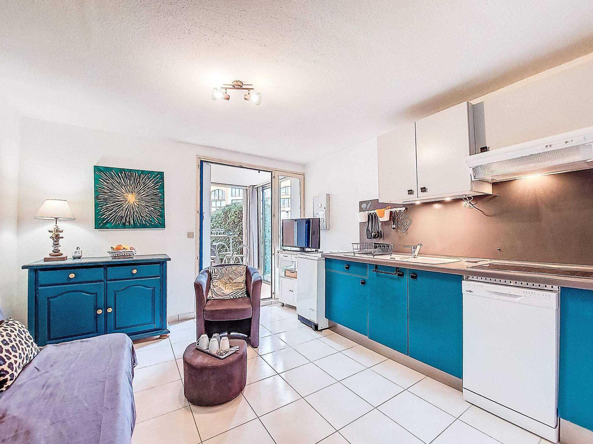 "Cap de mer", 2-room apartment 28 m2, on the ground floor, south-east facing position. Living/dining room with TV (flat screen). Exit to the terrace, to the loggia. 1 room with 1 french bed (1 x 140 cm, length 190 cm). Sleeping alcove with 1 x 2 bunk beds (90 cm, length 190 cm). Kitchenette (dishwasher, 4 ceramic glass hob hotplates, toaster, kettle, electric coffee machine, combination microwave). Shower/WC. Terrace 9 m2. Terrace furniture, covered balcony. Facilities: washing machine. Internet (WiFi, extra). Parking. Please note: maximum 1 pet/ dog allowed. Smoke alarm. Offer by a private individual according to Art. 155, IV of CGI.