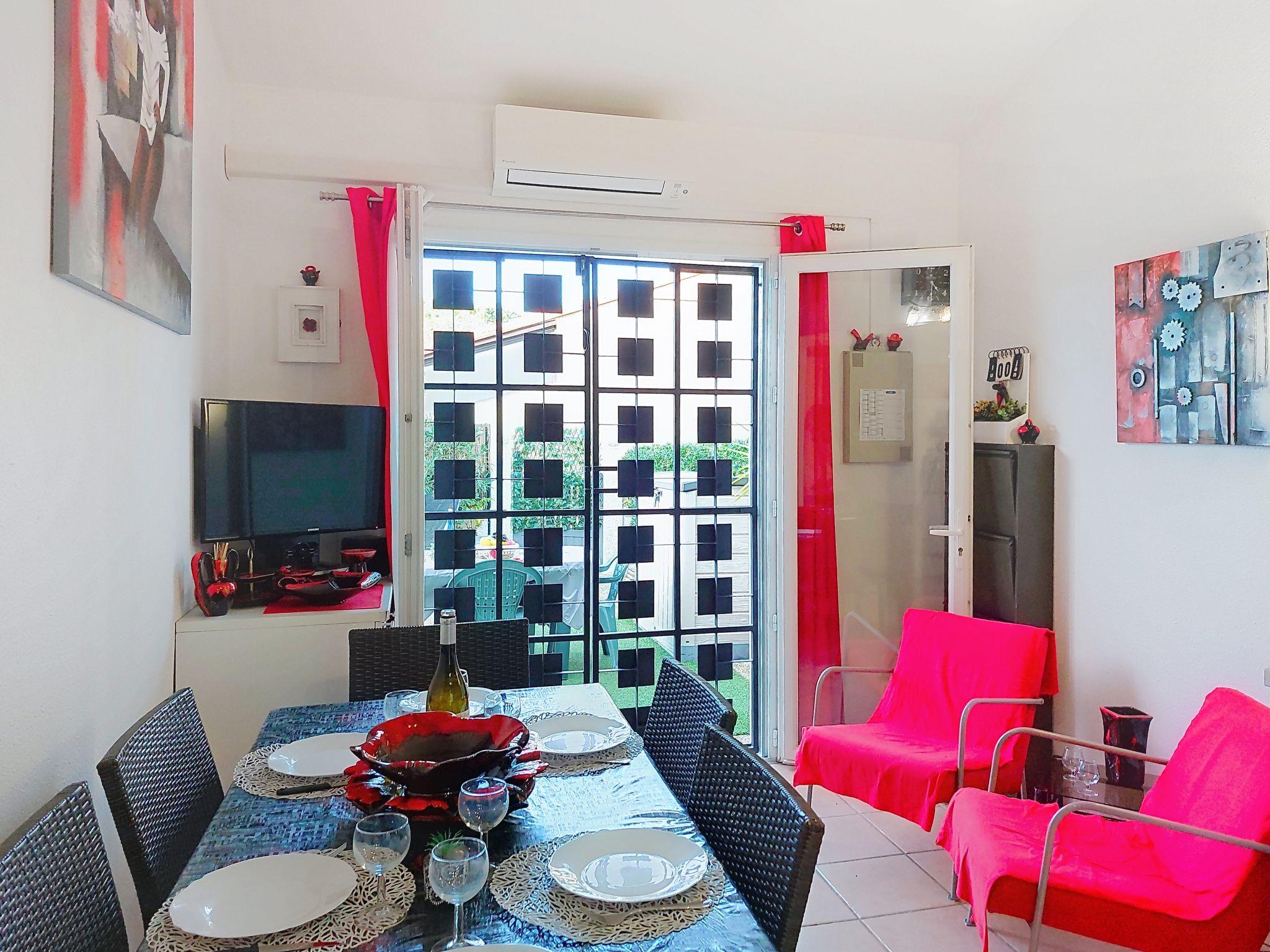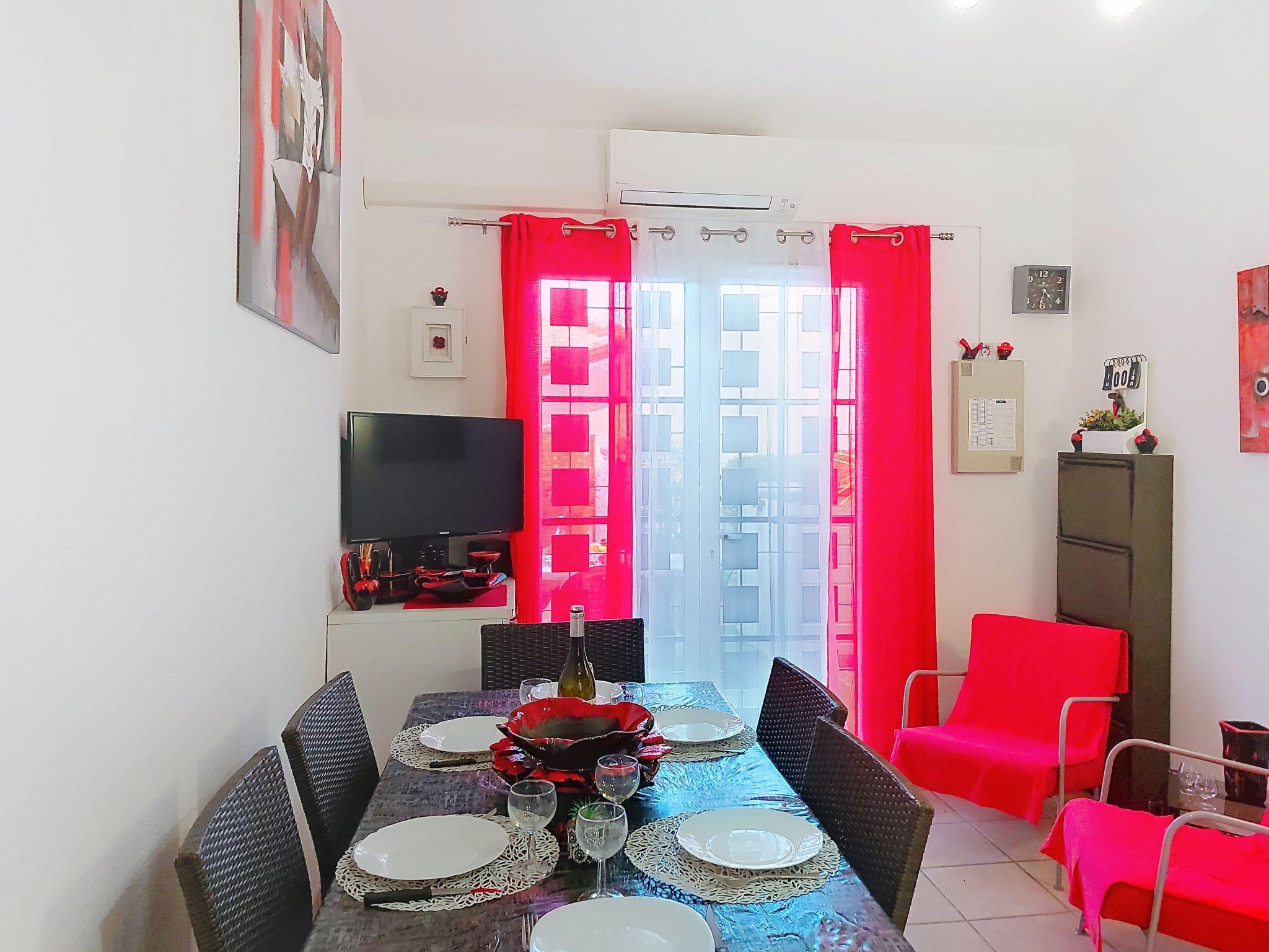 Residence "Les Amandines". In the resort 800 m from the centre of Barcarès, 850 m from the sea, 800 m from the beach. In the complex: parking. Shop, restaurant 700 m, bus stop "Mairie" 400 m, railway station "La Franqui" 20 km. Nearby attractions: Aqualand Port Leucate 9 km, Réserve Africaine de Sigean 41 km, parcours aventure 3 km, cinéma 4 km, site des dosses 5 km. Well-known lakes can easily be reached: Lac de villeneuve de la Raho 34 km, Lac de leucate ou de salses 11 km. Hiking paths: Sentier du guetteur 8 km, la forteresse de salses 15 km, Sentier du littoral Collioure 40 km.