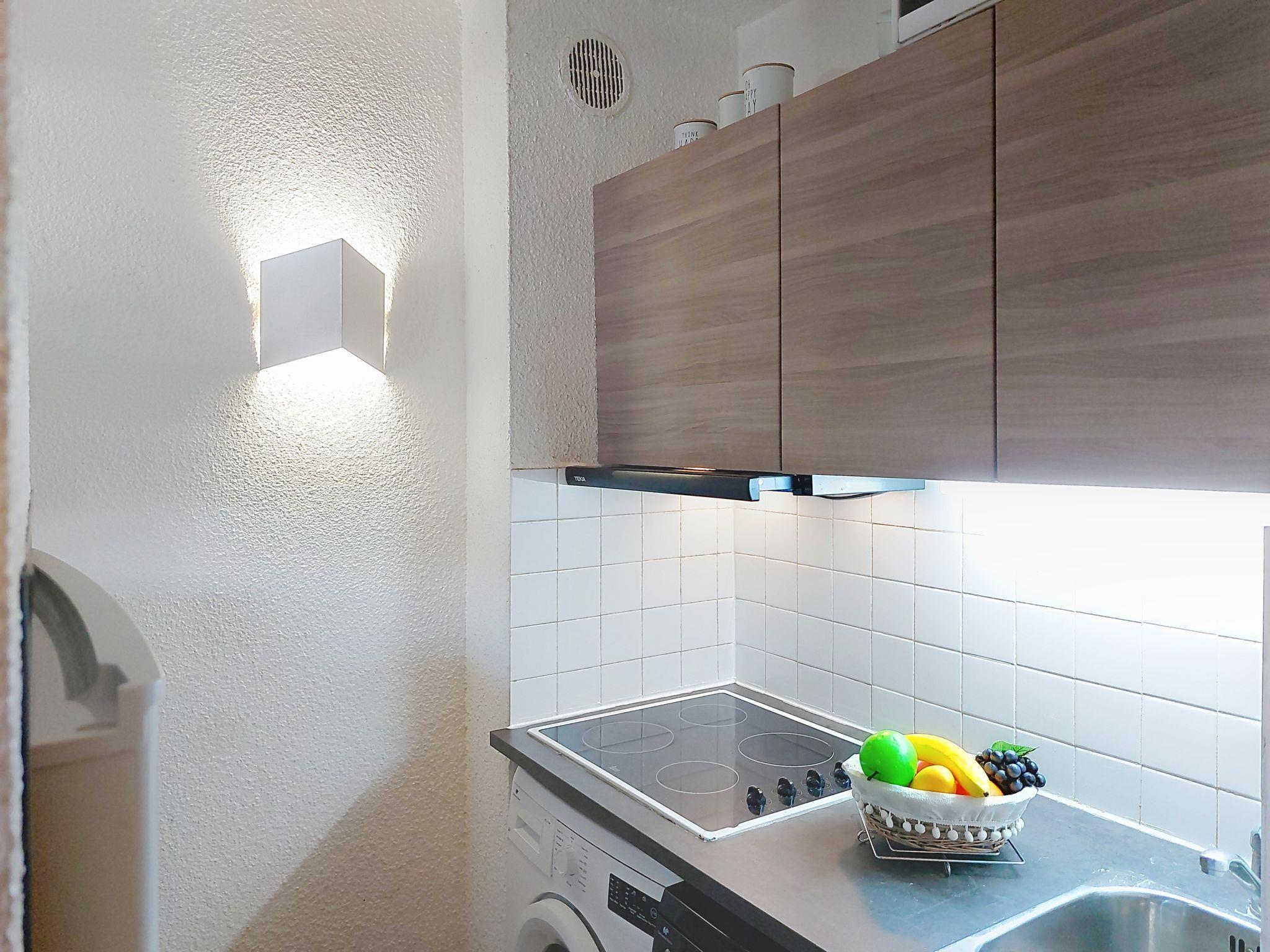2-room apartment 28 m2 on 1st floor, south-east facing position. Living/dining room with 1 sofabed (80 cm, length 190 cm), 1 pull-out bed (2 pers. 2 x 80 cm, length 190 cm), TV (flat screen). Exit to the terrace. 1 room with 1 french bed (1 x 140 cm, length 190 cm). Kitchenette (dishwasher, 4 ceramic glass hob hotplates, microwave, freezer, electric coffee machine). Bathroom, sep. WC. Terrace 7 m2. Terrace furniture. View of the garden. Facilities: washing machine. Internet (WiFi). Parking at 150 m. Please note: smoke alarm. Offer by a private individual according to Art. 155, IV of CGI.