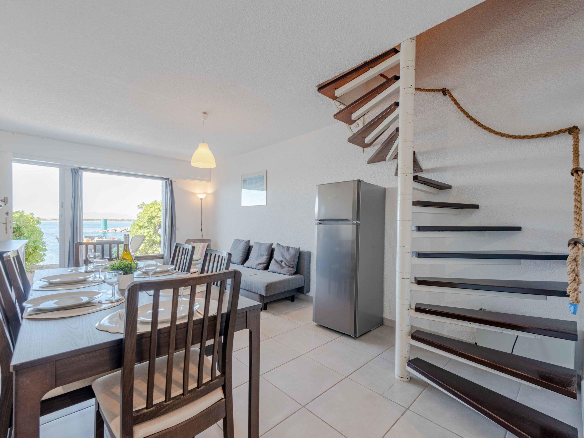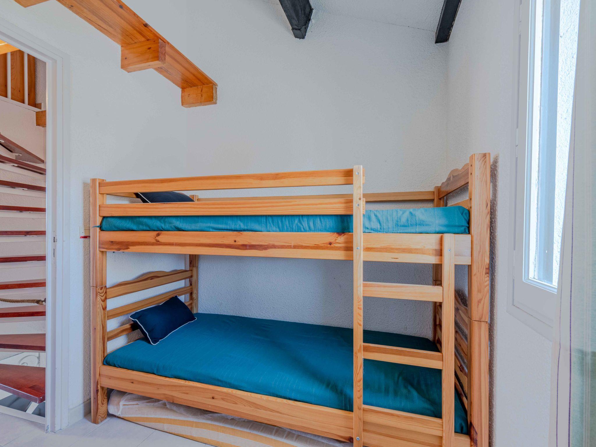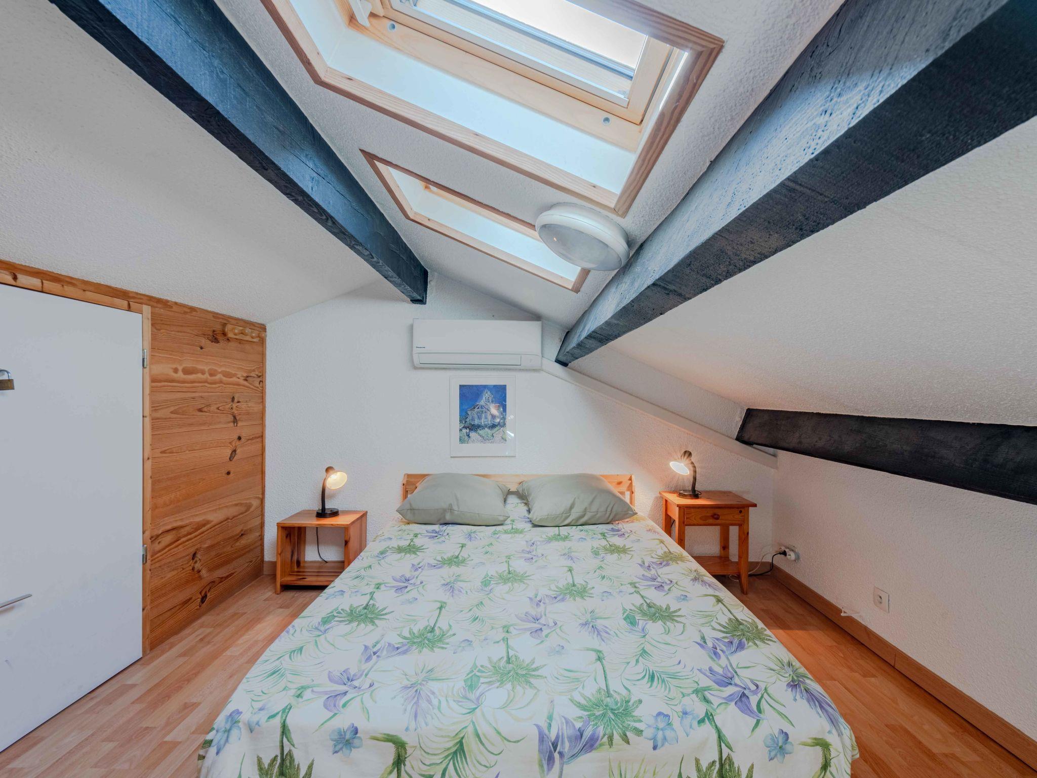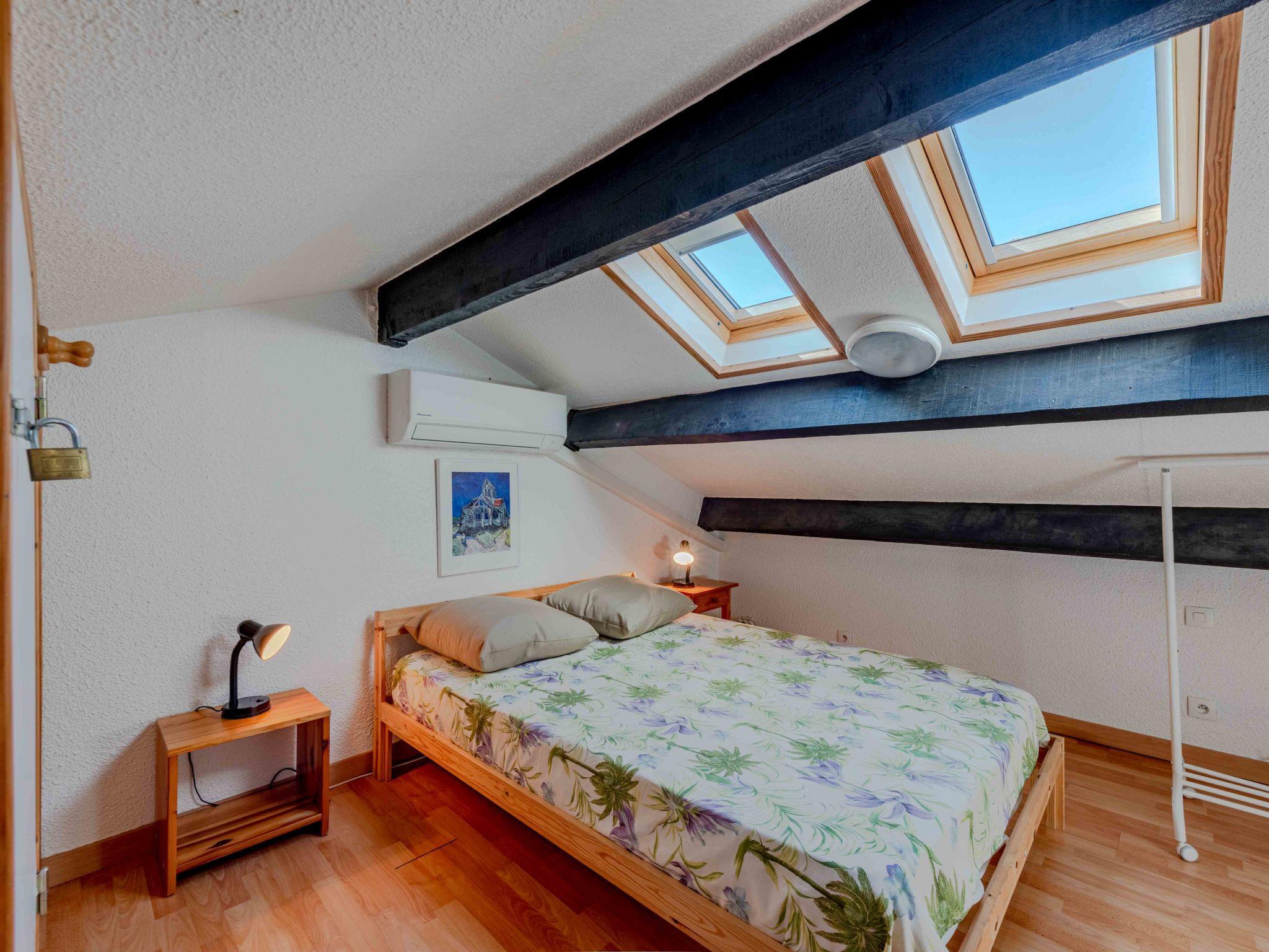 4-room terraced house 60 m2 on 2 levels, on the ground floor, south facing position. Living/dining room with TV (flat screen). Exit to the terrace. Kitchenette (4 hot plates, oven, dishwasher, toaster, kettle, microwave, freezer, electric coffee machine). Sep. WC. Air-conditioning. Upper floor: (spiral staircase), 1 room with 1 french bed (1 x 140 cm, length 190 cm). Exit to the loggia. 1 room with 1 x 2 bunk beds (80 cm, length 190 cm). Bath/WC. Air-conditioning. 2nd upper floor: gallery with 1 french bed (1 x 140 cm, length 190 cm). Terrace 10 m2. Terrace furniture, barbecue. View of the lake and the mountains. Facilities: washing machine. Internet (WiFi, extra). Parking. Please note: smoke alarm. Offer by a private individual according to Art. 155, IV of CGI.