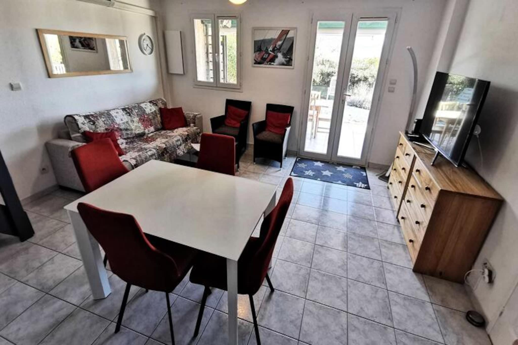 Imagine waking up to the gentle sound of waves from the nearby marine lake, just 30 meters from your doorstep. This stunning four-room villa offers an idyllic retreat where modern comfort meets natural beauty. With a west-facing orientation, the property bathes in golden sunsets, creating the perfect ambiance for evenings spent on the expansive 100 m² garden terrace. Whether you're sipping a glass of wine or enjoying a family meal outdoors, the serene surroundings promise unforgettable moments. Inside, the villa boasts a thoughtfully designed layout. The ground floor features a luxurious master suite with a double bed and private bathroom, while upstairs you'll find a cozy double bedroom and a charming children's room with bunk beds. The fully equipped kitchen includes a ceramic hob, combination microwave, fridge-freezer, dishwasher, and washing machine, ensuring all the conveniences of home. The 53 m² living area is complemented by air conditioning, Wi-Fi, and a TV, making it a haven of relaxation after a day of exploration. Located just 1 km from the beach, this villa is perfectly positioned for those who love the sea. The shared swimming pool offers a refreshing escape, though availability may vary due to local water restrictions. Private parking ensures convenience, and the surrounding area is rich with opportunities for outdoor activities and cultural discoveries. Whether you're seeking a peaceful getaway or an active holiday by the water, this villa provides the ideal setting for creating lasting memories. With its blend of comfort, style, and proximity to nature, it’s a destination you’ll want to return to time and again.
