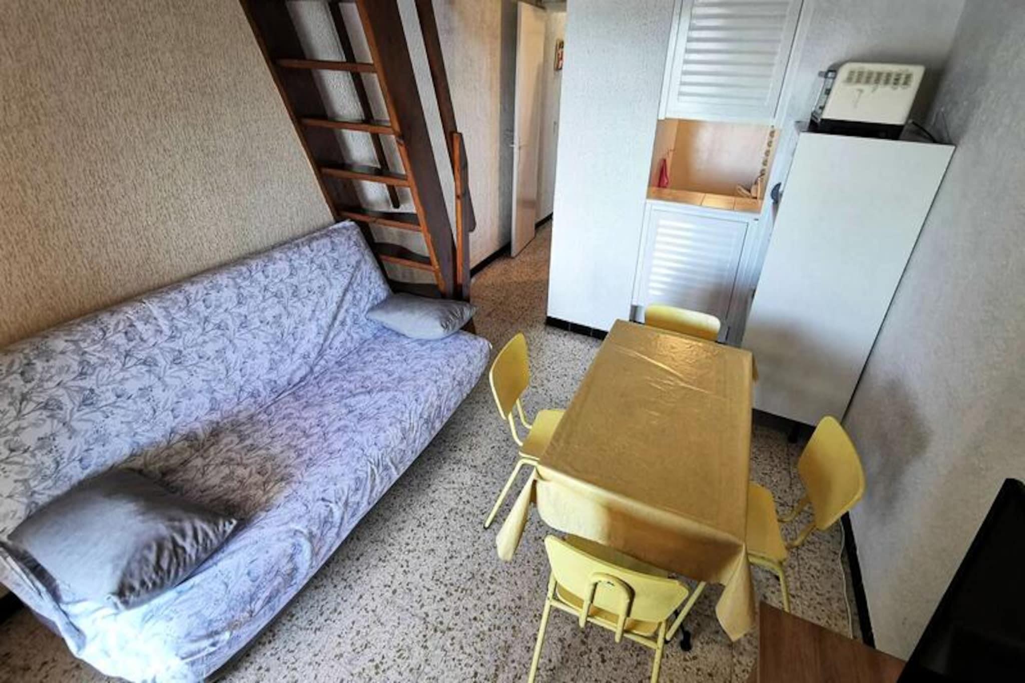 Overlooking the serene marine lake, this charming mezzanine studio offers a tranquil escape for up to four guests. With its south-facing open loggia, you can bask in the Mediterranean sun while enjoying uninterrupted views of the shimmering waters. Whether you're seeking a peaceful retreat or an active coastal getaway, this cozy space provides the perfect balance of relaxation and convenience. Inside, the studio is thoughtfully designed to maximize comfort and functionality. The living area features a comfortable double sofa bed, while the mezzanine offers two single beds, making it ideal for families or small groups. The kitchenette is equipped with a removable electric hob, microwave, mini-oven, and table-top refrigerator, ensuring you have everything needed to prepare meals during your stay. Additional amenities include a TV and a washing machine, all within a compact yet inviting 27 m² layout. Located just 2.5 km from the beach, 300 meters from a supermarket, and 3 km from the town center, the studio is perfectly positioned for exploring the local area. Private parking ensures easy access, and the peaceful surroundings make it an ideal base for your holiday. Whether you're strolling along the nearby coastline or enjoying the vibrant atmosphere of the town, this studio offers a delightful home away from home. With its stunning views, convenient location, and cozy ambiance, this mezzanine studio invites you to create unforgettable memories by the marine lake. Perfect for couples, friends, or small families, it’s a haven of comfort and charm on the Mediterranean coast.