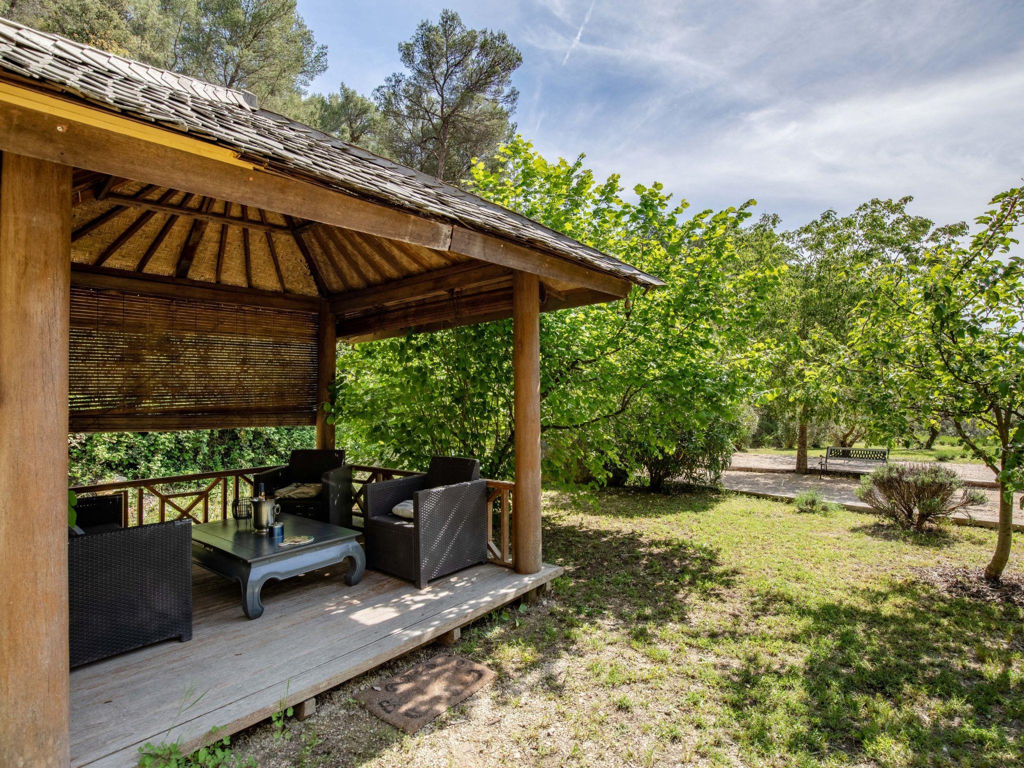 Le Barroux 7 km from Malaucène: Villa "L'Oliveraie", 2 storeys, built in 2005, surrounded by trees. In the resort 2 km from the centre of Le Barroux. Private: property 3 ha, well-kept garden (fenced) with wildlife garden and flowers, swimming pool angular, with privacy (5 x 8 m, depth 120 - 175 cm, seasonal availability: 01.May. - 30.Sep.). Pool house, table tennis, boules. In the house: massage (extra). Trampoline. Breakfast and half board possible (extra). Parking (for 2 cars) on the premises. Grocery 2 km, supermarket 7 km, restaurant 500 m, bakery 2 km, bus stop "Le Barroux" 1.3 km. Nearby attractions: Château du Barroux 2 km, Malaucène 7 km, Parc Spiroux 20 km, Wave Island 20 km, Mont Ventoux 21 km. Please note: car recommended. Suitable for families, baby equipment on request (included). Residence with electric gates. The owner lives on the same property.