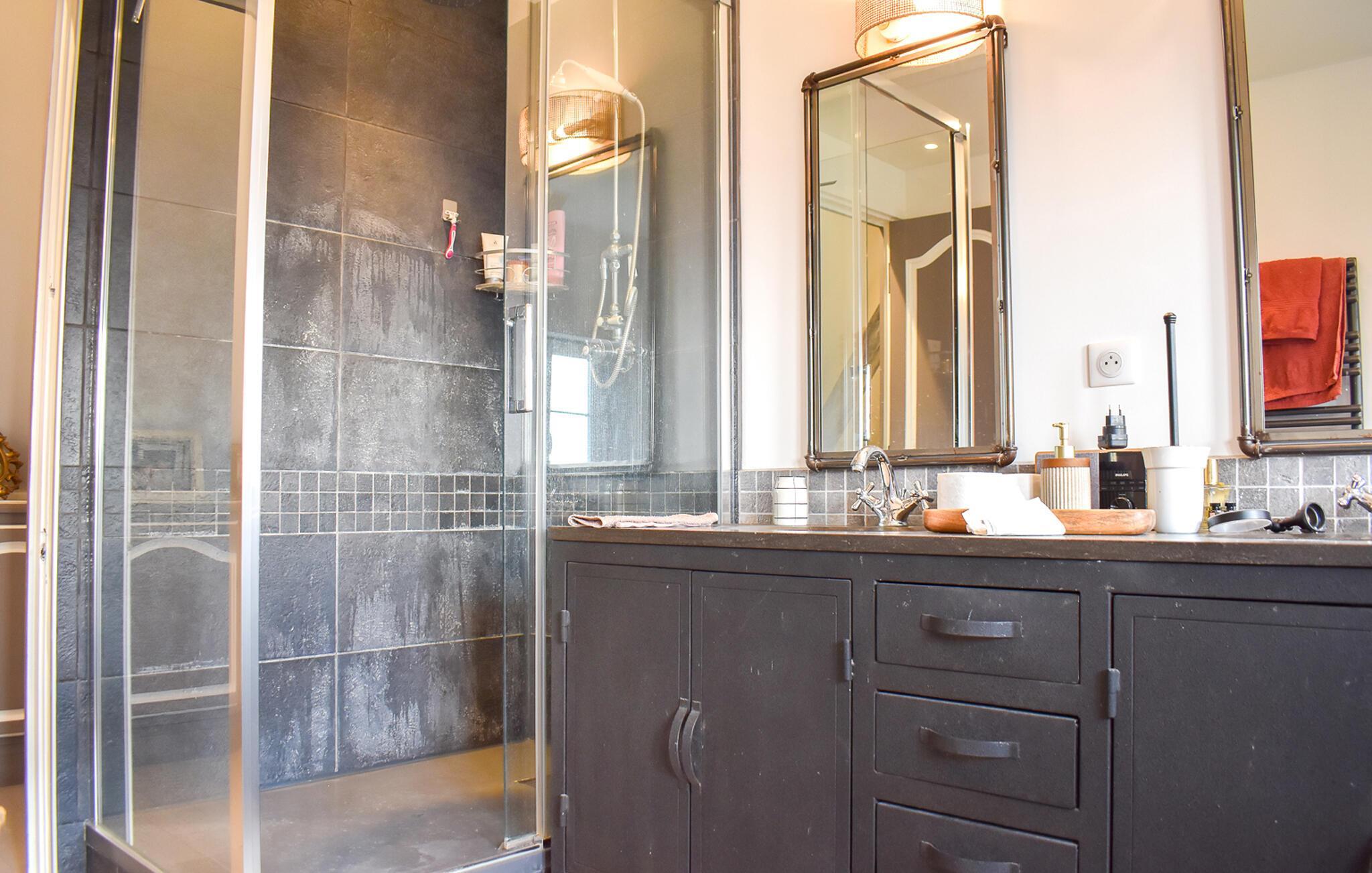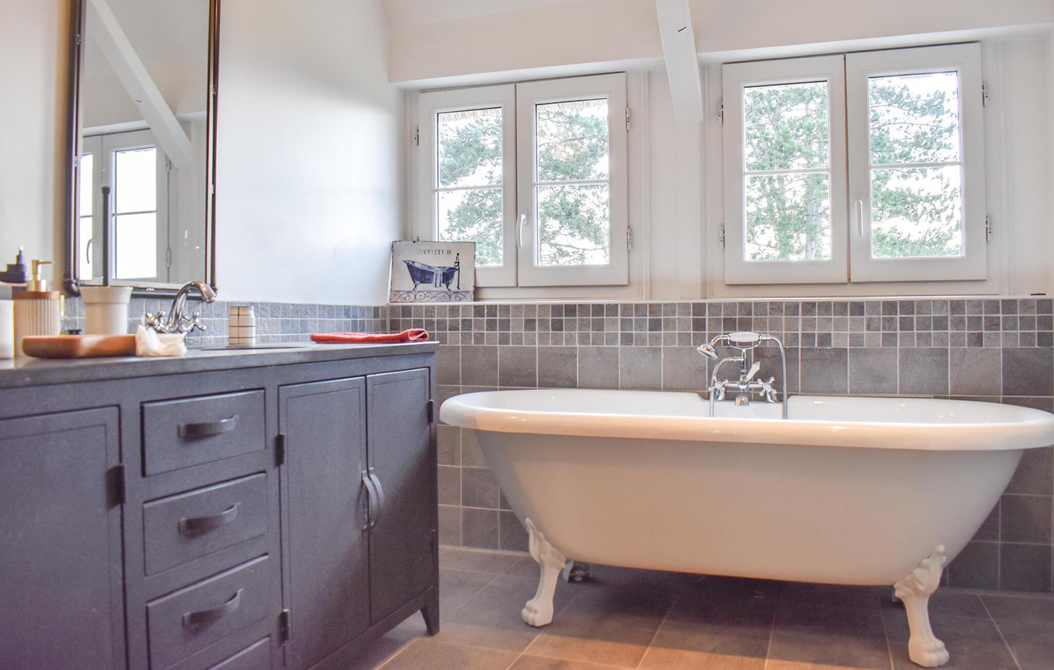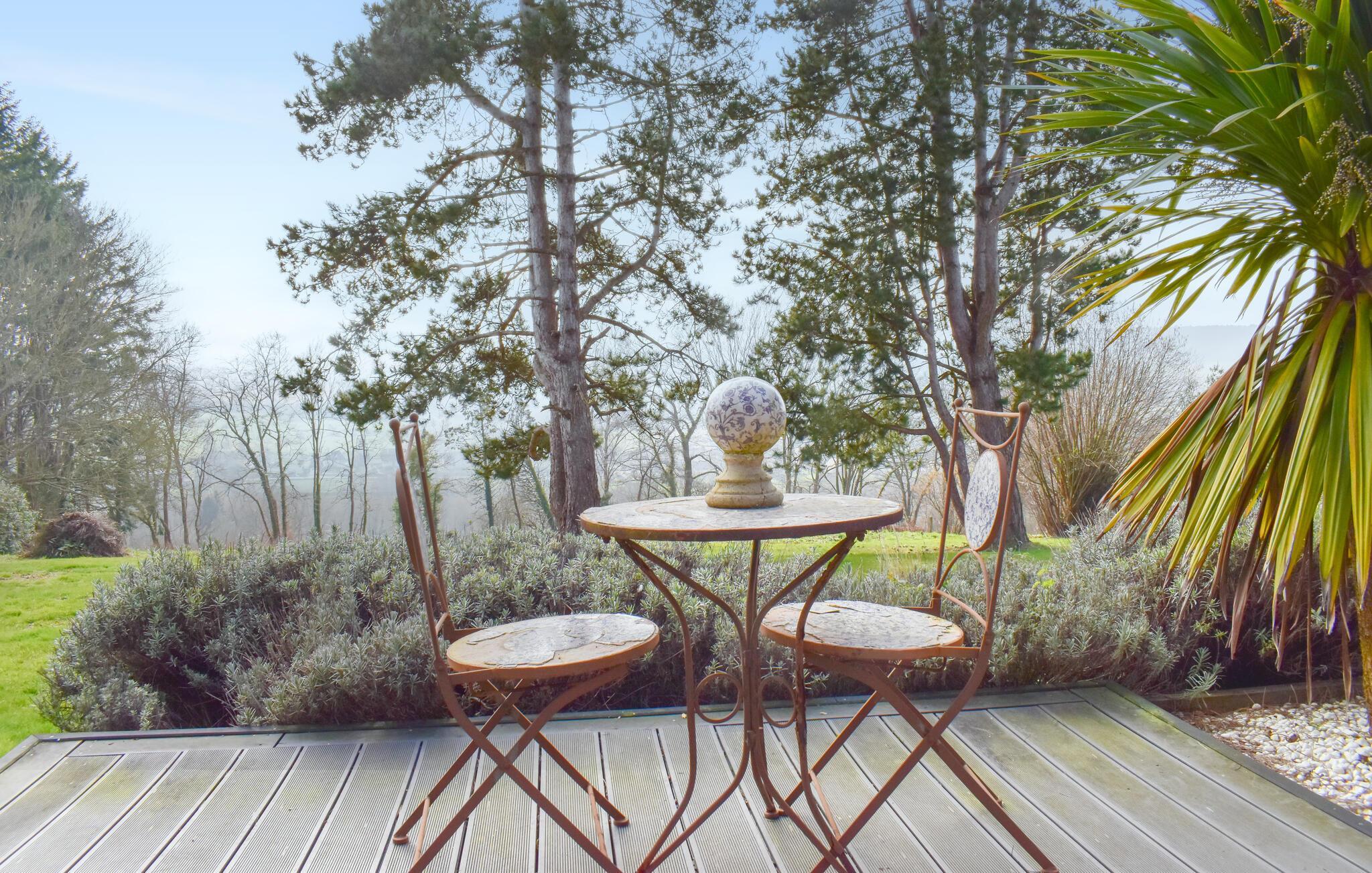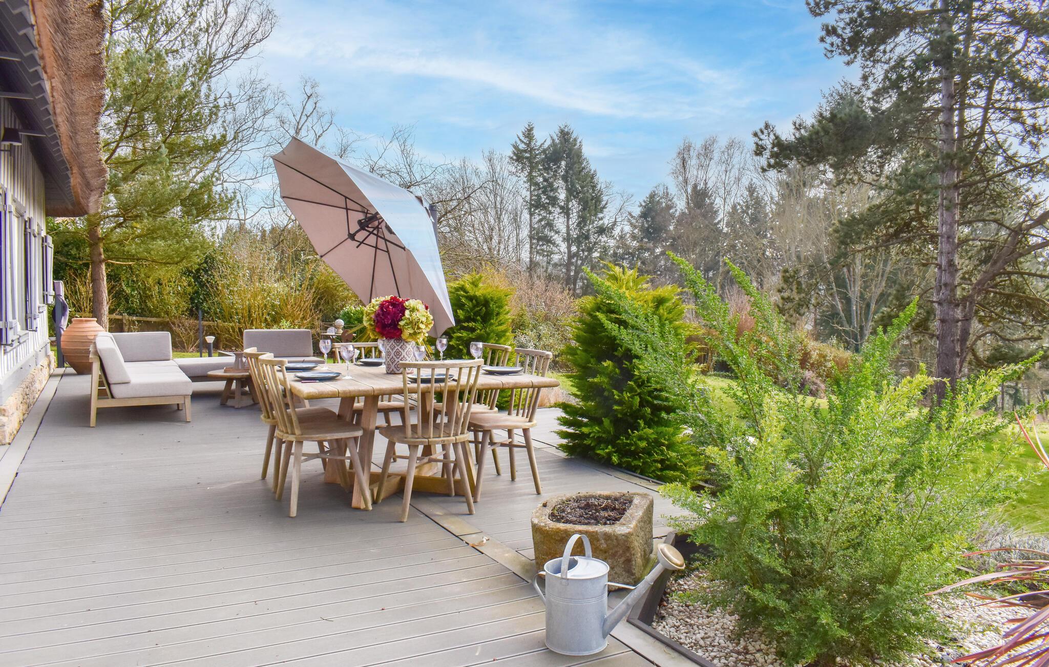 Im Außenbereich öffnet sich der bezaubernde Garten zu den sanften Hügeln des Calvados und bietet einen freien Blick auf die umliegende Landschaft – servieren Sie Ihr Frühstück auf der Terrasse und lassen Sie Ihre Kinder unbesorgt auf dem geschützten Grundstück spielen.