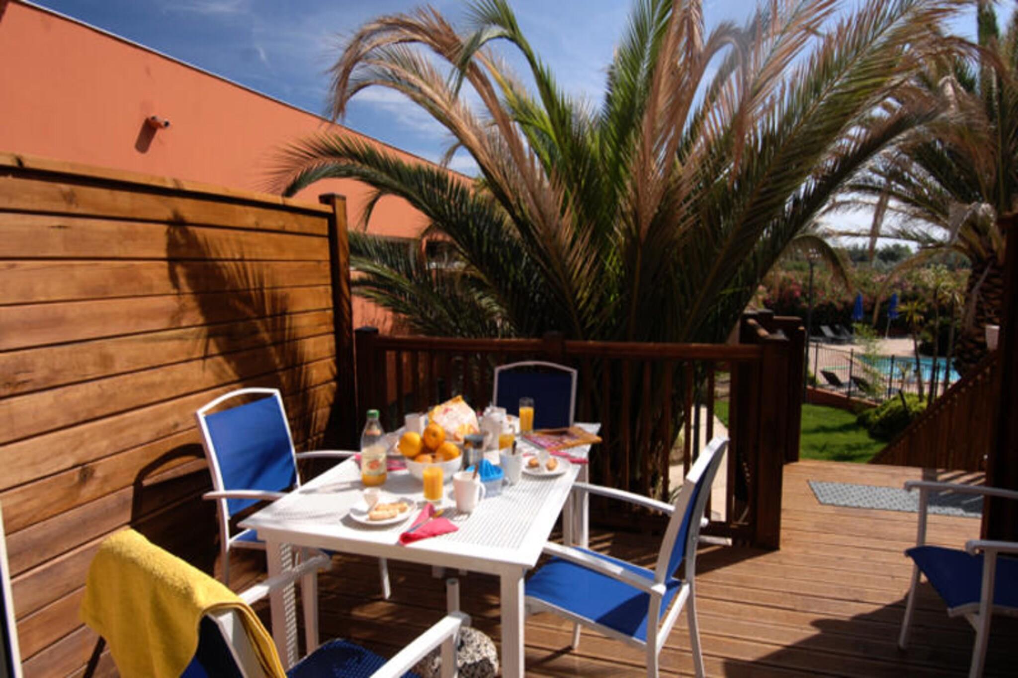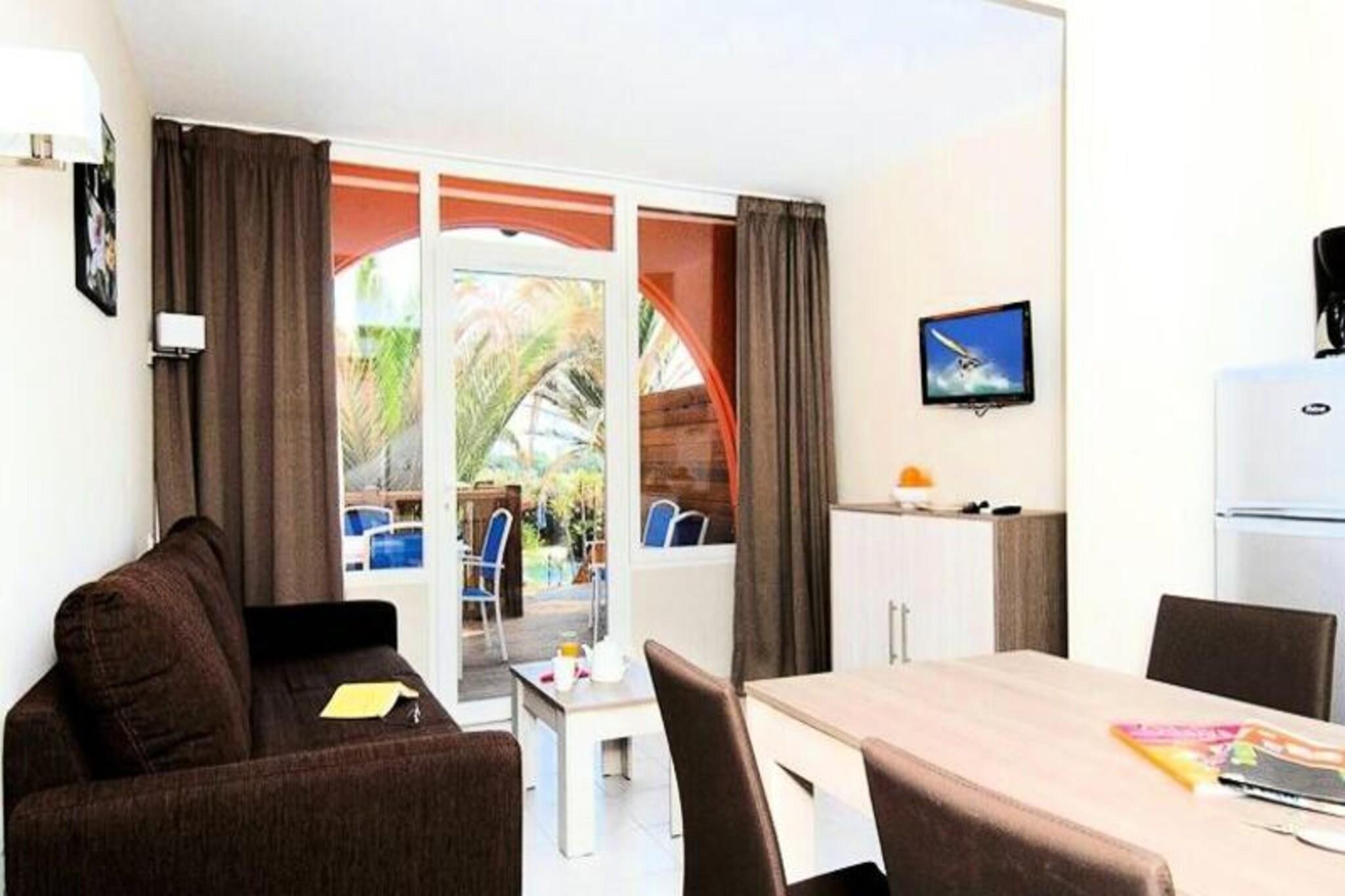 Set within a lush park, this inviting holiday accommodation is just 400 meters from the beach, offering a relaxing escape for families or groups. It features a living room with a trundle bed, a bedroom with a double bed, and a cozy cabin with two single or bunk beds. Guests can unwind in the heated outdoor swimming pool with a paddling area, open until October, or enjoy complimentary Wi-Fi and TV. The property is pet-friendly for an additional fee and provides essentials like bed linens, towels, and end-of-stay cleaning for a worry-free stay. Located in the lively Cap d’Agde, the property is close to a marina with shops, restaurants, and a vibrant atmosphere just five minutes away. Sports enthusiasts can enjoy an international golf course and tennis club nearby, while 14 kilometers of sandy beaches invite you to swim, sunbathe, or try water sports. Local markets, cafes, and attractions ensure there’s something for everyone to enjoy. The accommodation includes a fully equipped kitchen, a private bathroom, and a balcony, terrace, or garden for outdoor relaxation. Baby kits are available upon request, and private parking is included for one vehicle per apartment. With modern comforts and a prime location, this is the ideal setting for a memorable seaside getaway.