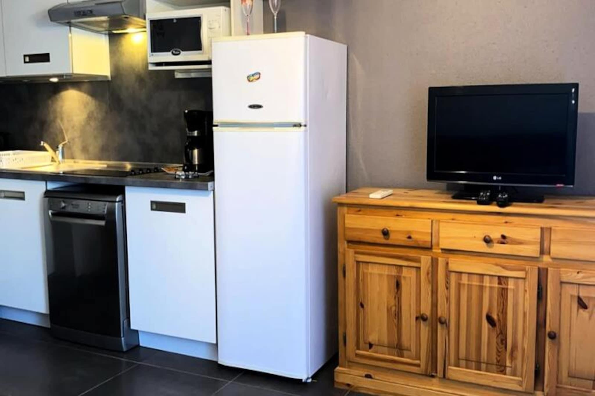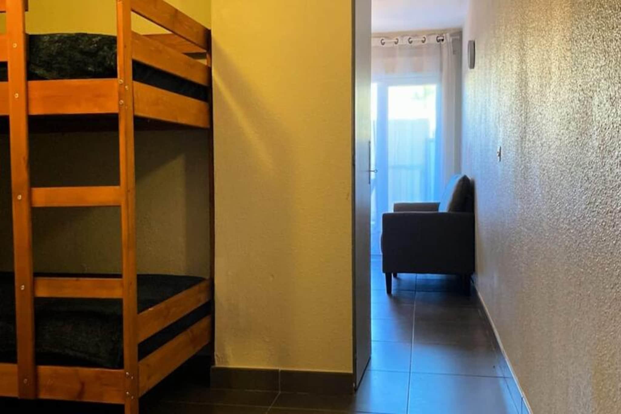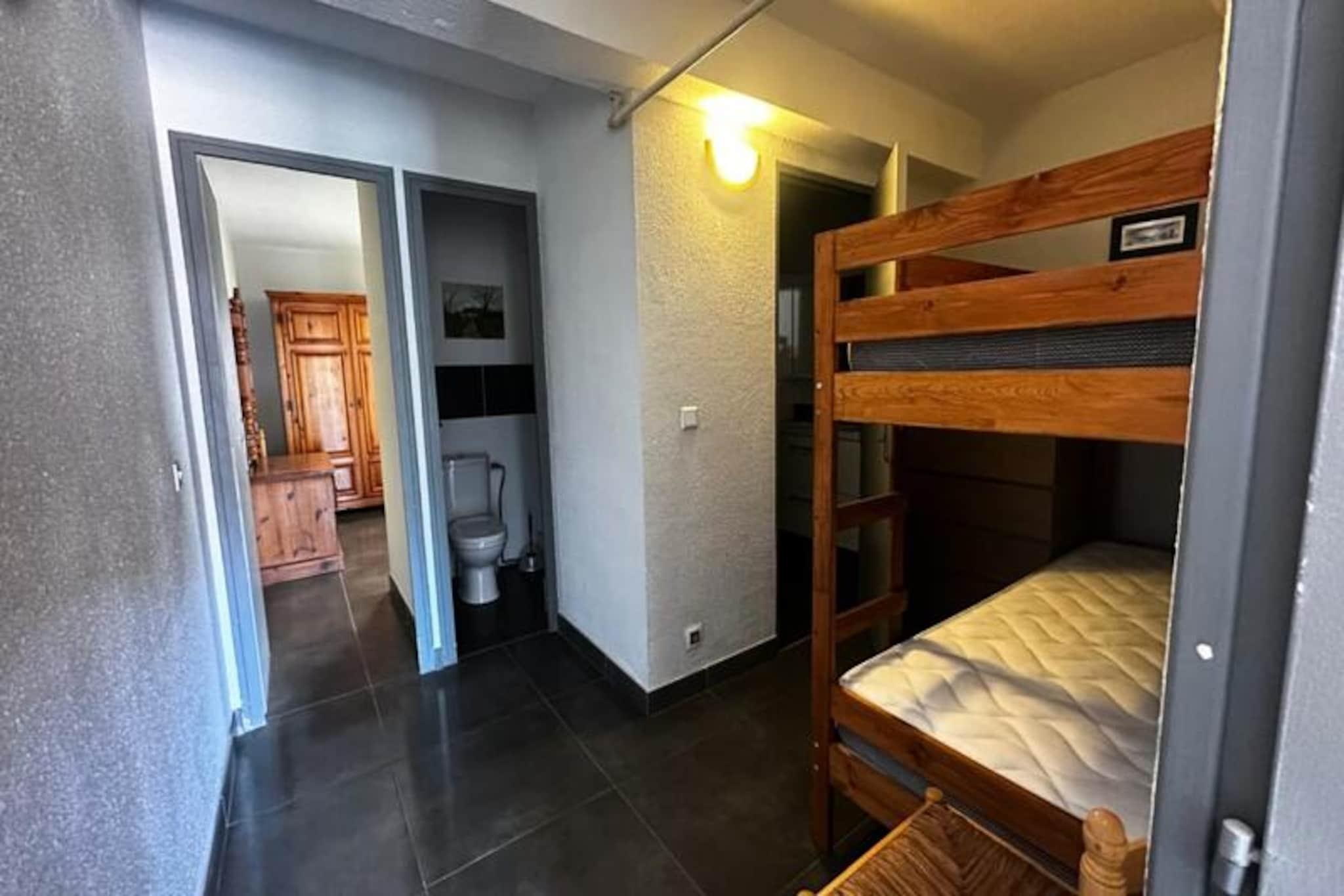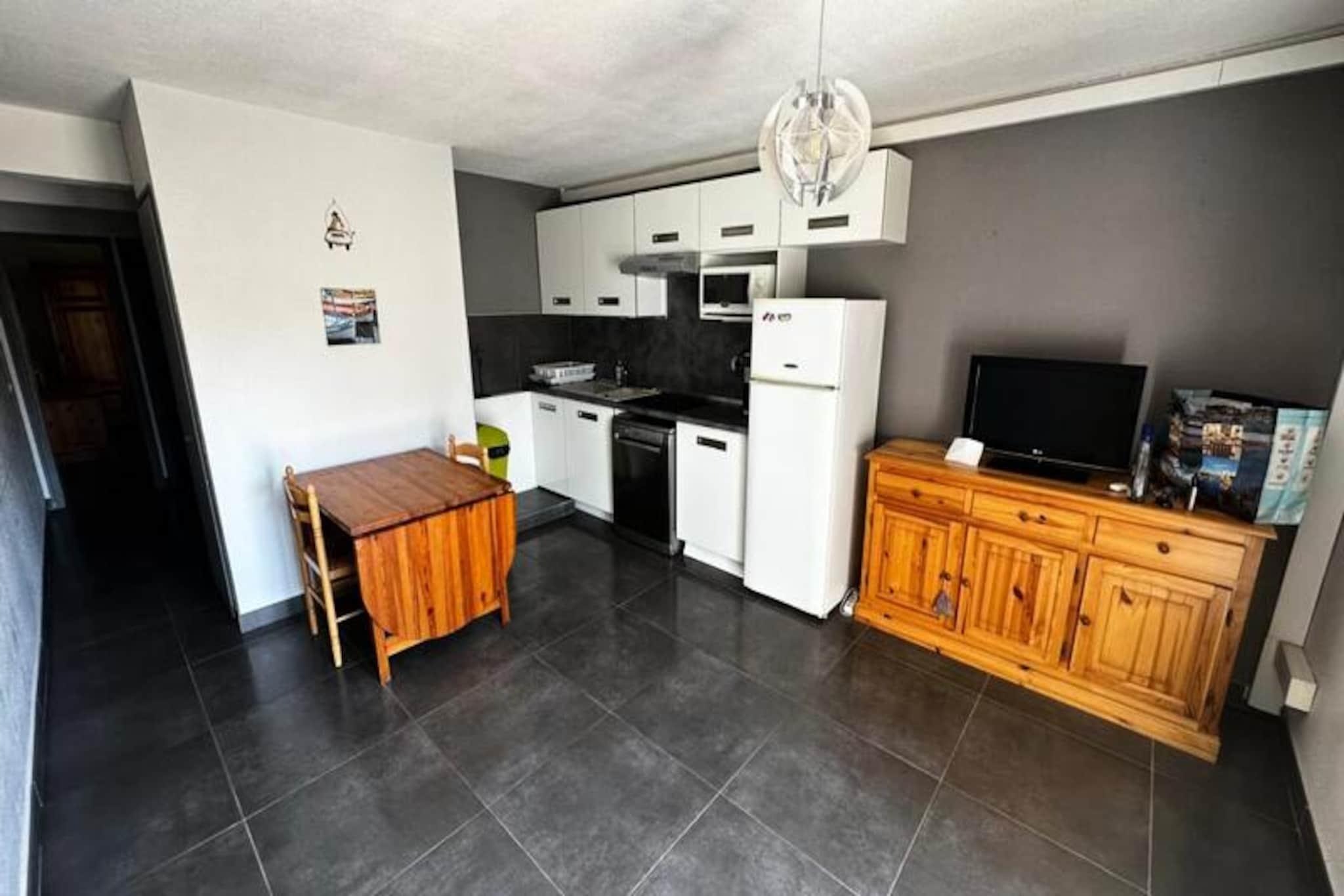 Awaken your senses in the vibrant Môle district of Cap d'Agde, where this spacious and sunlit one-bedroom apartment offers the perfect retreat just 250 meters from the golden sands of the Mediterranean. Whether you're traveling with family or a small group of friends, this 42 m² haven invites you to relax and enjoy a car-free holiday in one of France’s most beloved coastal destinations. With its proximity to shops, restaurants, and the bustling Allée de la Flânerie, every moment here is filled with charm and convenience. Step inside and discover a thoughtfully designed space that combines comfort and functionality. The living and dining area, bathed in natural light, features a cozy sofa and television, perfect for unwinding after a day at the beach. The fully equipped kitchen, complete with a microwave, hob, dishwasher, and coffee machine, ensures you can prepare delicious meals with ease. The apartment comfortably sleeps four, with a serene 11 m² bedroom featuring a double bed and ample storage, as well as a separate sleeping area with bunk beds suitable for both children and adults. High-quality memory foam mattresses promise restful nights for all. Outside, two delightful terraces totaling 18 m² await, offering the ideal setting for al fresco dining or simply soaking up the Mediterranean sun. Equipped with garden furniture and an electric barbecue, these outdoor spaces are perfect for creating cherished holiday memories. Modern amenities such as air conditioning and heating ensure year-round comfort, while the apartment's dual-aspect design enhances the airy, inviting atmosphere. Nestled in the heart of Cap d'Agde, this apartment places you within walking distance of the Port Center, Aqua Land, and Leisure Island. Public transport options and free street parking make exploring the region effortless. Whether you're here for the beach, the vibrant local culture, or the serene coastal ambiance, this apartment is your gateway to an unforgettable stay in the South of France.