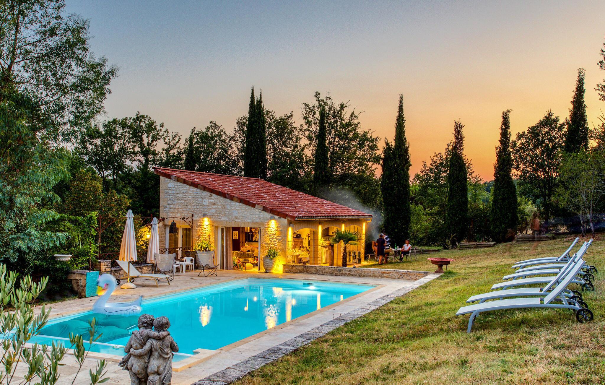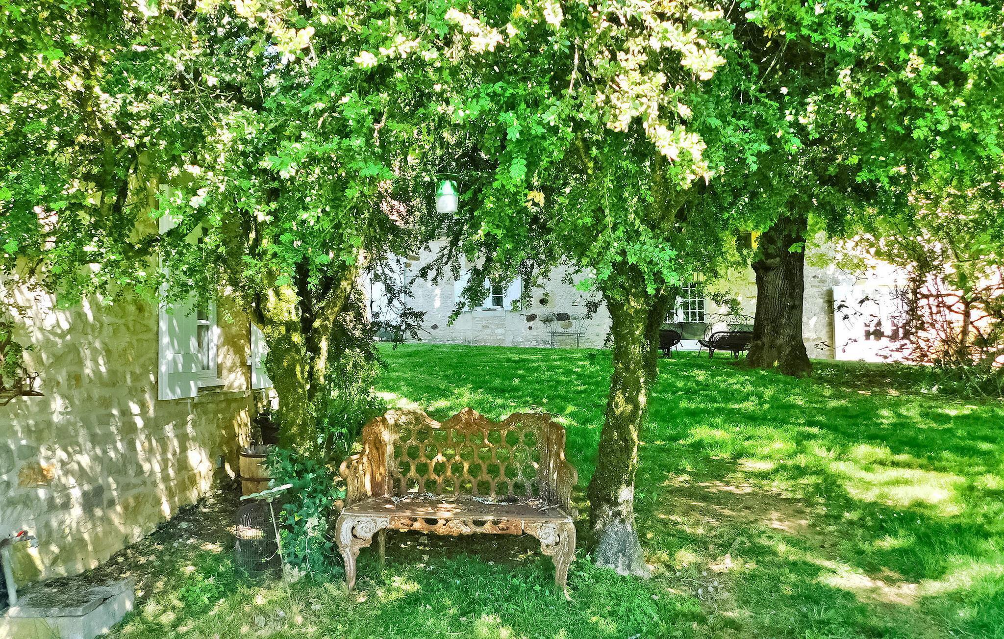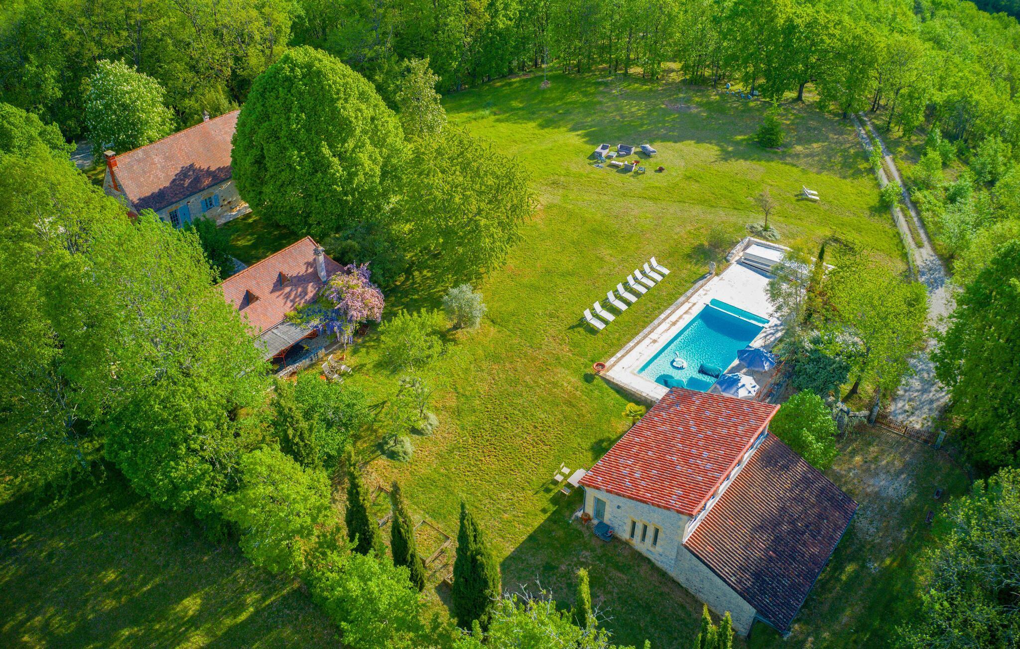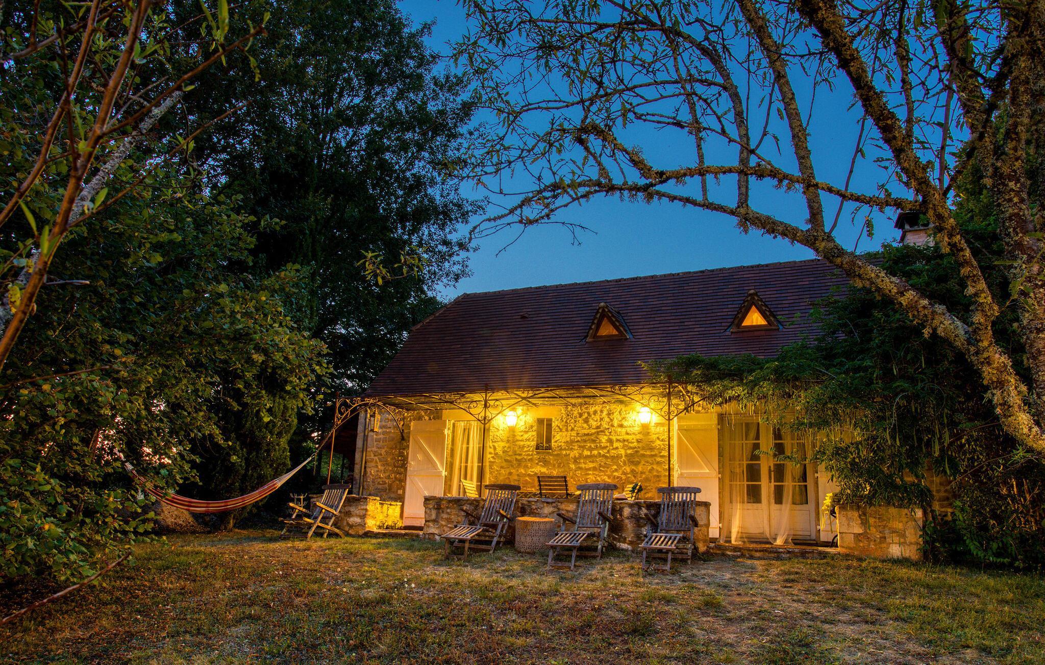 Der Weiler liegt auf den Gipfeln über der Dordogne und verfügt über einen großen Gemeinschaftsgarten und eine eingezäunte Wiese mit mehreren Gartenmöbeln für gesellige oder private Momente im Schatten des Unterholzes. Das Anwesen ist bis zum Fuß des Hügels von Wäldern umgeben, die trotz des Trubels um Sarlat im Sommer für Ruhe sorgen, und wo man der Stille lauschen kann, die von Vogel-, Zikaden- oder Grillengesang unterbrochen wird, unter einem Sternenhimmel von atemberaubender Tiefe ohne Lichtverschmutzung in der Umgebung.