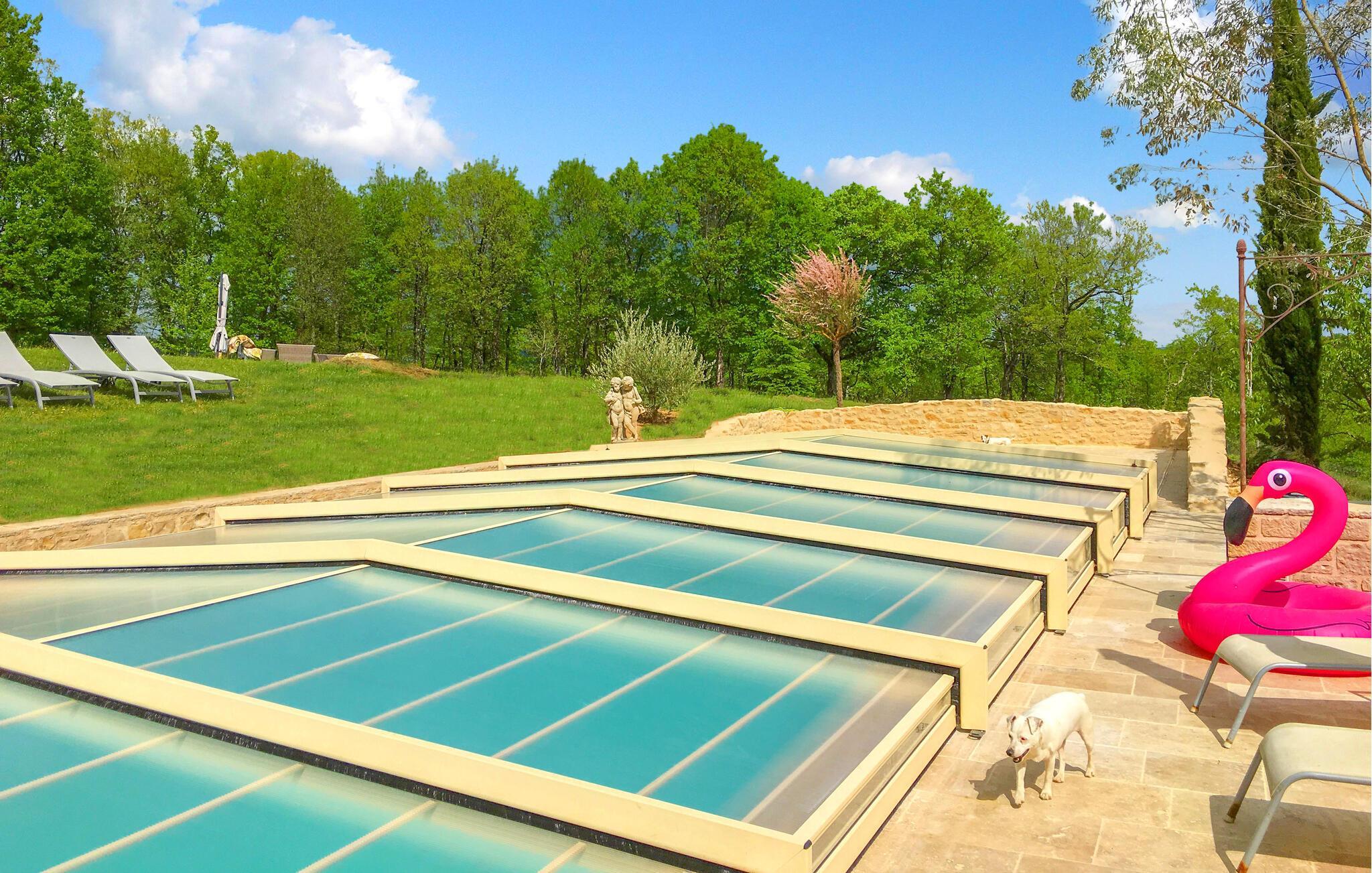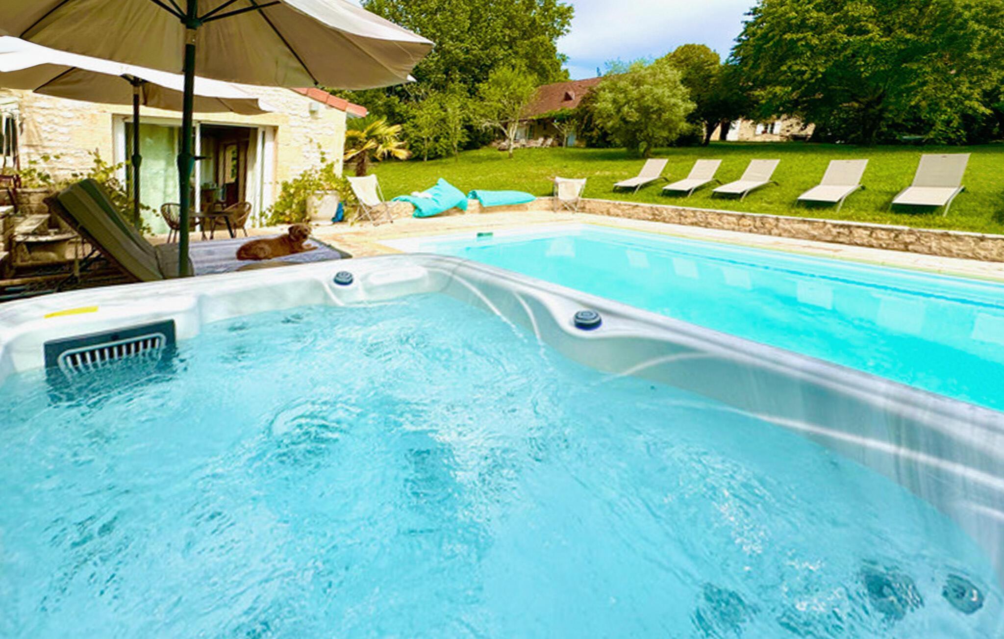 Diese Unterkunft bietet Zugang zu unserem beheizten Pool, der durch eine flache, motorisierte Überdachung gesichert ist und am Ende des Beckens ein Spa mit einer Massagebank für 2 Personen integriert.