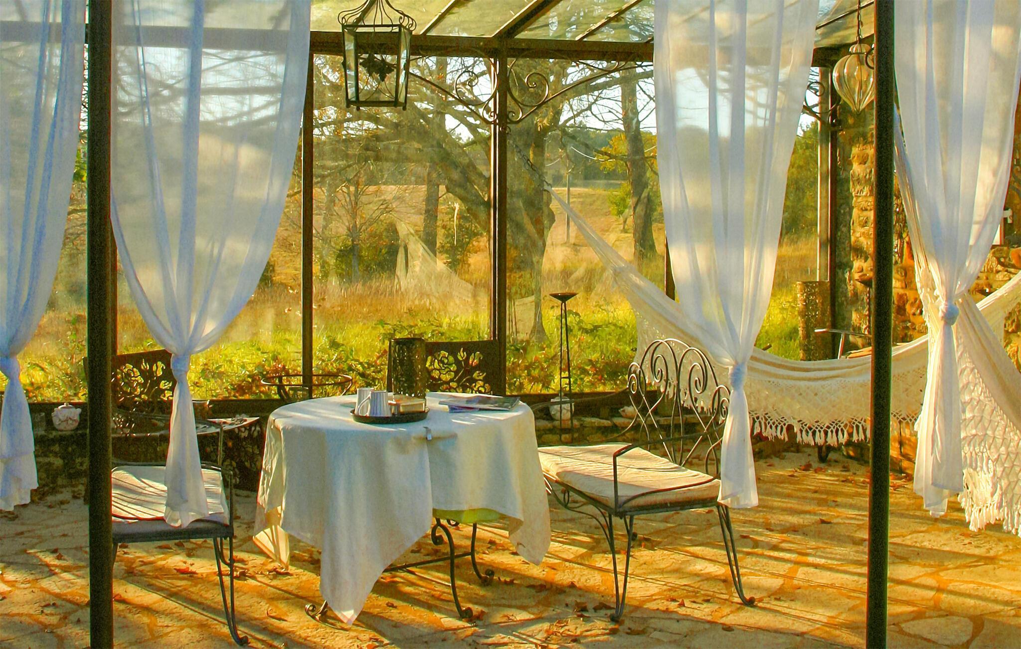 Das Glasvordach, die Terrasse im Hof des Bauernhofs und das Poolhaus (mit Wohnzimmer, Küchenzeile und Sommeresszimmer neben dem Pool) teilen Sie mit anderen Urlaubern, unserer Familie, unseren Hunden und Katzen.