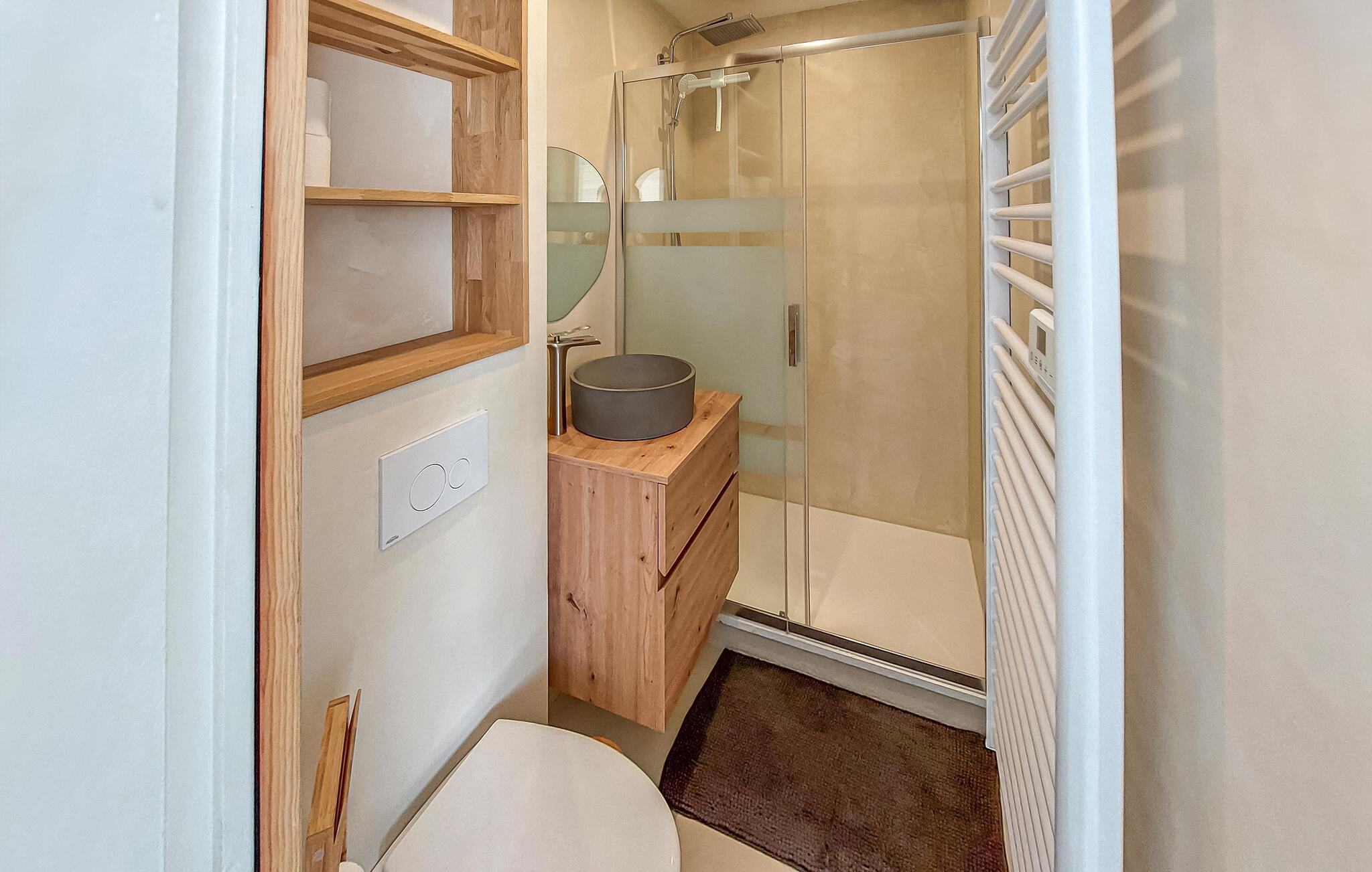 Badezimmer 4m2 (nr. 1) - WC. Warmes und kaltes Wasser. Dusche
