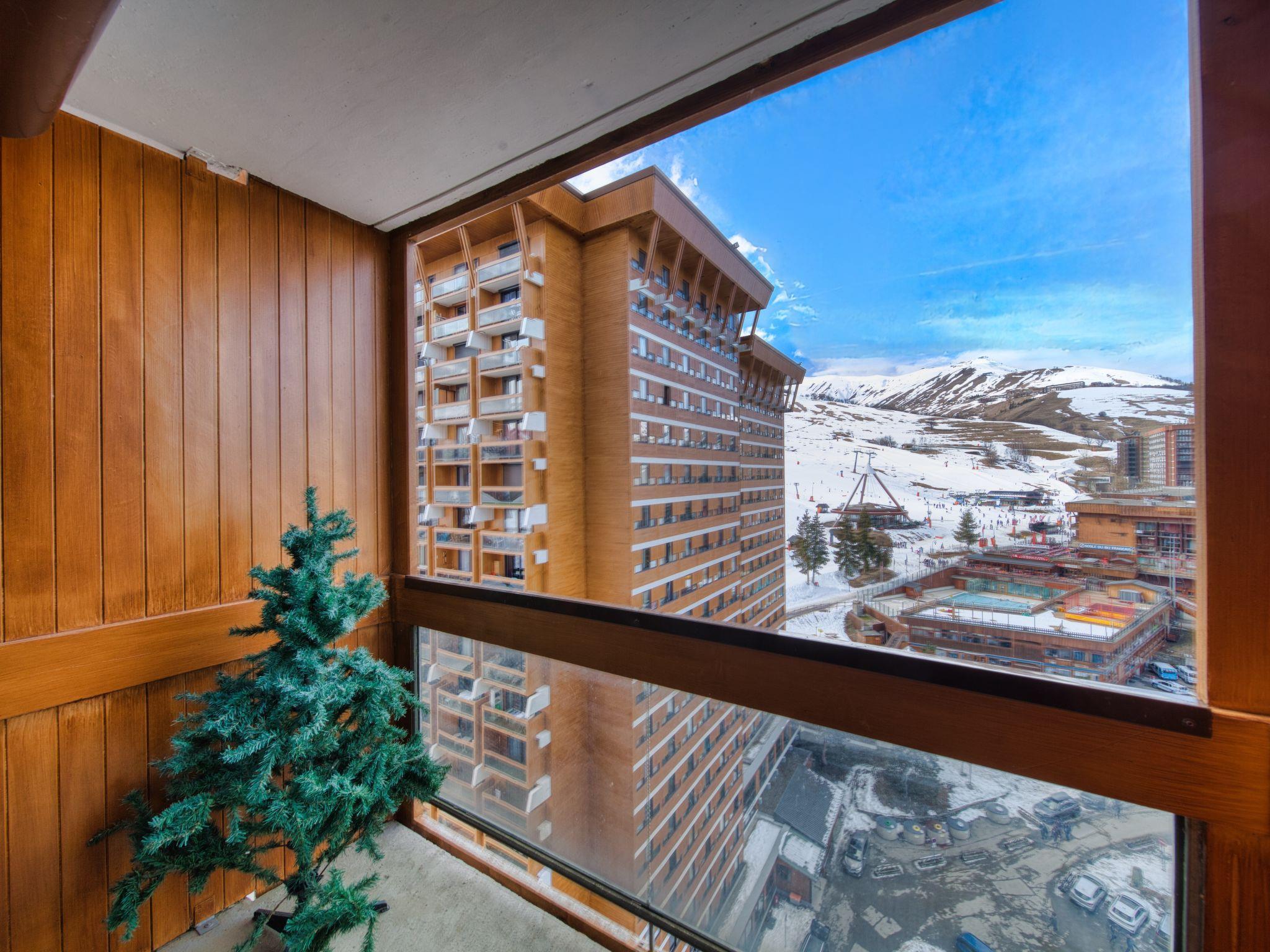 3-room apartment 46 m2 on 16th floor, south-west facing position. Comfortable and cosy furnishings: living/dining room with 1 double sofabed (140 cm, length 190 cm), TV (flat screen), radio and electric shutters. Exit to the balcony, west facing position. 1 room with 1 french bed (160 cm, length 190 cm), hand-basin, separate WC and electric shutters. Exit to the balcony, west facing position. 1 room with 1 x 2 bunk beds (90 cm, length 190 cm), electric shutters. Exit to the balcony, south facing position. Kitchenette (oven, dishwasher, 4 ceramic glass hob hotplates, toaster, kettle, microwave, electric coffee machine, Capsules for coffee machine (Senseo) extra). Bath/WC. Electric heating. Parquet floors. 2 balconies 4 m2, south facing position and west facing position, balcony 4 m2. Balcony furniture. Very beautiful view of the mountains, the ski run and the resort. Facilities: iron, hair dryer. Internet (WiFi, extra). Please note: non-smokers only. Smoke alarm. Offer by a private individual according to Art. 155, IV of CGI.
