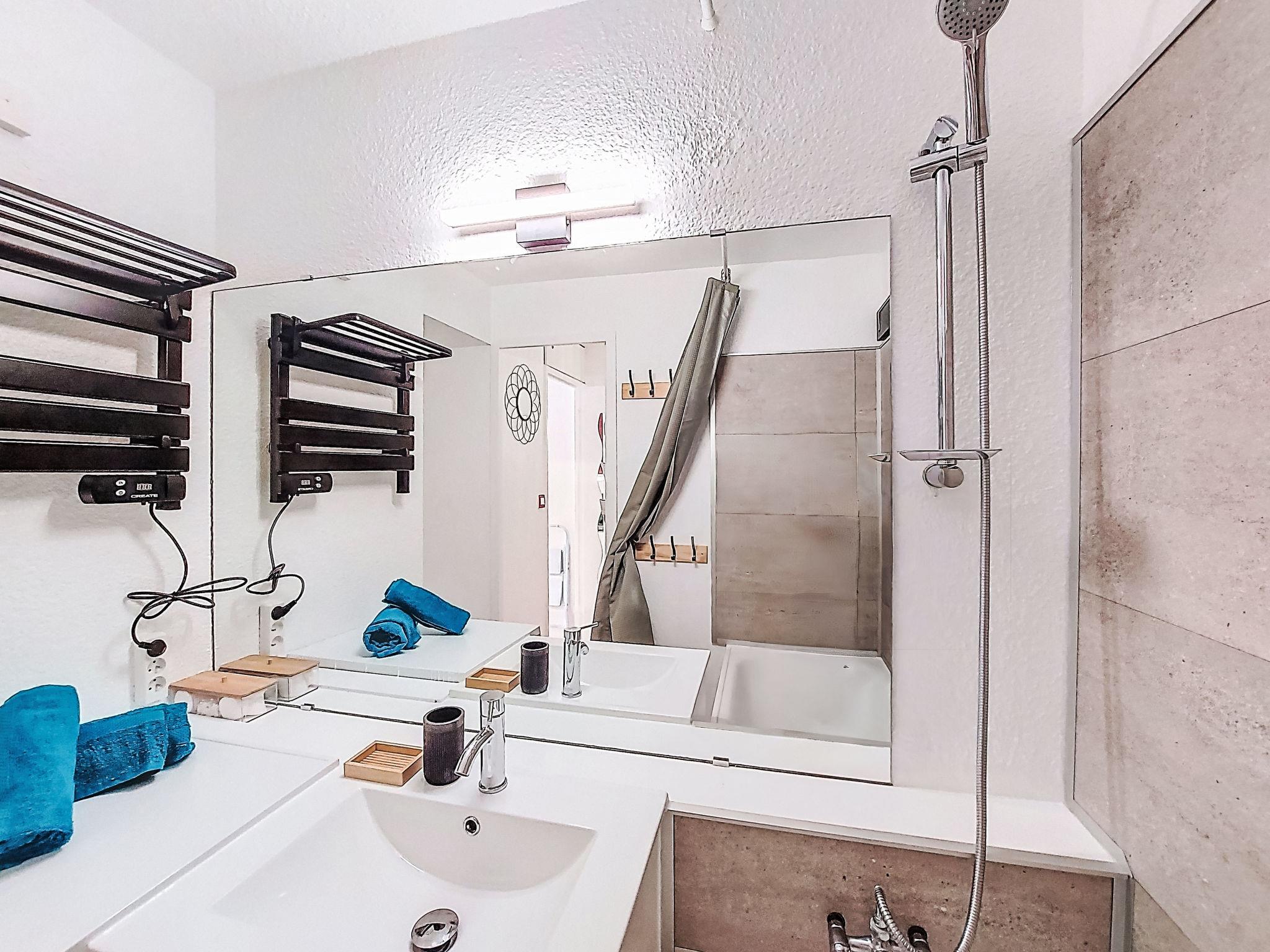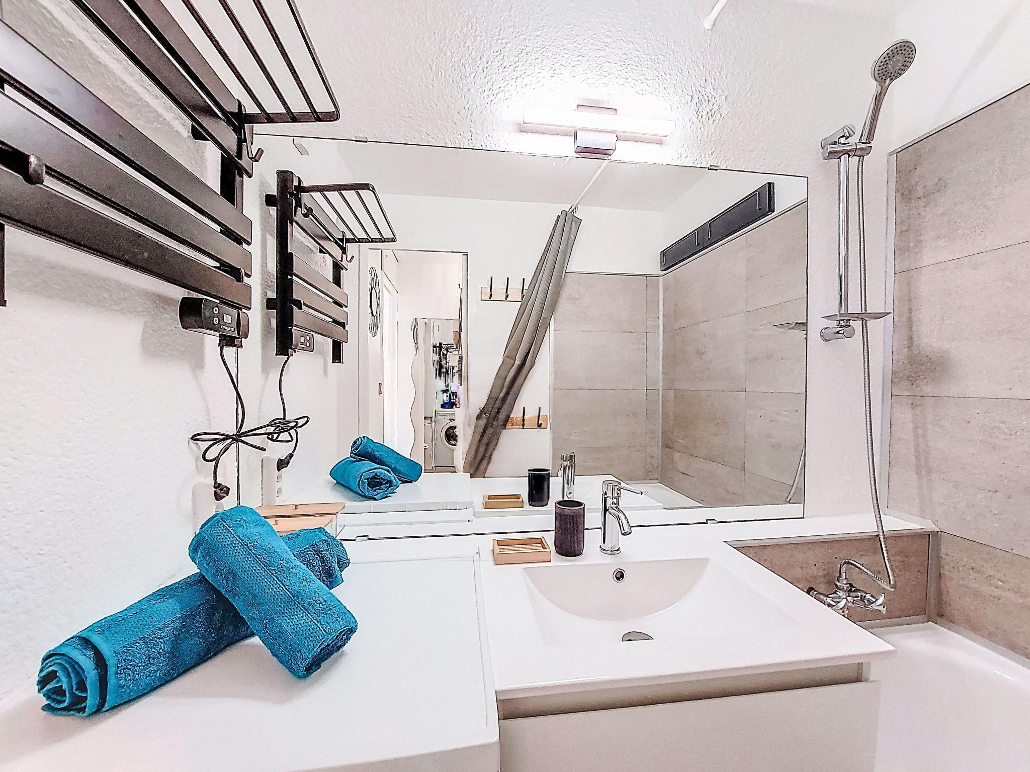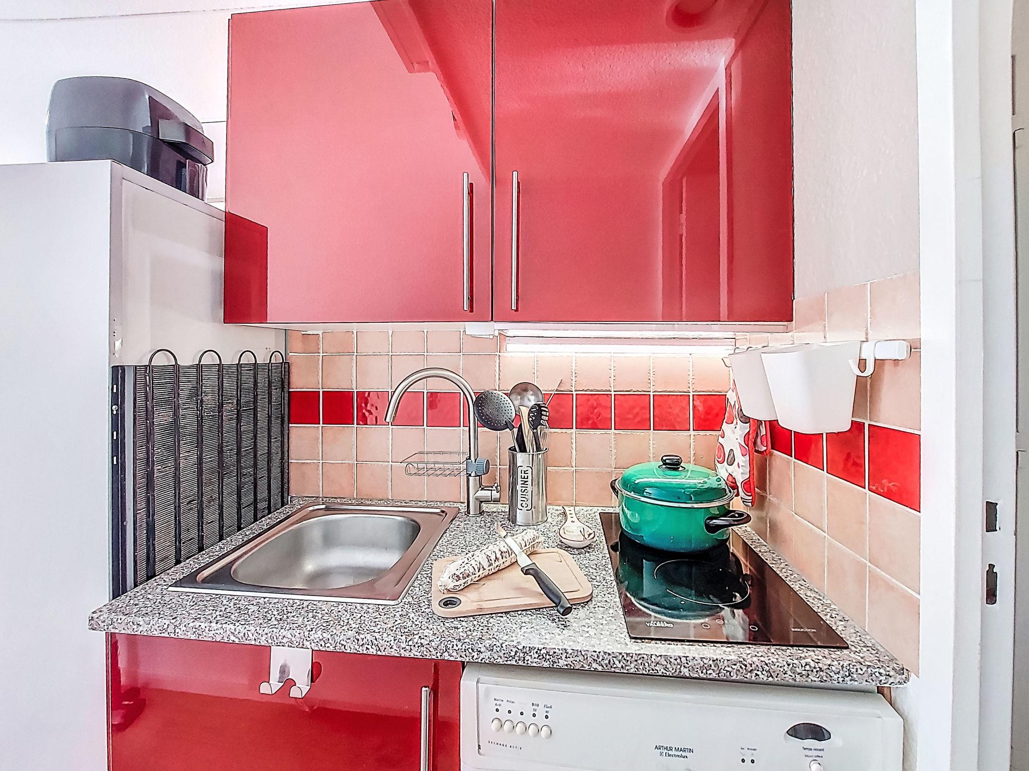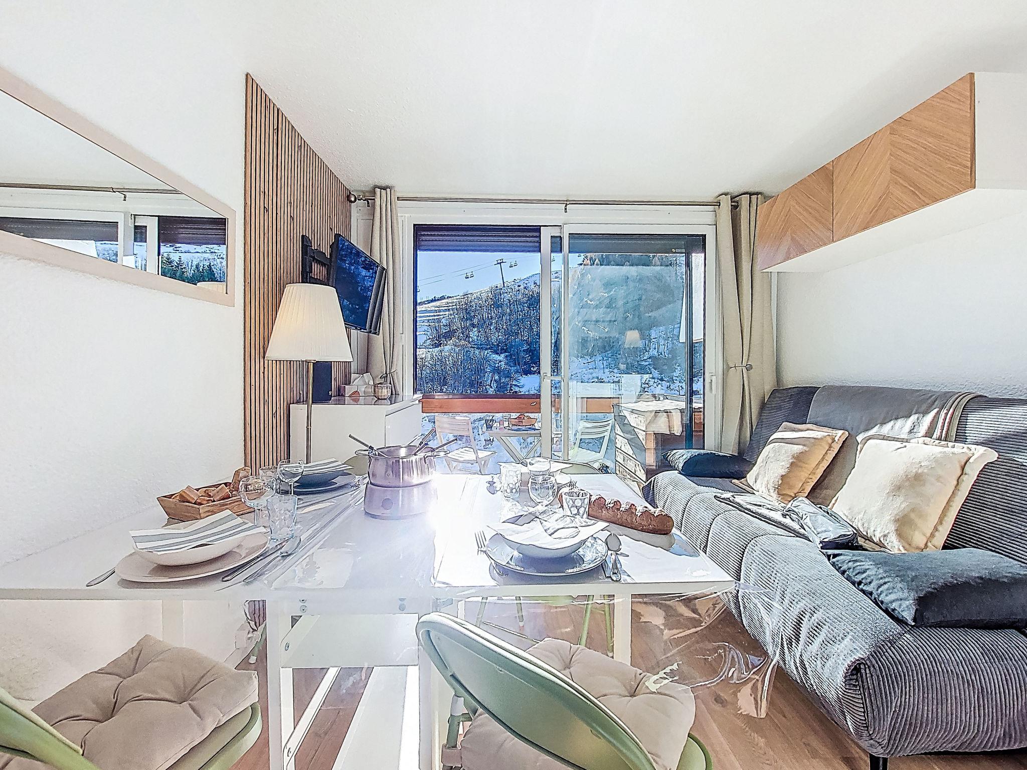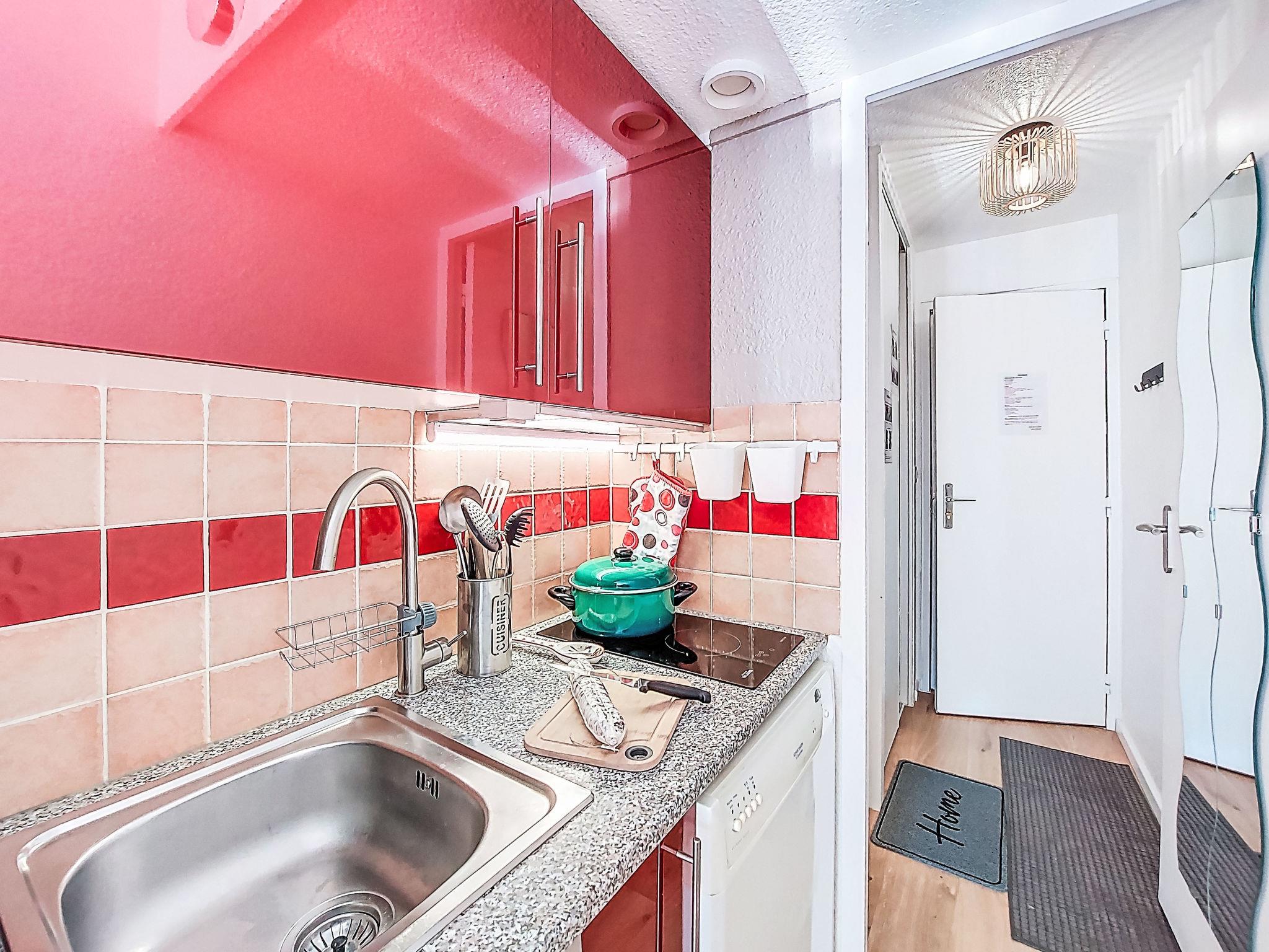1-room studio 22 m2 on 9th floor, south facing position. Beautiful and modern furnishings: living/dining room with 1 double sofabed (140 cm, length 190 cm), 1 x 2 bunk beds (90 cm, length 190 cm), TV. Exit to the balcony, south facing position. Small kitchen (mini-oven, oven, dishwasher, 2 induction hot plates, kettle, microwave, freezer, electric coffee machine, Capsules for coffee machine (Dolce Gusto) extra, raclette grill). Bath/WC. Electric heating. Balcony 4 m2, south facing position. Balcony furniture, deck chairs (2). View of the ski run. Facilities: washing machine, iron, hair dryer. Internet (WiFi, extra). Please note: non-smokers only. Smoke alarm. Offer by a private individual according to Art. 155, IV of CGI.