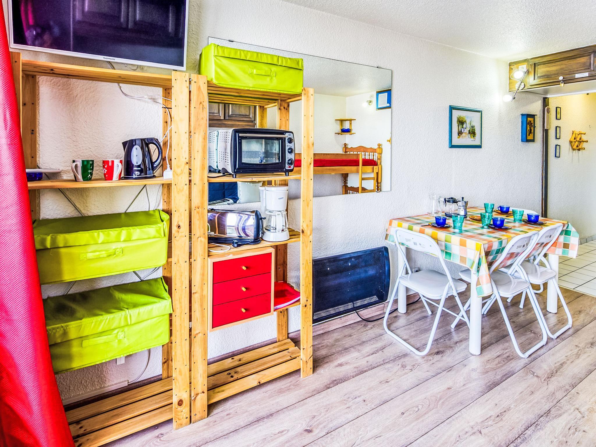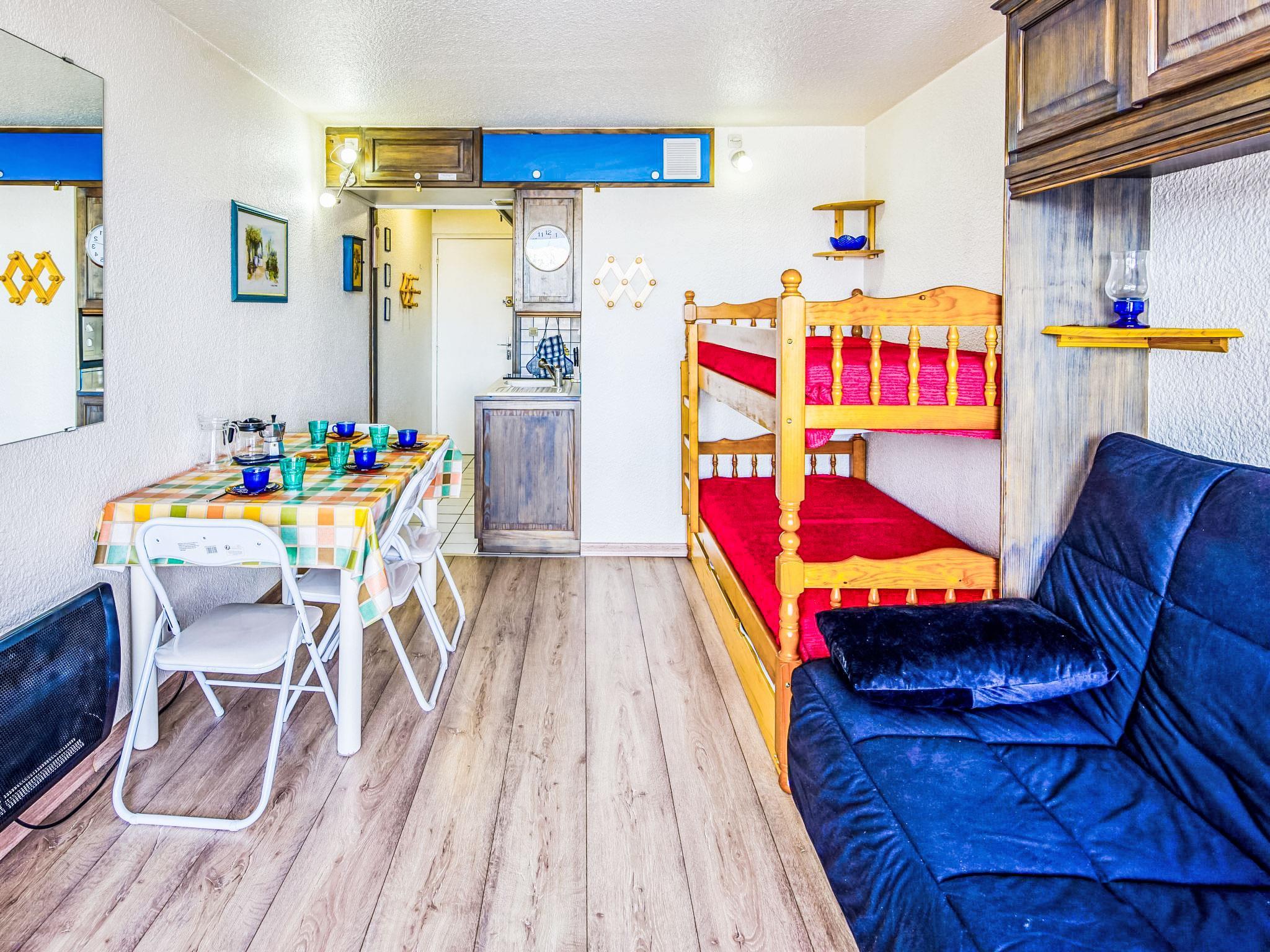 1-room studio 22 m2 on 7th floor, north facing position. Simple and beautiful furnishings: living/dining room with 1 double sofabed (130 cm, length 190 cm), 1 x 2 bunk beds (90 cm, length 190 cm), TV (flat screen). Exit to the balcony, north facing position. Kitchenette in the entrance (2 hot plates, mini-oven, toaster, kettle, microwave, electric coffee machine). Bath/WC. Electric heating. Parquet floors. Balcony 4 m2, north facing position. Balcony furniture. View of the mountains and the valley. Facilities: iron, hair dryer. Internet (WiFi, extra). Please note: non-smokers only. Maximum 1 pet/ dog allowed. Smoke alarm. Offer by a private individual according to Art. 155, IV of CGI.