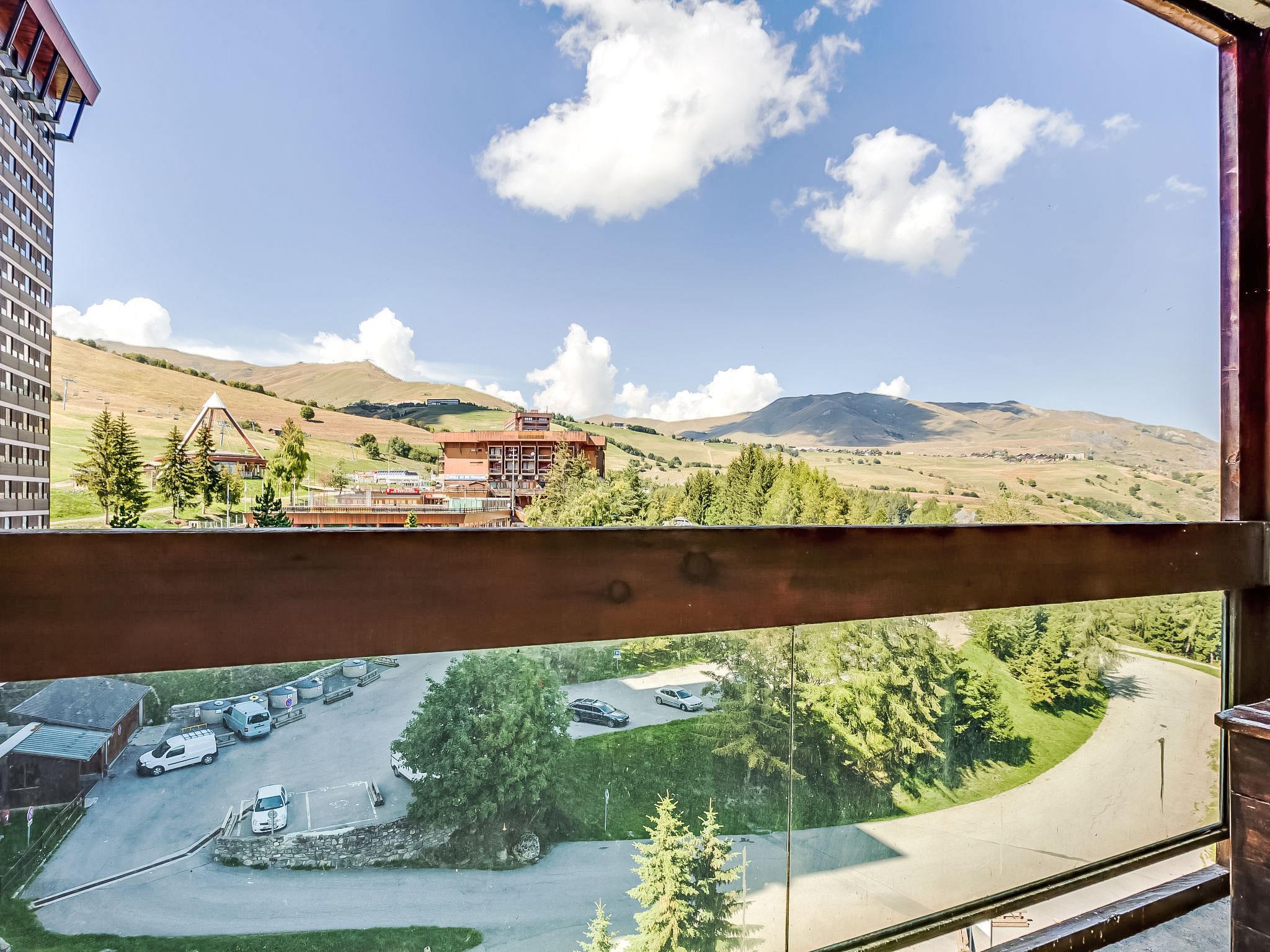 2-room apartment 32 m2 on 8th floor, north-west facing position. Beautiful furnishings: living/dining room with 1 double sofabed (140 cm, length 190 cm), TV (flat screen). Exit to the balcony, west facing position. 1 room with 1 x 1 bunk beds (90 cm, length 200 cm), 1 double bed (160 cm, length 200 cm), electric shutters. Exit to the balcony, north facing position. Kitchenette in the entrance (oven, dishwasher, 2 ceramic glass hob hotplates, toaster, kettle, microwave, electric coffee machine, Capsules for coffee machine (SENSO) extra). Shower, sep. WC. Electric heating. Parquet floors. Balcony 4 m2, balcony 3 m2. Very beautiful view of the mountains, the valley and the countryside. Facilities: iron, hair dryer. Internet (WiFi, extra). Please note: non-smokers only. Smoke alarm. Offer by a private individual according to Art. 155, IV of CGI. FR7370.100.80