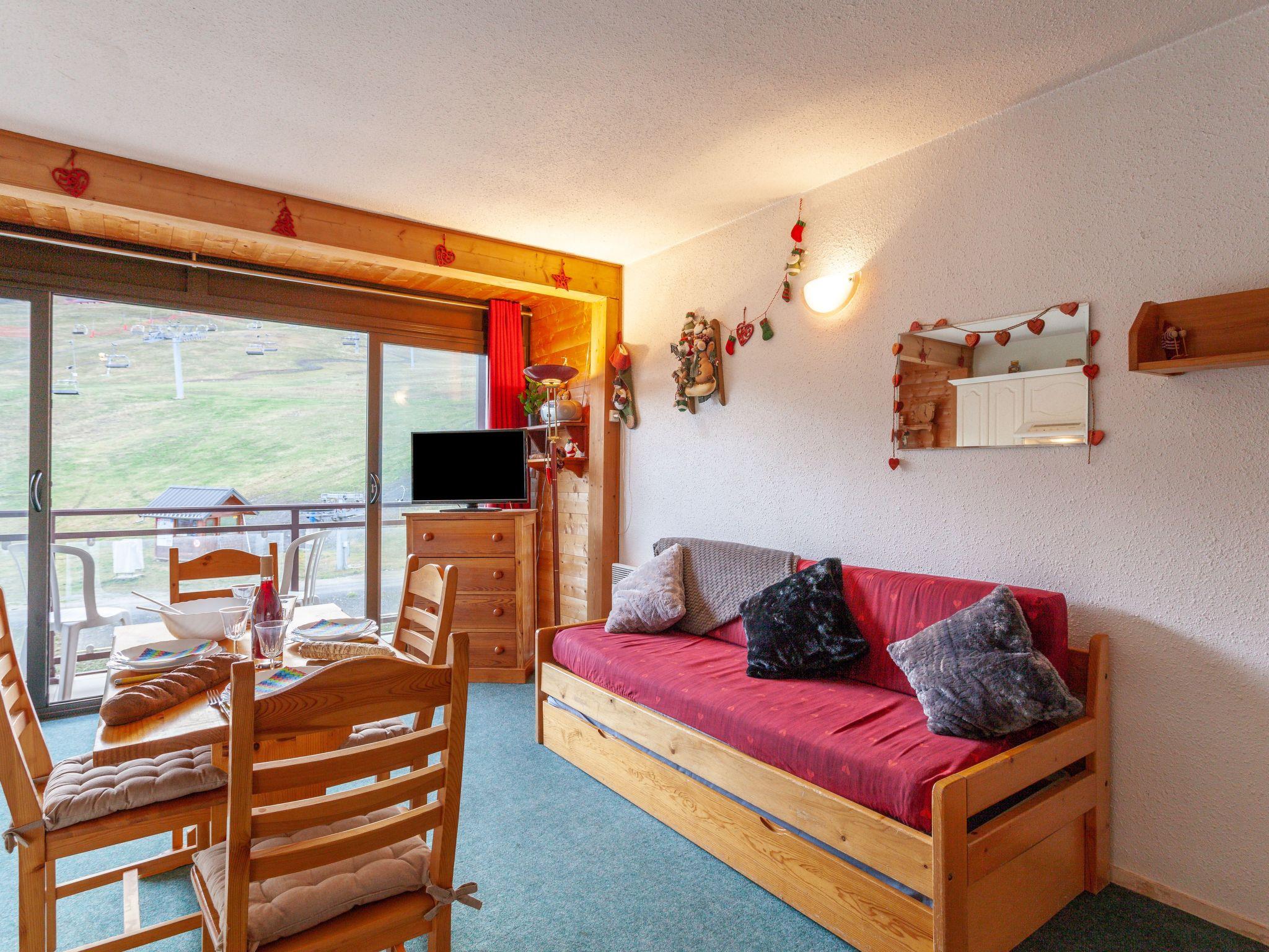 2-room apartment 30 m2 on 3rd floor, south facing position. Simple and comfortable furnishings: living/dining room with 1 pull-out bed (2 pers. 2 x 80 cm, length 190 cm), TV (flat screen), radio and electric shutters. Exit to the balcony, south facing position. 1 small room with 1 double bed (140 cm, length 190 cm). Open kitchen (4 hot plates, oven, dishwasher, toaster, microwave, electric coffee machine, raclette grill). Shower/WC. Electric heating, boiler. Carpet. Balcony, south facing position. Balcony furniture. View of the ski run. Facilities: iron, hair dryer. Internet (WiFi, extra). Please note: non-smokers only. Smoke alarm. Offer by a private individual according to Art. 155, IV of CGI.