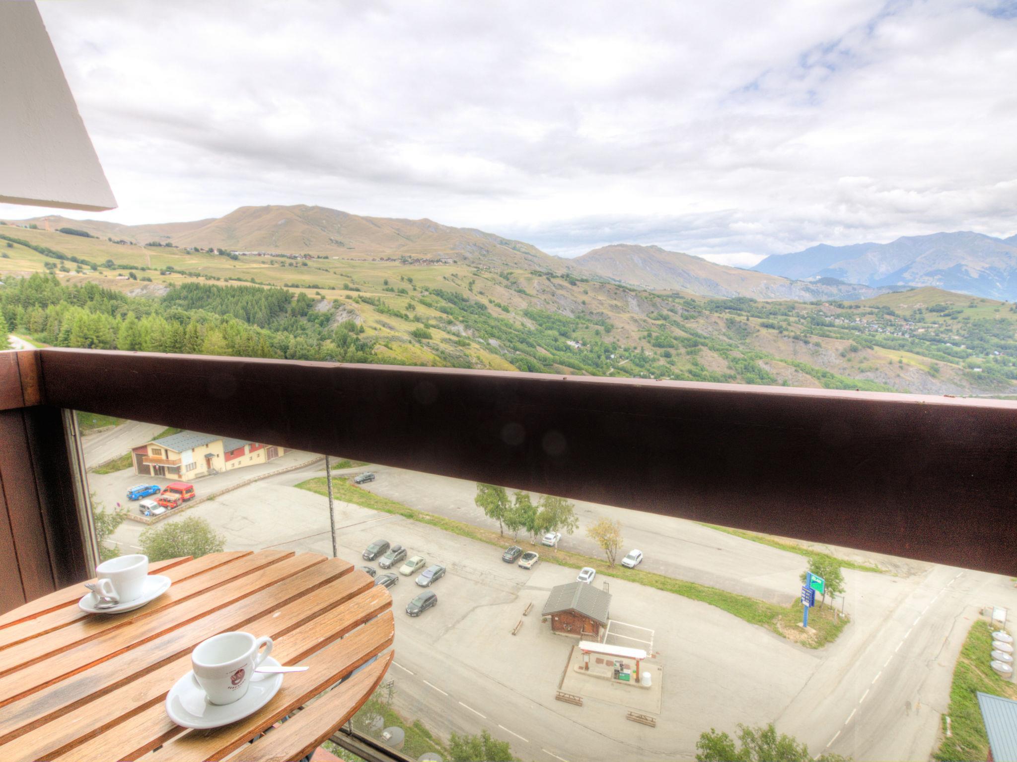 1-room studio 28 m2 on 12nd floor, north facing position. Simple and beautiful furnishings: living/dining room with 1 pull-out bed (2 pers. 2 x 80 cm, length 190 cm), TV (flat screen). Exit to the balcony, north facing position. Alcove with 1 x 2 bunk beds (80 cm, length 190 cm). Small kitchen (2 hot plates, mini-oven, dishwasher, toaster, kettle, microwave, freezer, electric coffee machine, Capsules for coffee machine (SENSEO) extra, raclette grill). Bathroom, sep. WC. Electric heating. Parquet floors. Balcony 4 m2, north facing position. Very beautiful view of the mountains and the valley. Facilities: iron. Internet (WiFi, extra). Please note: non-smokers only. Maximum 1 small pet/ dog allowed. Smoke alarm. Instead of an enclosed bedroom, some sleeping areas are located in an open-plan area (gallery, alcove, etc.). Offer by a private individual according to Art. 155, IV of CGI.