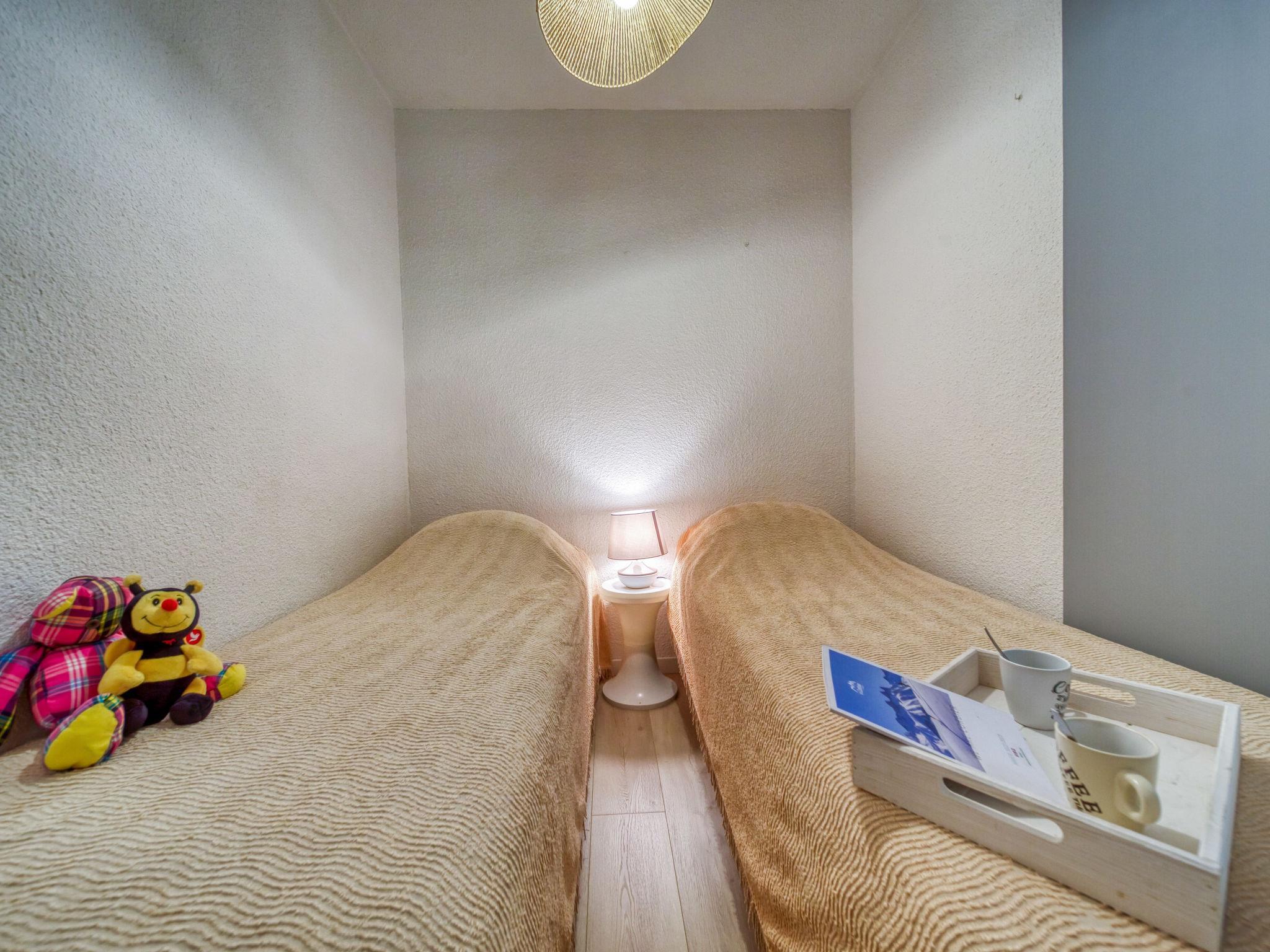 1-room studio 32 m2 on 9th floor, south facing position. Renovated in 2023, beautiful and cosy furnishings: living/dining room with 1 double sofabed (140 cm, length 190 cm), TV (flat screen). Exit to the balcony, south facing position. Alcove with sliding door, window onto the living room with 2 beds (70 cm, length 190 cm). Open kitchen (dishwasher, 2 induction hot plates, toaster, kettle, freezer, electric coffee machine, Capsules for coffee machine (dolce gusto) extra, combination microwave). Bathroom, sep. WC. Electric heating. Parquet floors. Balcony 4 m2, south facing position. Balcony furniture. View of the ski run. Facilities: iron, hair dryer. Internet (WiFi, extra). Please note: non-smokers only. Smoke alarm. Instead of an enclosed bedroom, some sleeping areas are located in an open-plan area (gallery, alcove, etc.). Offer by a private individual according to Art. 155, IV of CGI.