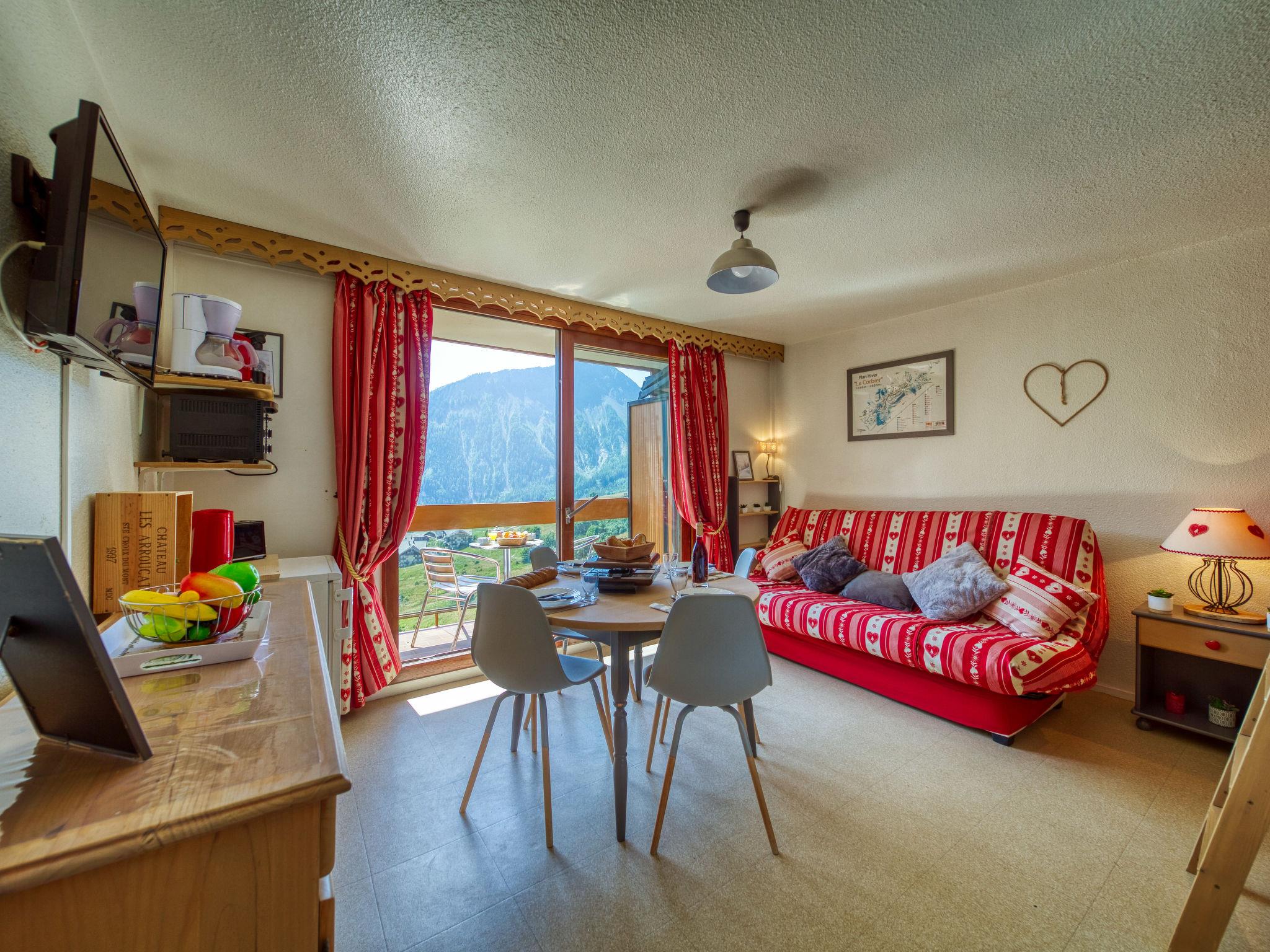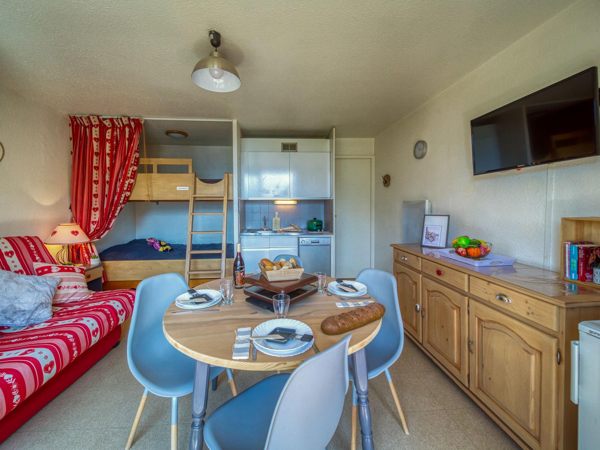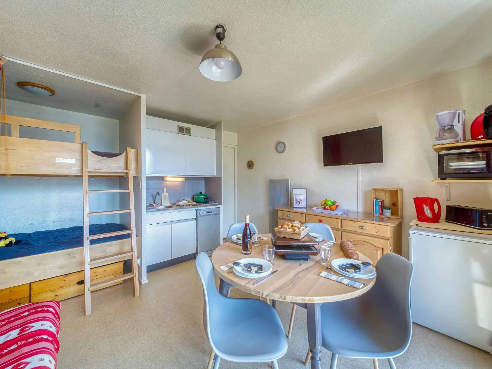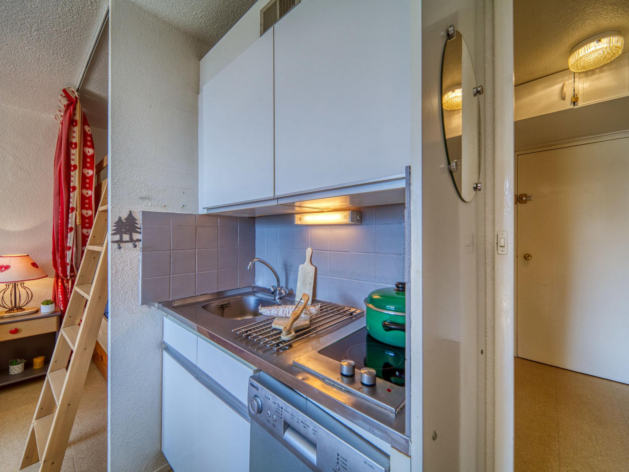 1-room studio 24 m2 on 14th floor, north-east facing position. Comfortable and beautiful furnishings: living/dining room with 1 double sofabed (140 cm, length 190 cm), TV (flat screen). Exit to the balcony. Alcove with curtain with 1 x 2 bunk beds (120 cm, length 190 cm). Small kitchenette (mini-oven, dishwasher, 2 ceramic glass hob hotplates, toaster, kettle, microwave, electric coffee machine, Capsules for coffee machine (TASSIMO), raclette grill, fondue Set (cheese)). Bath/WC. Electric heating. Balcony 5 m2, east facing position. Balcony furniture, deck chairs (2). Very beautiful view of the mountains and the ski run. Facilities: iron, hair dryer. Internet (WiFi, extra). Please note: non-smokers only. Smoke alarm. Instead of an enclosed bedroom, some sleeping areas are located in an open-plan area (gallery, alcove, etc.). Offer by a private individual according to Art. 155, IV of CGI.