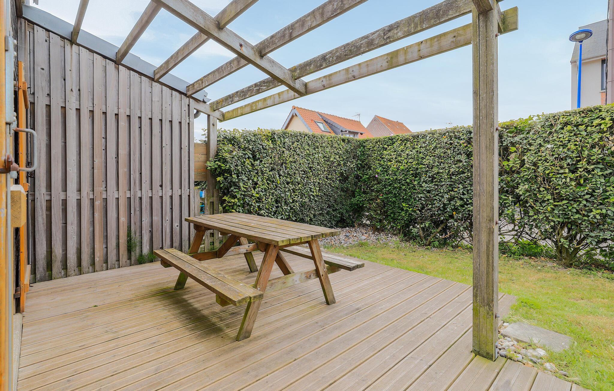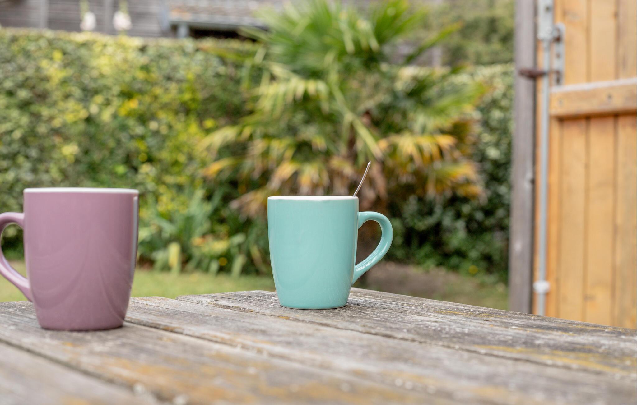 Servieren Sie sich an sonnigen Tagen ein Frühstück am Picknicktisch, während Ihre Kinder im eingezäunten Garten mit dem Hund spielen, und gönnen Sie sich hier abends ein Glas Wein unter freiem Himmel.