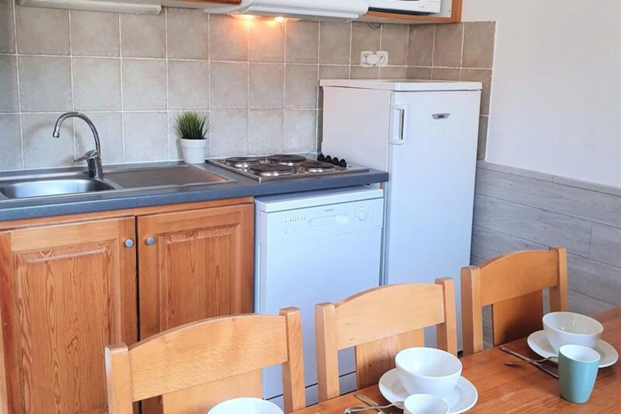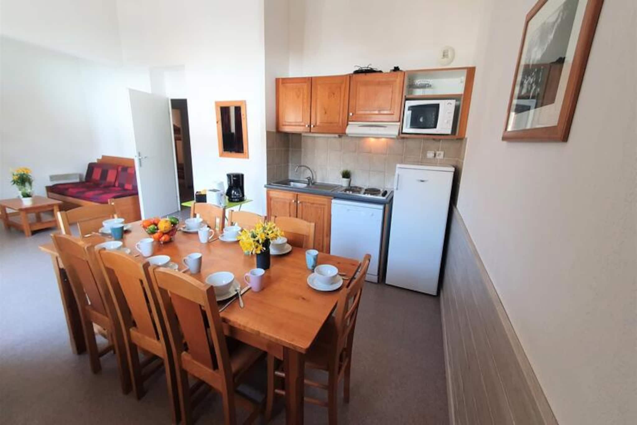 High above the serene landscapes of the French Alps, this spacious apartment in Superdévoluy invites you to experience a mountain getaway unlike any other. With breathtaking views of the iconic Pic de Bure and just 50 meters from the slopes, it’s the perfect retreat for adventurers and nature lovers alike. Whether you’re here to carve through fresh powder or explore the alpine trails, every moment is framed by the beauty of the Dévoluy region. The residence is conveniently connected to the Tourist Office by a footbridge, ensuring easy access to local services and information. \n\nDesigned to accommodate up to eight guests, this 53m² apartment offers a harmonious blend of comfort and practicality. The living room features a pull-out bed, while the bedroom with a double bed and an alcove with bunk beds provide cozy sleeping arrangements for families or groups. Two bathrooms—one with a bathtub and toilet, and another with a shower—along with a separate toilet ensure convenience for all. The fully equipped kitchen includes a microwave/grill, dishwasher, filter coffee maker, toaster, and kettle, making it easy to prepare meals after a day of adventure. Large closets, a TV, and a ski locker on the same floor add to the convenience of your stay. \n\nFree parking surrounds the residence, with covered parking available for rent, and the option to bring pets along for a small fee. Linen rental and end-of-stay cleaning services are also offered, ensuring a stress-free departure. In summer, the region transforms into a haven for hikers and cyclists, while winter brings the thrill of skiing right to your doorstep. Whether you’re seeking adrenaline-filled days or tranquil evenings overlooking the majestic Pic de Bure, this alpine retreat promises unforgettable memories year-round.