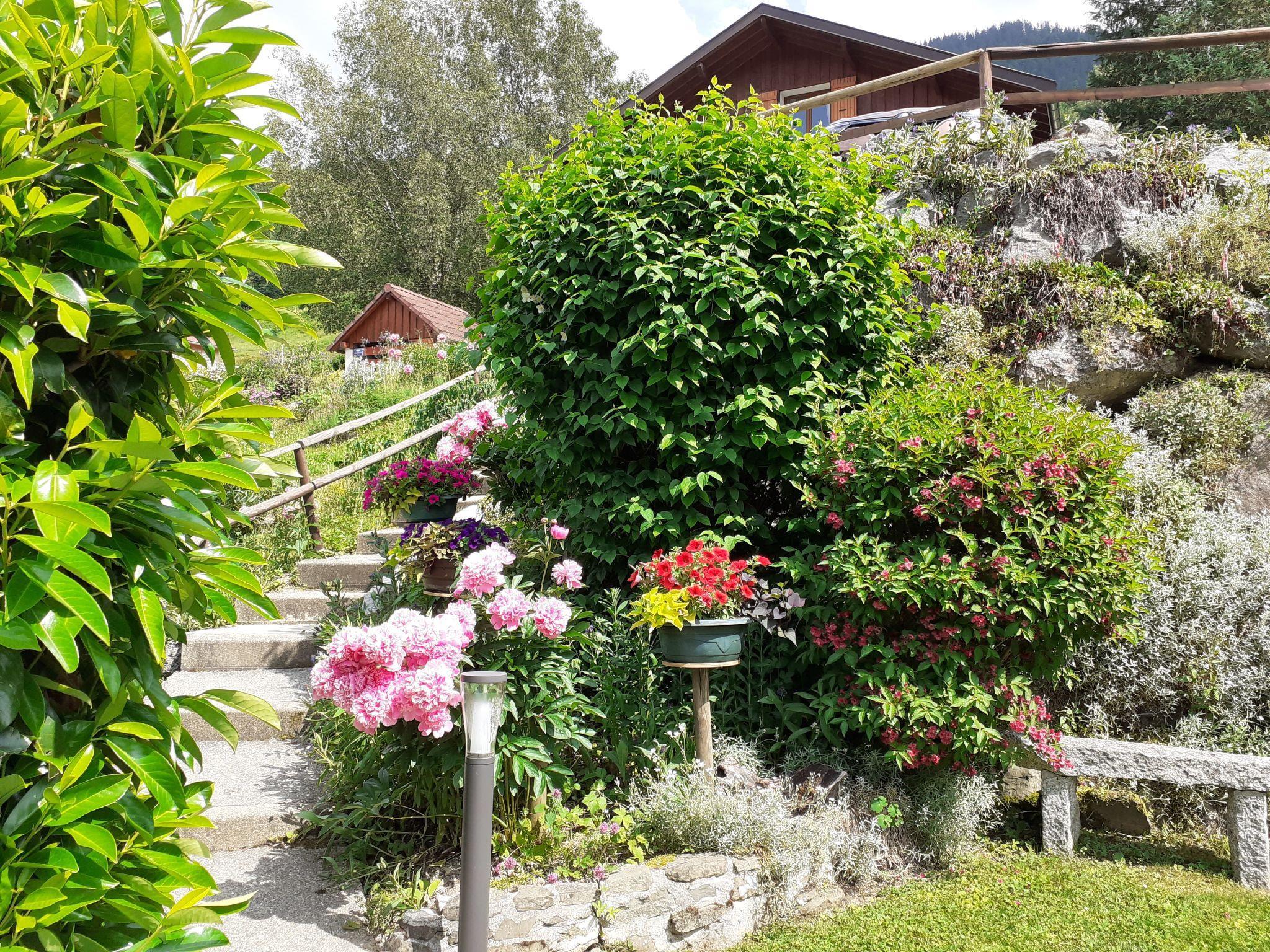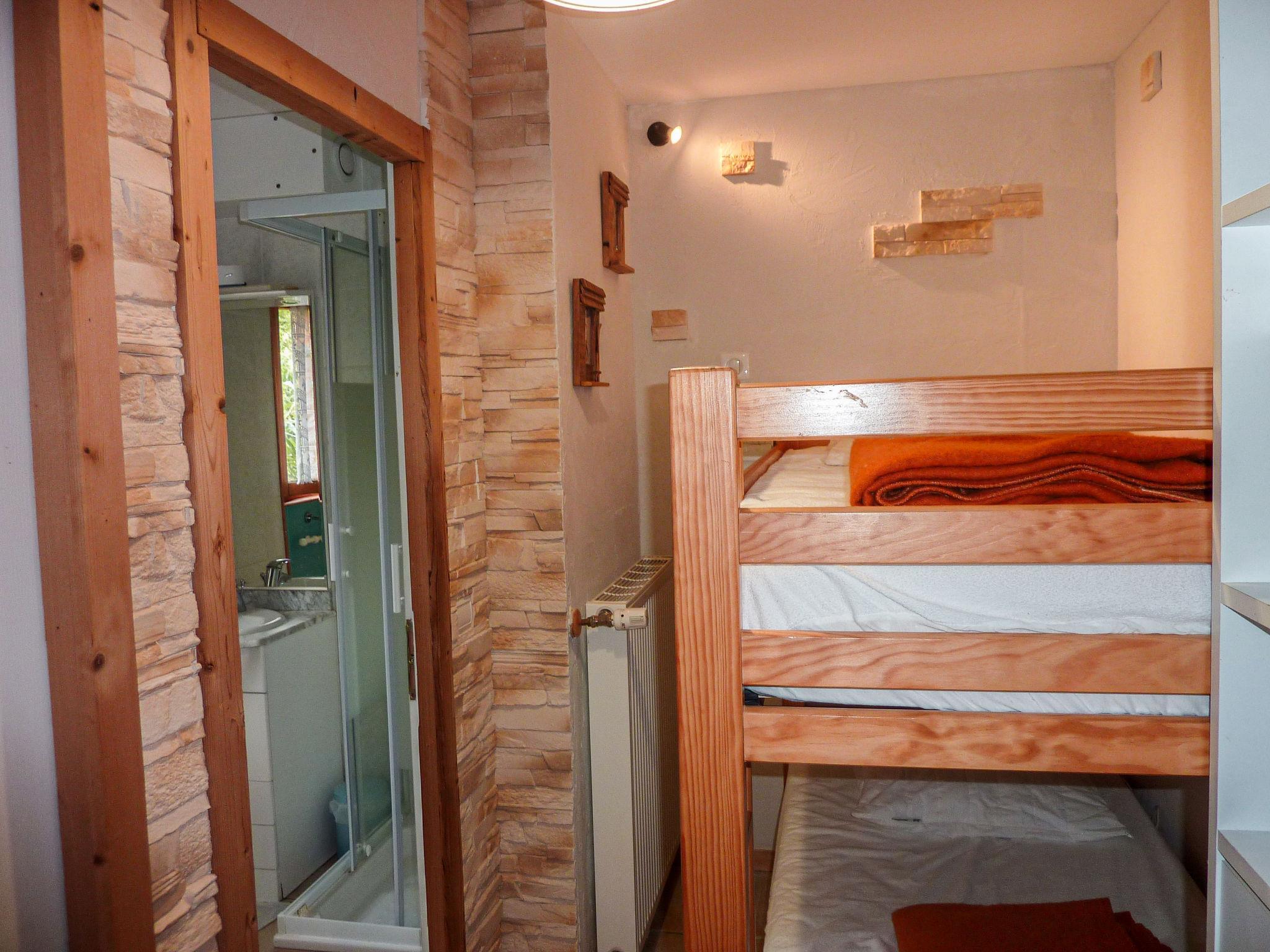 1-room apartment 25 m2, on the ground floor. Beautiful furnishings: living/dining room with 1 double sofabed (1 x 140 cm, length 190 cm), TV. Alcove with 1 x 2 bunk beds (90 cm, length 190 cm). Kitchenette (2 hot plates, mini-oven). Shower, sep. WC. Oil heating. Lawn. Terrace furniture, barbecue. Very beautiful view of the mountains. Facilities: Internet (WiFi, free). Please note: maximum 1 pet/ dog allowed. TV only FR. Instead of an enclosed bedroom, some sleeping areas are located in an open-plan area (gallery, alcove, etc.).