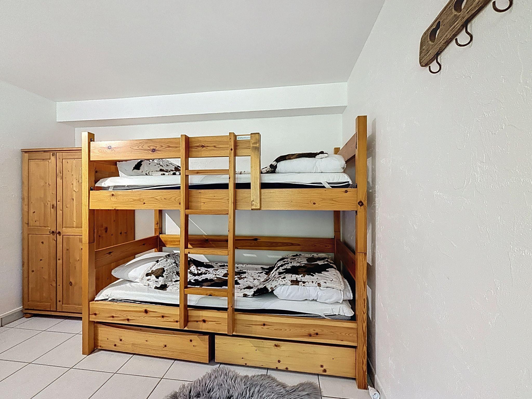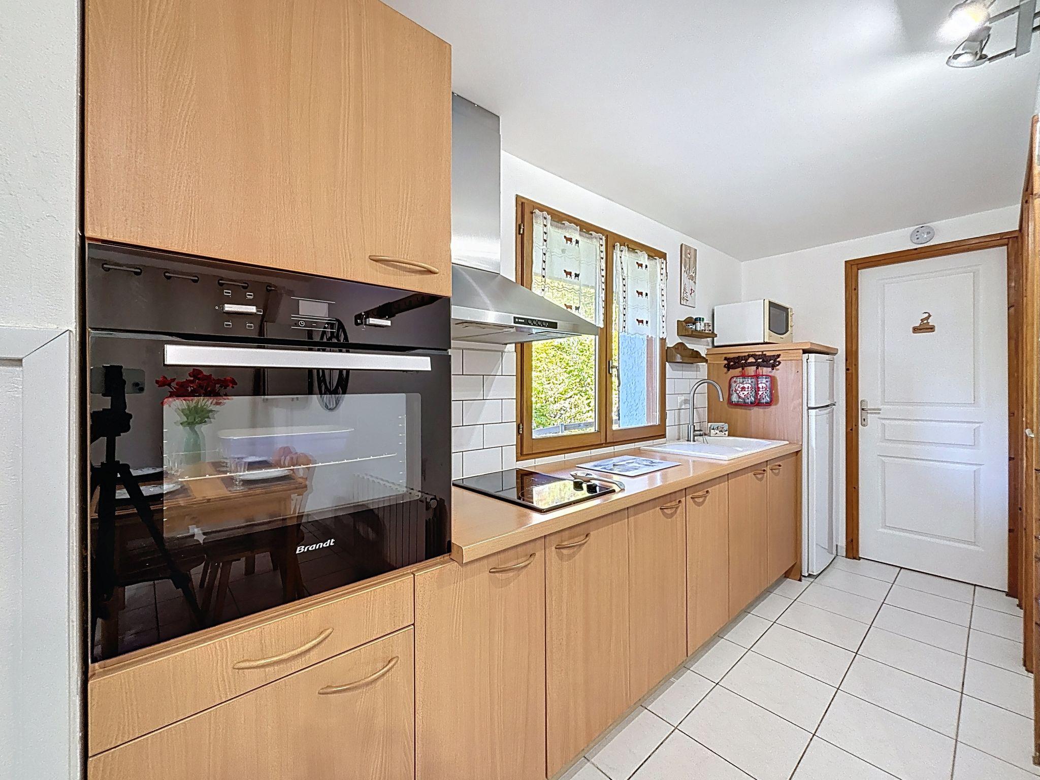 2-room apartment 42 m2, on the ground floor. Renovated in 2024, comfortable and beautiful furnishings: living/dining room with panoramic window with TV (flat screen). 1 room with 1 x 2 bunk beds (80 cm, length 190 cm), 1 french bed (140 cm, length 190 cm). Open kitchen (oven, dishwasher, 2 ceramic glass hob hotplates, toaster, kettle, microwave, electric coffee machine, raclette grill, fondue Set (cheese)) with dining table. Shower, sep. WC. Heating, boiler. South-west facing position. Terrace furniture. Beautiful panoramic view of the mountains. Facilities: washing machine. Internet (WiFi, free). Parking at the house. Please note: non-smokers only. Private entrance, smoke alarm. Offer by a private individual according to Art. 155, IV of CGI.