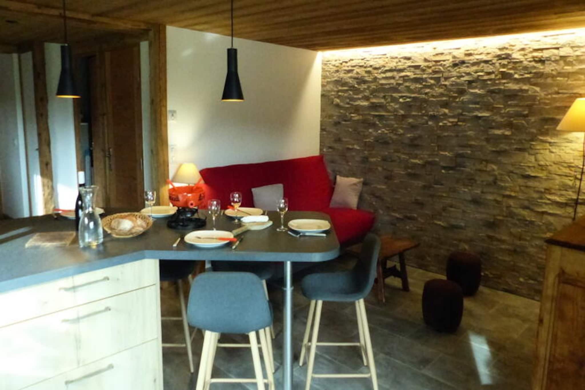 Amid the serene beauty of the Aravis mountains, this charming ground-floor apartment invites you to experience the timeless allure of alpine living. Set within a historic chalet dating back to 1753, the property exudes rustic charm while offering modern comforts. The west-facing terrace provides a tranquil spot to soak in the golden hues of the setting sun, making every evening a moment to cherish. Whether you're seeking adventure or relaxation, this cozy retreat is your gateway to the wonders of Le Grand-Bornand. \n\nSpanning 43m², the apartment comfortably accommodates up to six guests. Its thoughtful layout includes a welcoming living space, a fully equipped kitchen, and cozy bedrooms designed for restful nights. Guests can indulge in the shared Norwegian bath for a rejuvenating soak after a day of exploration. Pets are welcome, ensuring that every member of the family can join in the holiday fun. Practical amenities such as private outdoor parking, provided linens, and included cleaning services (excluding kitchen and trash removal) ensure a hassle-free stay. Firewood is available upon request for added warmth and ambiance. \n\nLocated just 1.3 km from the center of Chianillon Le Grand-Bornand, the apartment offers convenient access to local attractions. The downhill ski slopes are a mere 600 meters away, while a free shuttle stop is just 200 meters from your doorstep, making it easy to explore the area. From picturesque trails to thrilling ski runs, the region offers activities for every season. \n\nWhether you're here to carve through pristine snow or bask in the summer sun, this alpine haven promises unforgettable memories. With its blend of history, comfort, and proximity to nature, it's the perfect choice for your next mountain escape.
