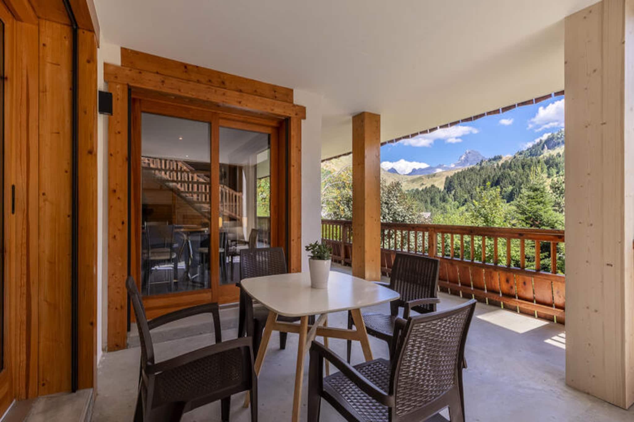 In a serene corner of Le Grand-Bornand, where alpine charm meets modern comfort, this inviting 63m² apartment offers a tranquil retreat for up to four guests. Situated on the second floor of a newly built chalet, it boasts a south-facing balcony and terrace that frame breathtaking views of the surrounding mountains, creating the perfect backdrop for your holiday. Whether you're sipping coffee in the morning sun or unwinding after a day of adventure, the scenery will captivate you. \n\nInside, the apartment is thoughtfully designed with cozy furnishings and practical amenities to ensure a comfortable stay. The layout is ideal for small families or couples, offering a harmonious blend of space and intimacy. The kitchen is fully equipped for preparing meals, while the living area invites relaxation with its warm ambiance. Guests will appreciate the convenience of outdoor parking, a garage, and included cleaning services, with linens and towels provided for a hassle-free experience. \n\nLocated just 600 meters from the center of Le Chinaillon and the downhill ski slopes, the apartment is perfectly positioned for exploring the area. A free shuttle stop is only 50 meters away, making it easy to access local attractions and facilities. Whether you're here to ski, hike, or simply soak in the alpine atmosphere, you'll find everything you need within reach. \n\nThis property is a haven for those seeking a peaceful yet connected mountain escape. With its stunning views, convenient location, and thoughtful amenities, it promises a memorable stay in the heart of the French Alps.
