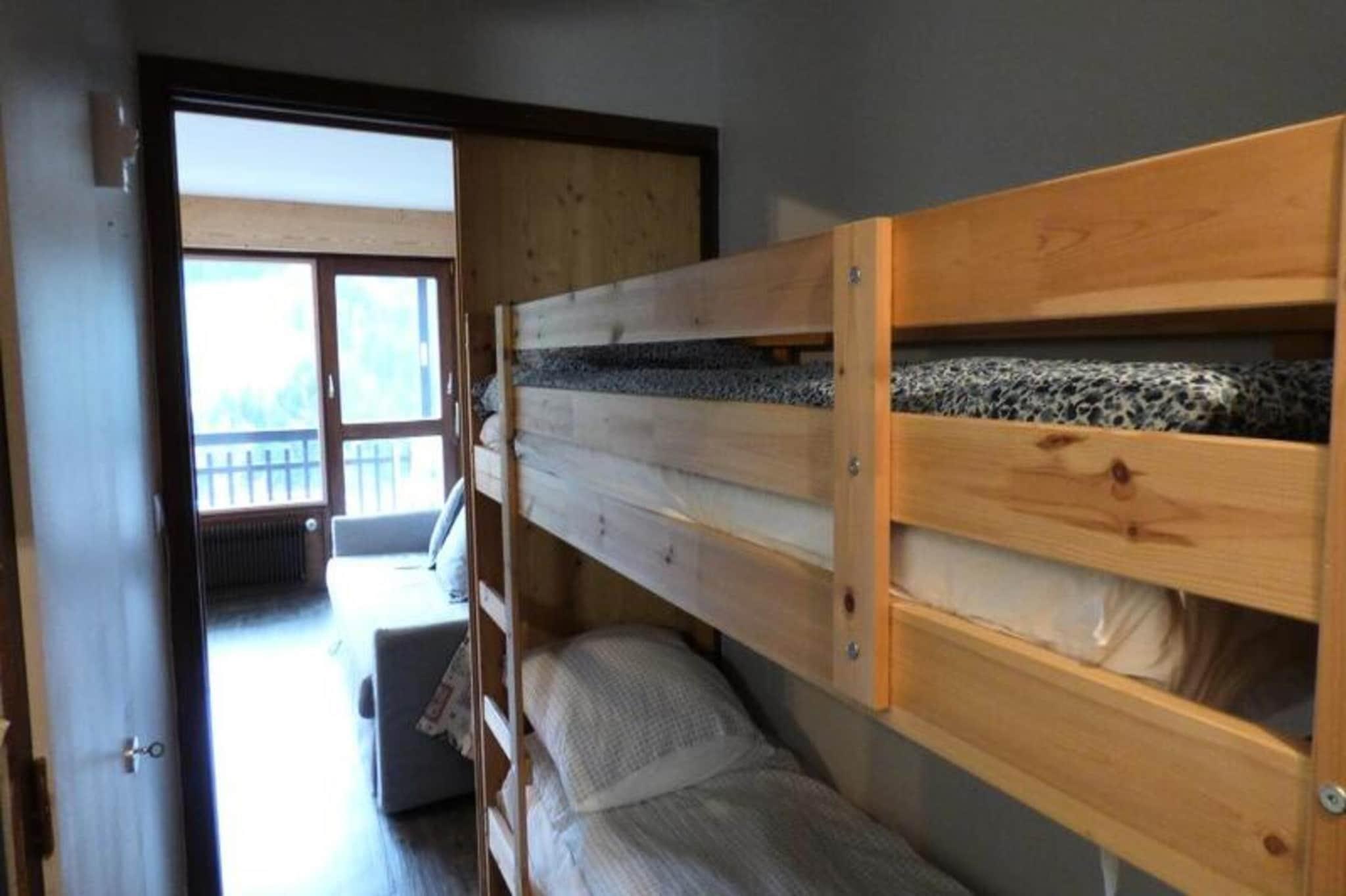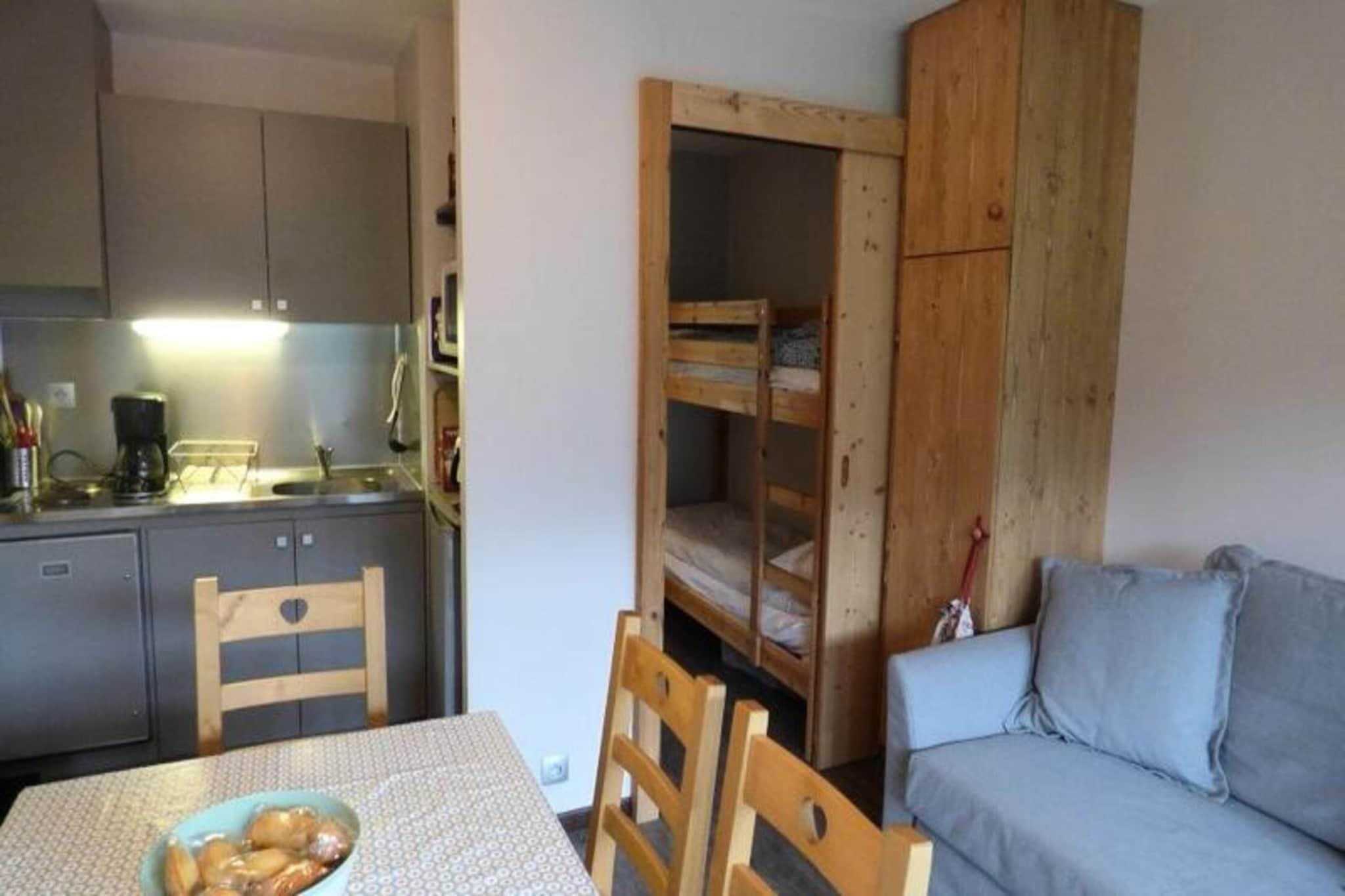 Property, along with its charming mountain ambiance, offers a cozy 23m² accommodation suitable for up to 4 guests. It features a south-facing balcony with a stunning view of the Aravis mountain range, perfect for relaxing and enjoying the scenery. Inside, the living room is equipped with a 140 cm x 140 cm convertible sofa, while a separate mountain corner with two 70 cm bunk beds offers additional sleeping space. The unit also includes a bathroom with a washing machine and toilet. Guests can rent an additional room nearby (referenced as lot 558), which offers extra sleeping arrangements, a ski locker, shower room, and WC. The property is pet-friendly, and while sheets and towels are not provided, there are options for additional rental services. Tourist taxes apply for adults, and heating is available throughout the apartment. The residence is ideally located in close proximity to key attractions, making it a great base for exploring the region. The Annecy SNCF train station is 32 km away, providing convenient access for guests arriving by train. For those traveling by air, Geneva Airport is 52 km from the property, while Lyon Airport is a bit farther at 155 km. Additionally, the property’s location offers easy access to the surrounding natural beauty, with the Aravis mountain range visible right from the balcony. Guests will also enjoy nearby ski slopes, and the apartment is located in a tranquil, picturesque setting perfect for mountain enthusiasts. The accommodation comes equipped with a well-appointed kitchen, which is open to the living room for a seamless experience. It includes essential appliances such as a refrigerator, microwave, and cooking utensils, providing guests the flexibility to prepare their own meals. A dining table with cutlery for up to eight people is available for family or group dining. Additionally, there is a ski locker available for guests' convenience, allowing for easy storage of equipment after a day on the slopes. The apartment offers comfort and functionality, making it a great option for a mountain getaway.