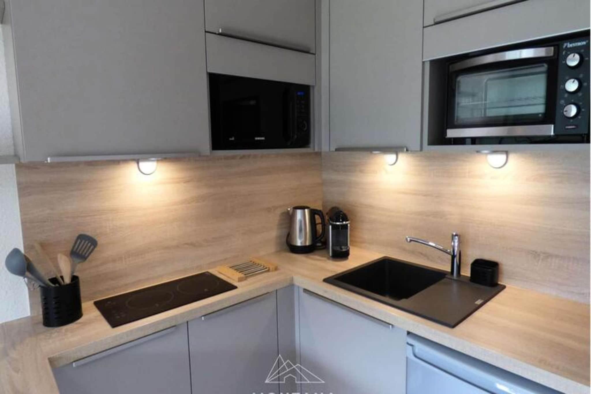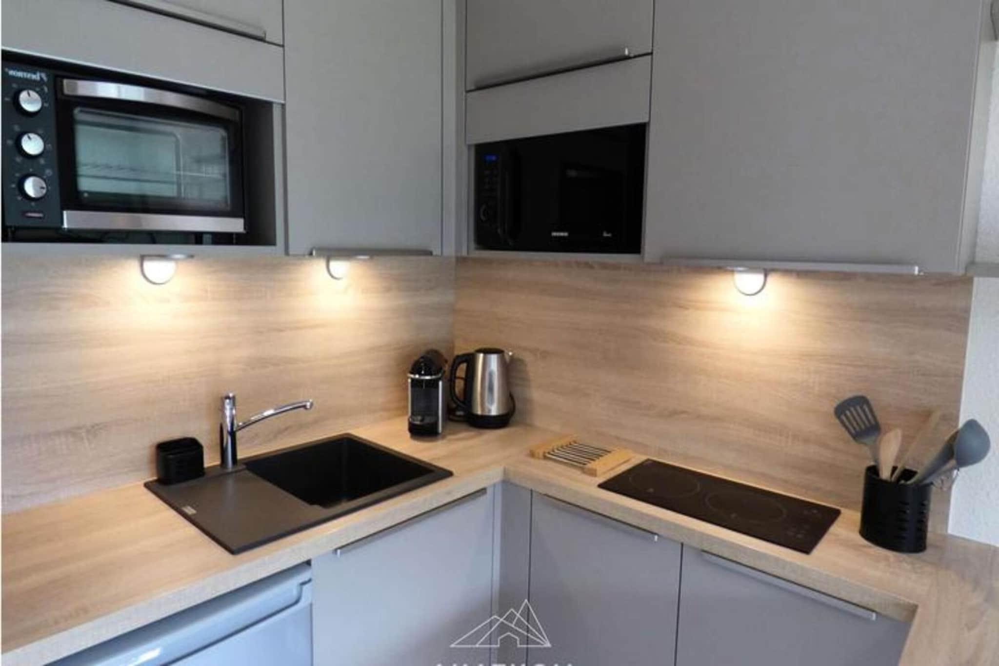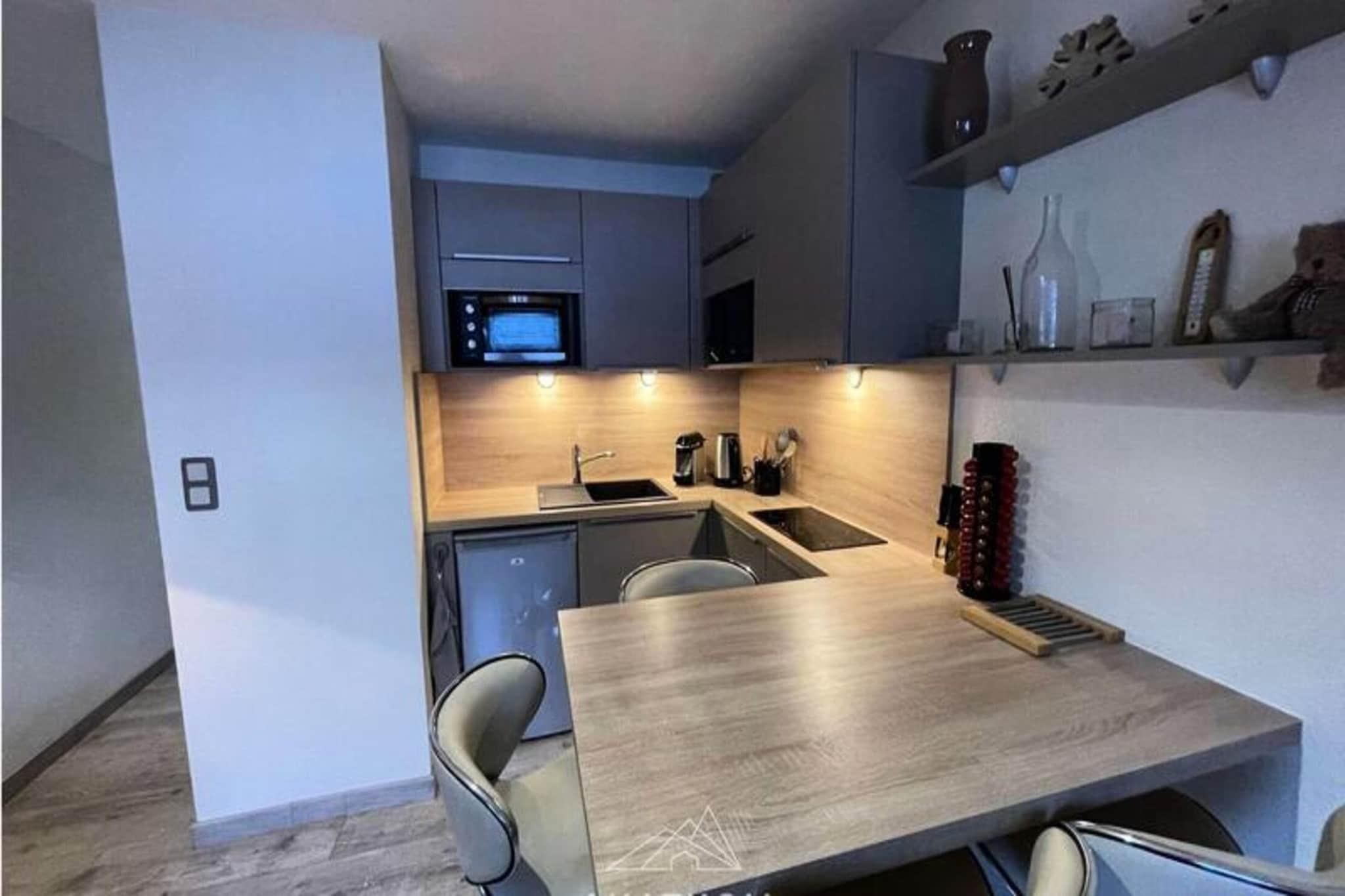 This beautifully renovated 20 m² studio is ideal for up to 4 people and is located in the Nant Robert area, just 5 minutes by car from the center of the village and shops. The apartment offers a south-west facing balcony with stunning views of the village and the surrounding Aravis mountain range. Inside, the studio features a double bed (140 cm) in the sleeping area, a living room with a 2x80 pull-out sofa, and a shower room with a WC. The apartment is situated on the first floor (fourth from the foot of the residence) and is rated 2 stars for 2 people. Guests can enjoy the peaceful setting and scenic views, while being close to the village amenities. Sheets and towels are not provided, and tourist taxes are payable for adults (18+ years). The property is conveniently located with easy access to transport links: Annecy SNCF train station is 32 km away, Geneva Airport is 52 km, and Lyon Airport is 155 km.