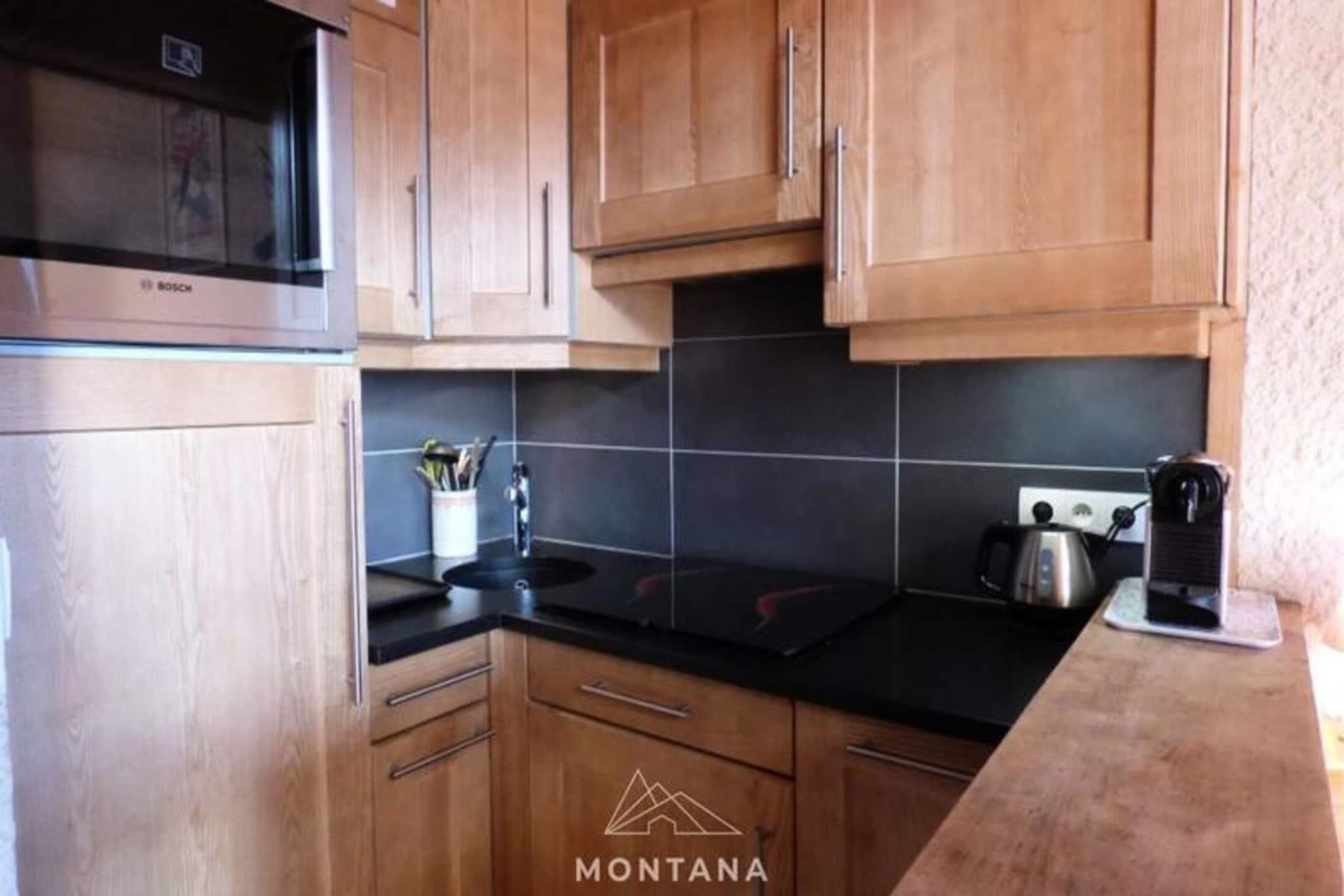 This charming 45 m² mountain-style apartment, located on the 3rd floor of the Residence les Soldanelles, accommodates up to 6 people. The apartment features a living room with a BZ sofa bed, a new open kitchen, and a dining area. Upstairs, you’ll find a double bedroom (with a new 140 cm bed, updated in 2022) and a mezzanine with a 1-person trundle bed. Enjoy beautiful views of the mountains and village from the South-West facing balcony. Please note, sheets and towels are not provided, and there is a tourist tax for adults. The apartment is ideally located in the Hameau de Suize, just 600 meters from shops and 350 meters from the cable cars, offering easy access to skiing and resort amenities. The charming village center is within walking distance, providing a mix of convenience and tranquility in a picturesque setting. The accommodation includes a well-equipped kitchen, shower room, and separate WC. The property is heated for comfort during colder months.