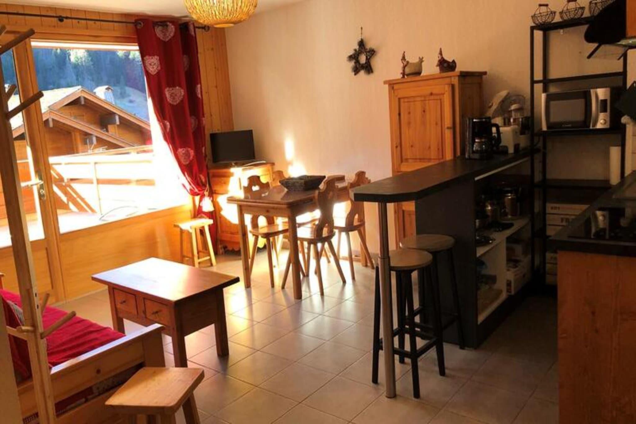 Property, along with its welcoming atmosphere, offers a cozy and functional holiday home designed for up to 6 guests. The apartment features a living room with a comfortable pull-out sofa, perfect for extra sleeping space, along with a bedroom containing a double bed (140 cm) and a sleeping area with two single bunk beds. The accommodation also includes a south-facing terrace that provides stunning views of the Aravis Massif and the village. While pets are not mentioned, guests can enjoy the convenience of a well-equipped space with a separate bathroom and WC. Please note that sheets and towels are not provided, and a tourist tax is applicable for adults. The residence includes an elevator for easy access to the ground-floor apartment. Located in the heart of the area, the apartment offers excellent proximity to several attractions. It is just a short drive from Annecy SNCF train station (32 km) and Geneva Airport (52 km), ensuring convenient access for guests arriving by train or plane. The property is also within easy reach of the village's shops and restaurants, adding to its appeal for those looking to explore the local culture and cuisine. The beautiful views from the terrace highlight the location’s natural charm, with easy access to outdoor activities such as hiking or skiing in the winter months. The central location makes it a great base for discovering nearby attractions or simply relaxing in the village. The apartment is equipped with a kitchenette that opens into the living room, providing a seamless space for preparing meals. Appliances include a stove and fridge, along with necessary cookware for self-catering. The living area is well-furnished, allowing for relaxation after a day of activities. The property’s separate bathroom and WC offer privacy and convenience, while the large terrace provides an ideal spot for enjoying the surrounding views. Though sheets and towels are not provided, guests can easily arrange for these, ensuring comfort throughout their stay. The combination of practical amenities and scenic views makes this apartment a great choice for those looking for both comfort and functionality during their vacation.