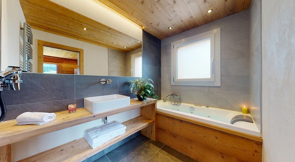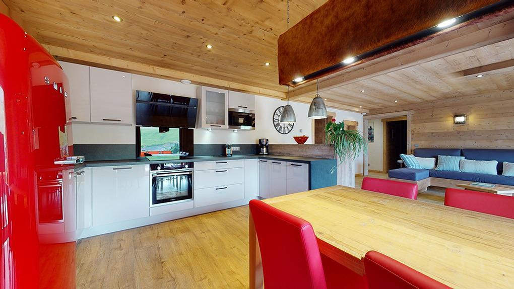 Haus: : Historisches Chalet mit 2 großzügigen Komfort-Ferienwohnungen: Sauna / SPA-Bereich, Kaminofen, Panorama-Terrasse. Im Parterre: ansprechend renovierte 3-Zimmer-Wohnung in einer gelungenen Mischung aus traditionell-rustikalem und modernem Stil. Nichtraucherwohnung. Rustikal-wohnliches Ambiente, Holzvertäfelung in allen Zimmern. Moderne, geschmackvolle Einrichtung. Kostenloser Internetzugang über W-Lan. Service: alle Betten sind bei Ankunft bezogen. Handtücher, Badeteppiche vorhanden. Badezimmer mit Handtuchtrockner, Fön. Zentralheizung. Terrasse und Balkon mit Sitzmöbeln, Liegen, elektrischem Grill und herrlichem Blick auf die Skipisten und Bergkulisse. 2 Pkw-Stellplätze pro Wohnung