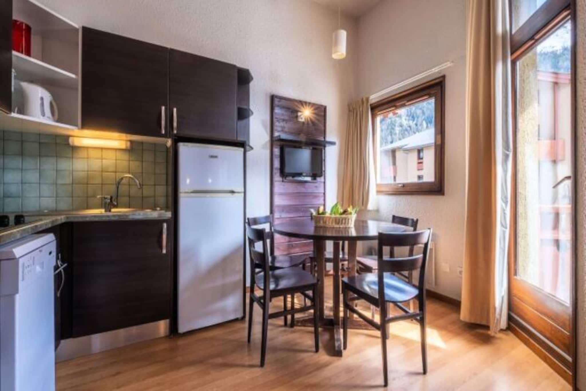 In the heart of the majestic Maurienne Valley, where the French Alps meet the Italian border, this charming retreat in Val Cenis offers an unforgettable alpine escape. Surrounded by the breathtaking landscapes of the Vanoise National Park, every moment here is infused with the crisp mountain air and the timeless beauty of snow-capped peaks. Whether you’re seeking adventure or tranquility, this destination promises lasting memories for all ages. From festive holiday celebrations to serene snowshoeing trails, the magic of the mountains awaits you. \n\nDesigned for comfort and convenience, the 2-room apartment accommodates up to five guests, making it ideal for families or small groups. The living room features a cozy sofa bed, while the open cabin bedroom and mezzanine provide additional sleeping arrangements. The fully equipped kitchen invites you to prepare hearty meals after a day of alpine exploration, and the private balcony offers a peaceful space to soak in the views. Modern amenities such as WiFi, television, and a sauna ensure a relaxing stay, while thoughtful touches like baby kits and pet-friendly policies cater to diverse needs. \n\nStep outside and discover a world of activities. From exhilarating ski slopes to enchanting dog sled rides, Val Cenis offers something for everyone. Children can enjoy age-specific clubs, while teens have their own dedicated space to unwind. The village’s festive atmosphere during Christmas and New Year adds a special touch to your holiday, with Santa visits, gifts, and lively celebrations. For nature lovers, the nearby trails and pristine landscapes provide endless opportunities for exploration. \n\nWhether you’re here to ski, hike, or simply relax, this alpine haven is the perfect setting for your next adventure. Let the charm of Val Cenis and the allure of the Maurienne Valley create memories that will last a lifetime.