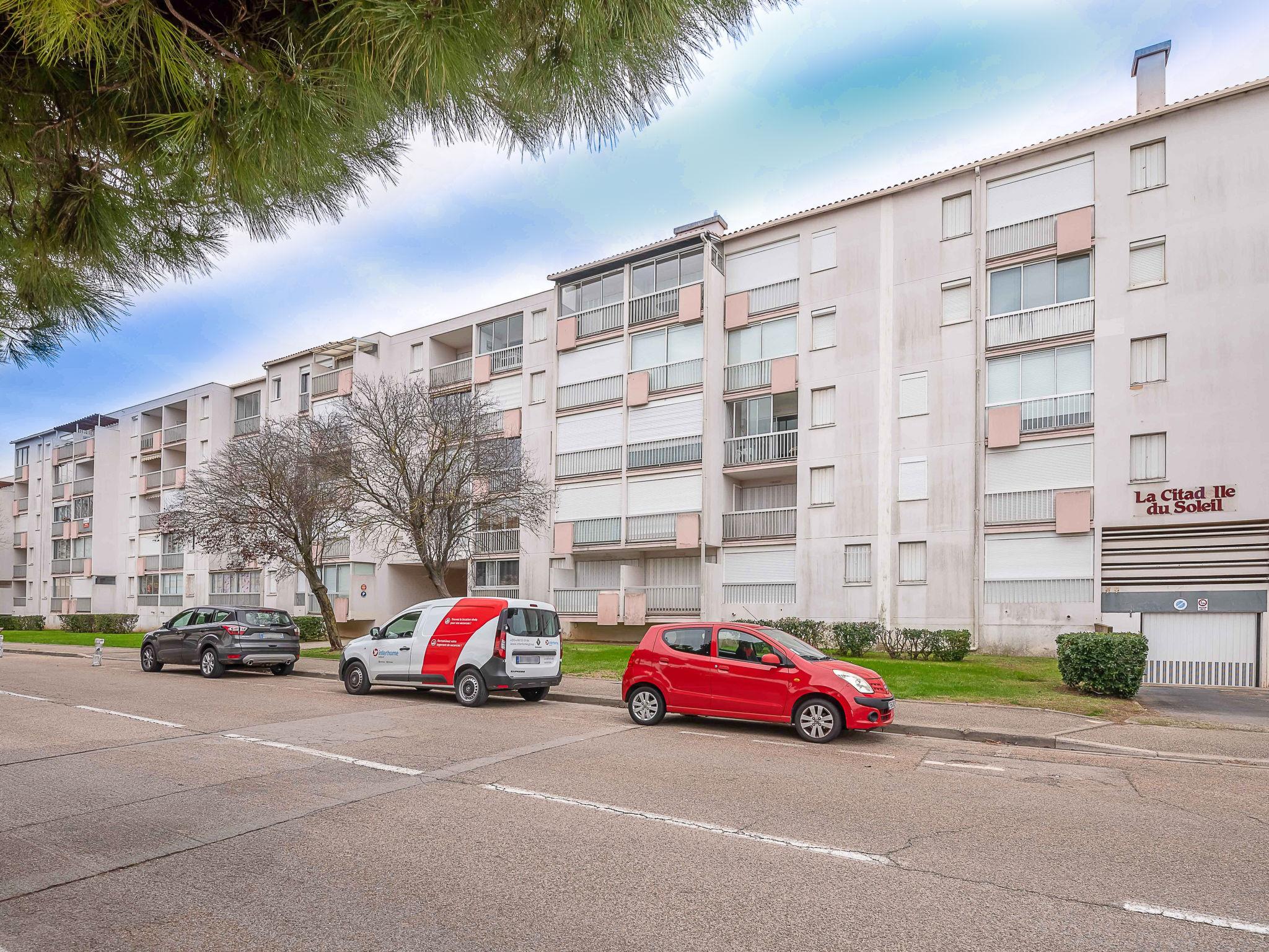 Residence "Los Amigos", 4 storeys. In the district of le Palais de la Mer, in the resort 1.5 km from the centre of Grau du Roi, 300 m from the sea, 250 m from the beach. Public parking on the road. Shop 500 m, grocery 250 m, supermarket 300 m, shopping centre 200 m, restaurant 250 m, bus stop 800 m, railway station 2 km, sandy beach "Nord" 250 m, thermal baths "Thalazur" 3 km. Sports harbour 1.5 km, sailing school 1.5 km, minigolf 250 m, riding stable 2.4 km, children's playground 250 m. Nearby attractions: Les Arènes du Grau du Roi 2 km, Seaquarium 200 m, Casino Flamingo 500 m, Aigues-Mortes 6 km, La Grande Motte 13 km, Nîmes 52 km. Hiking paths: Réserve naturelle de Camargue. Please note: the keys‘ handover takes place by the agency Interhome in Port Camargue. Airfield 24 km from the property. Additional accommodations can be booked.