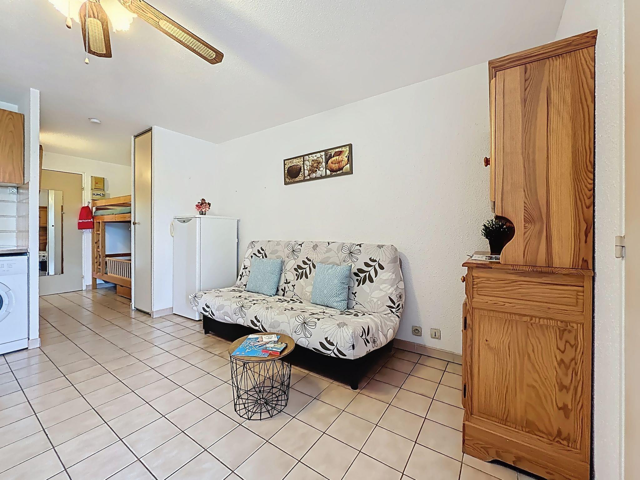 "Le Lagon Bleu", 2-room apartment 30 m2 on 1st floor. Living/dining room with TV (flat screen). 1 room with 1 french bed (140 cm, length 190 cm). Entrance hall with 1 x 2 bunk beds (80 cm, length 190 cm). Open kitchen (4 hot plates, mini-oven, oven, dishwasher, toaster, kettle, microwave, electric coffee machine). Shower, sep. WC. Electric heating. Covered balcony. Facilities: washing machine. Internet (WiFi, extra). Parking space n 199. Please note: maximum 1 pet/ dog allowed. Smoke alarm. Offer by a private individual according to Art. 155, IV of CGI. 30133001135J6