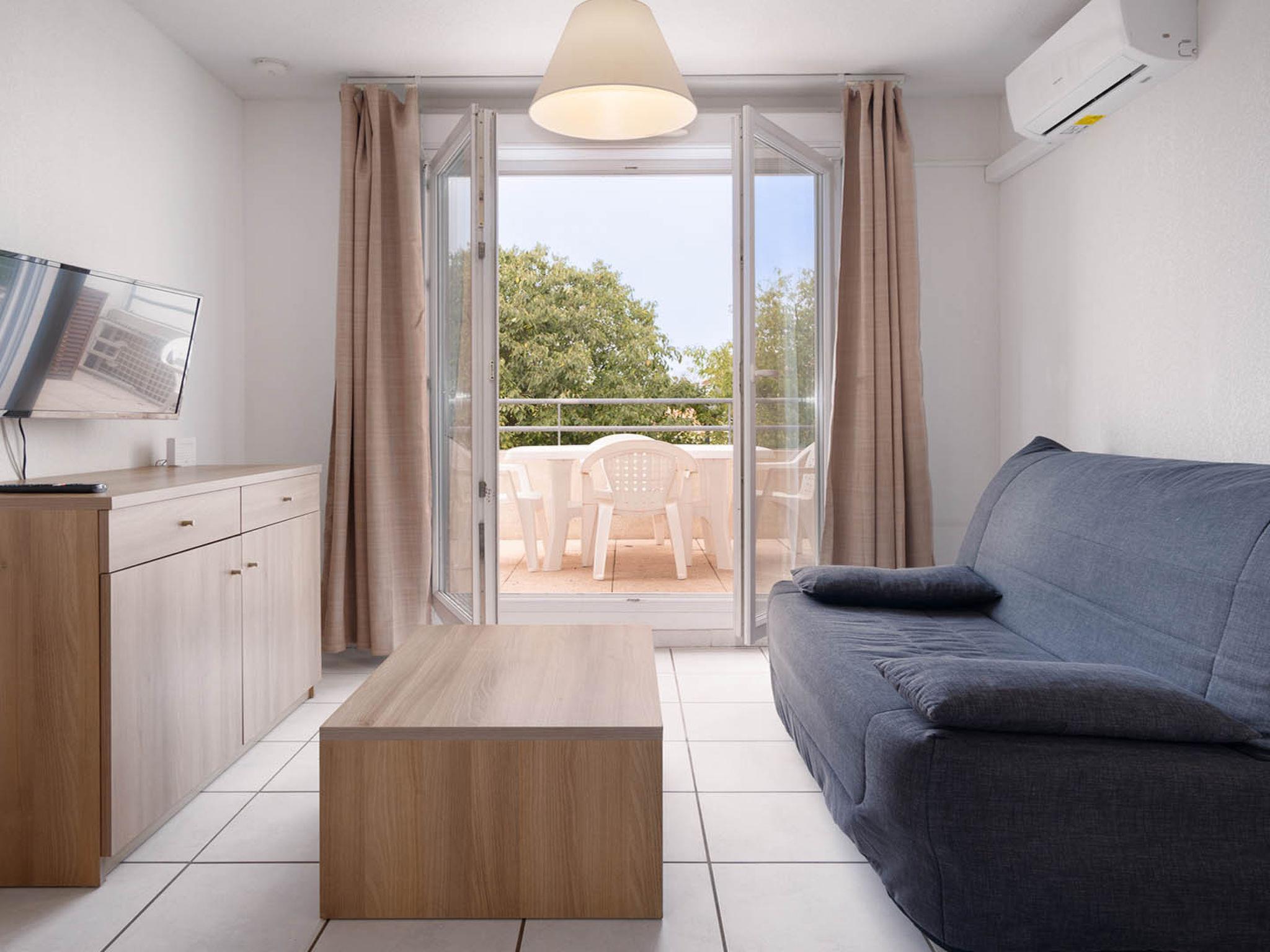 "Cap Camargue A", 2-room apartment 45 m2 on 1st floor. Object suitable for 4 adults. 1 room with 1 double bed and TV. Living room with 1 sofabed and 1 pull-out bed. Open kitchen (4 hot plates, toaster, kettle, microwave, freezer, electric coffee machine). Shower/WC. Balcony. Facilities: Internet (WiFi, free). Parking (1 car). Please note: non-smokers only. Offer by a commercial proprietor according to Art. 155, IV, CGI