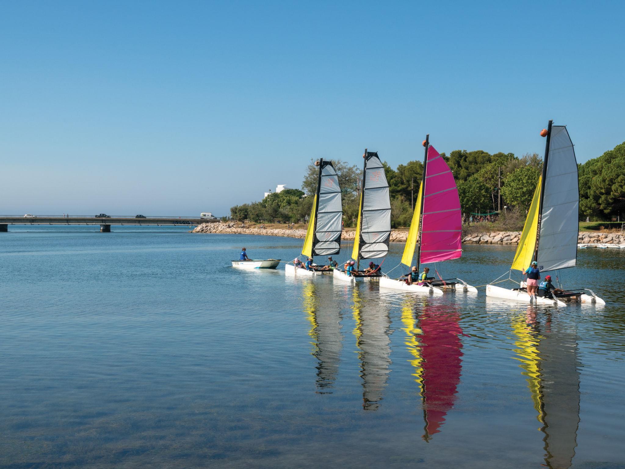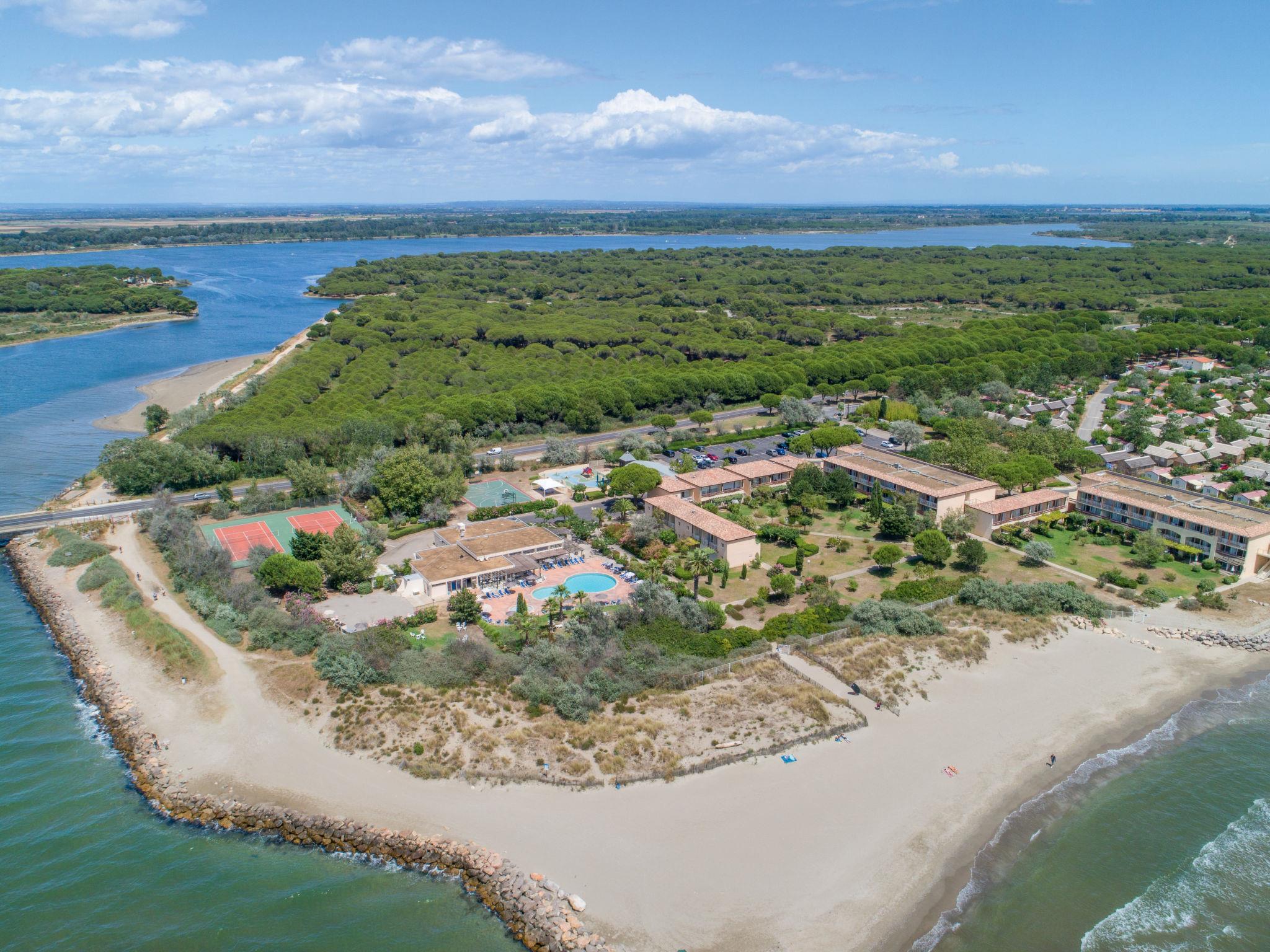 Holiday village "Sowell Résidence Les Sablons". 57 apartments in the residence. 3.5 km from the centre of Grau du Roi, 4 km from the centre of La Grande Motte, 9 km from the centre of Aigues Mortes, in the heart of the city, 50 m from the sea, 50 m from the beach, direct access to the beach. For shared use: well-kept garden 3 ha, swimming pool heated (100 m2, seasonal availability: 01.Jun. - 31.Sep.) with internal staircase. Children's pool, tennis (2 x hard court), table tennis, boccia, children's playground. In the complex: reception, bar, WiFi, solarium, washing machine, tumble dryer (extra). Breakfast and half board possible (extra). Parking. Grocery 2 km, bakery 2 km, bicycle rental 800 m, bus stop 150 m, railway station "Gare du Grau-du-Roi" 5 km, thermal baths "La Grande Motte" 2.5 km. Sports harbour 4 km, golf course (18 hole) 4 km, sailing school 800 m, riding stable 10 km. Nearby attractions: Parc Aquatique 2 km, Montpellier 28 km, Arles / Nîmes 50 km, Les Saintes Maries de la Mer 70 km, Uzès 80 km, Béziers 90 km. Please note: the photograph shows a typical example. The holiday properties may differ in living space, floorplan, equipment and furnishing.