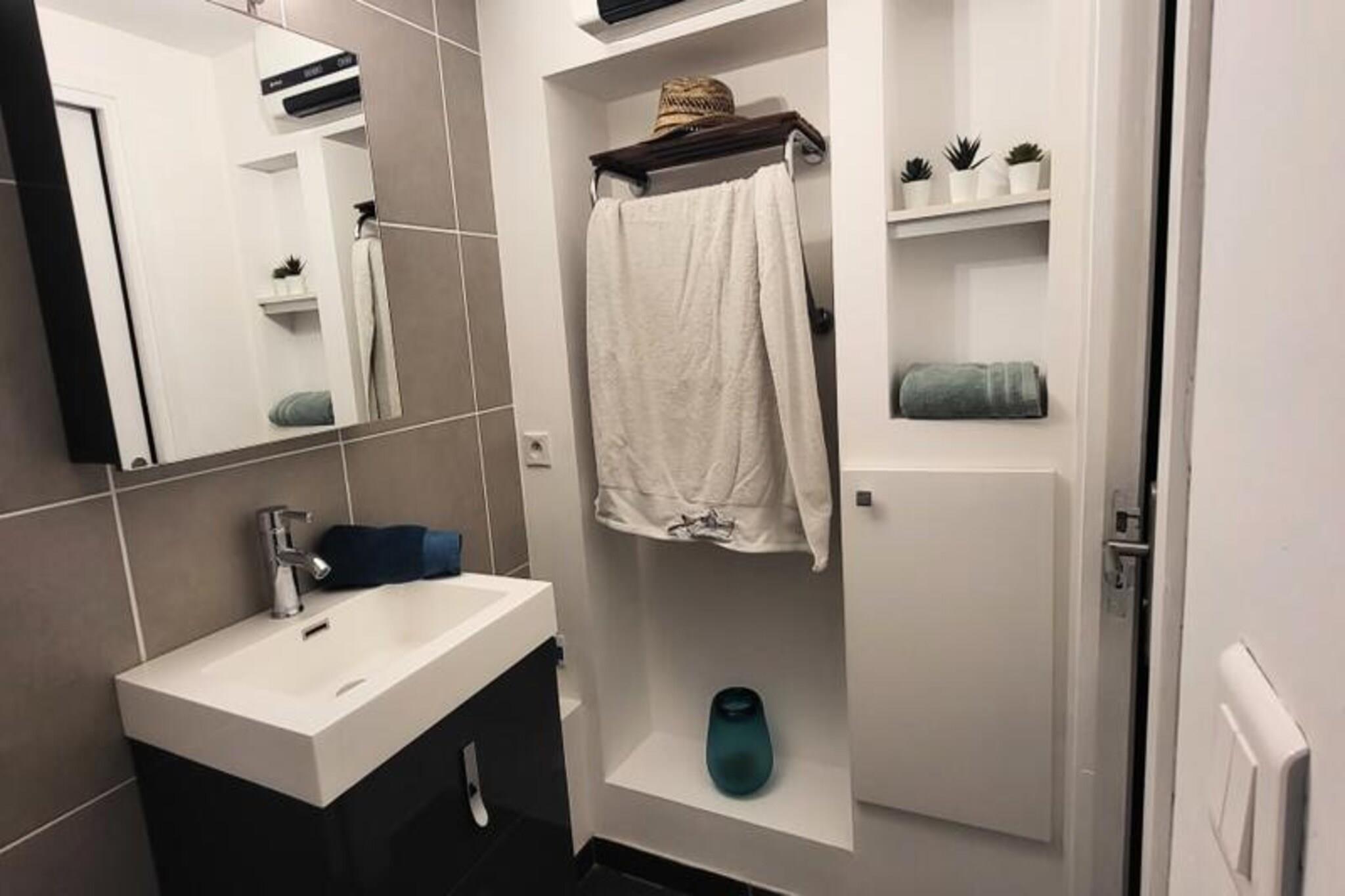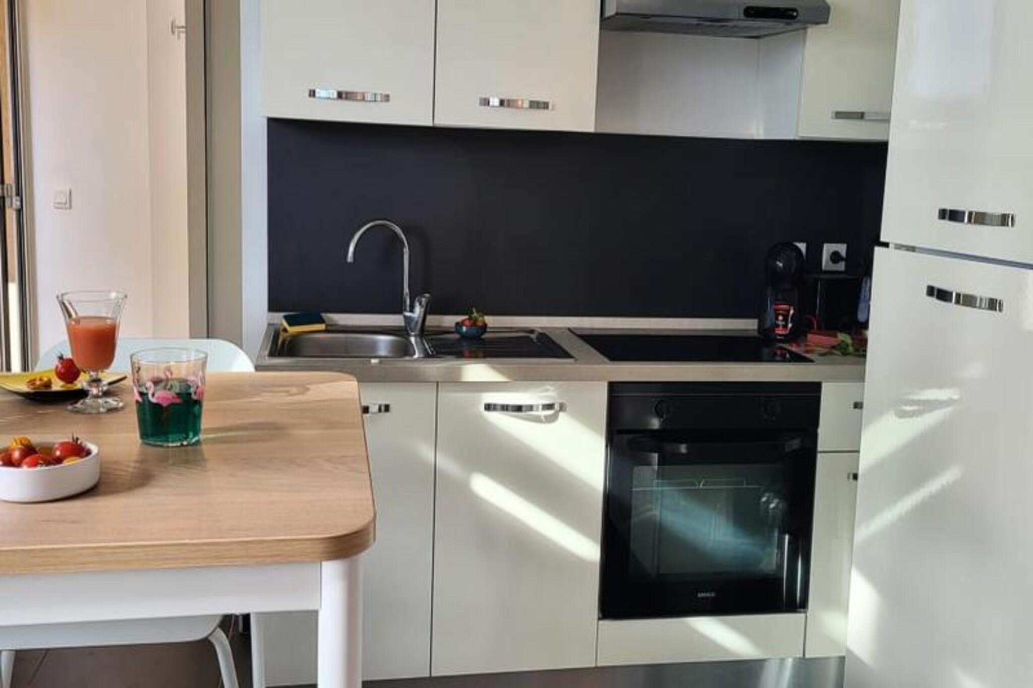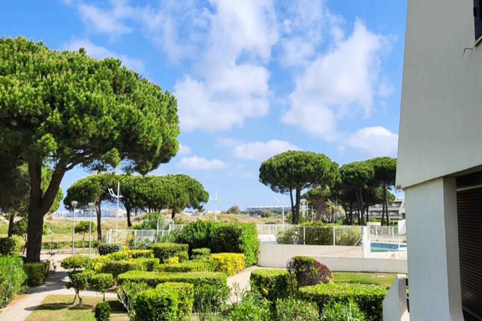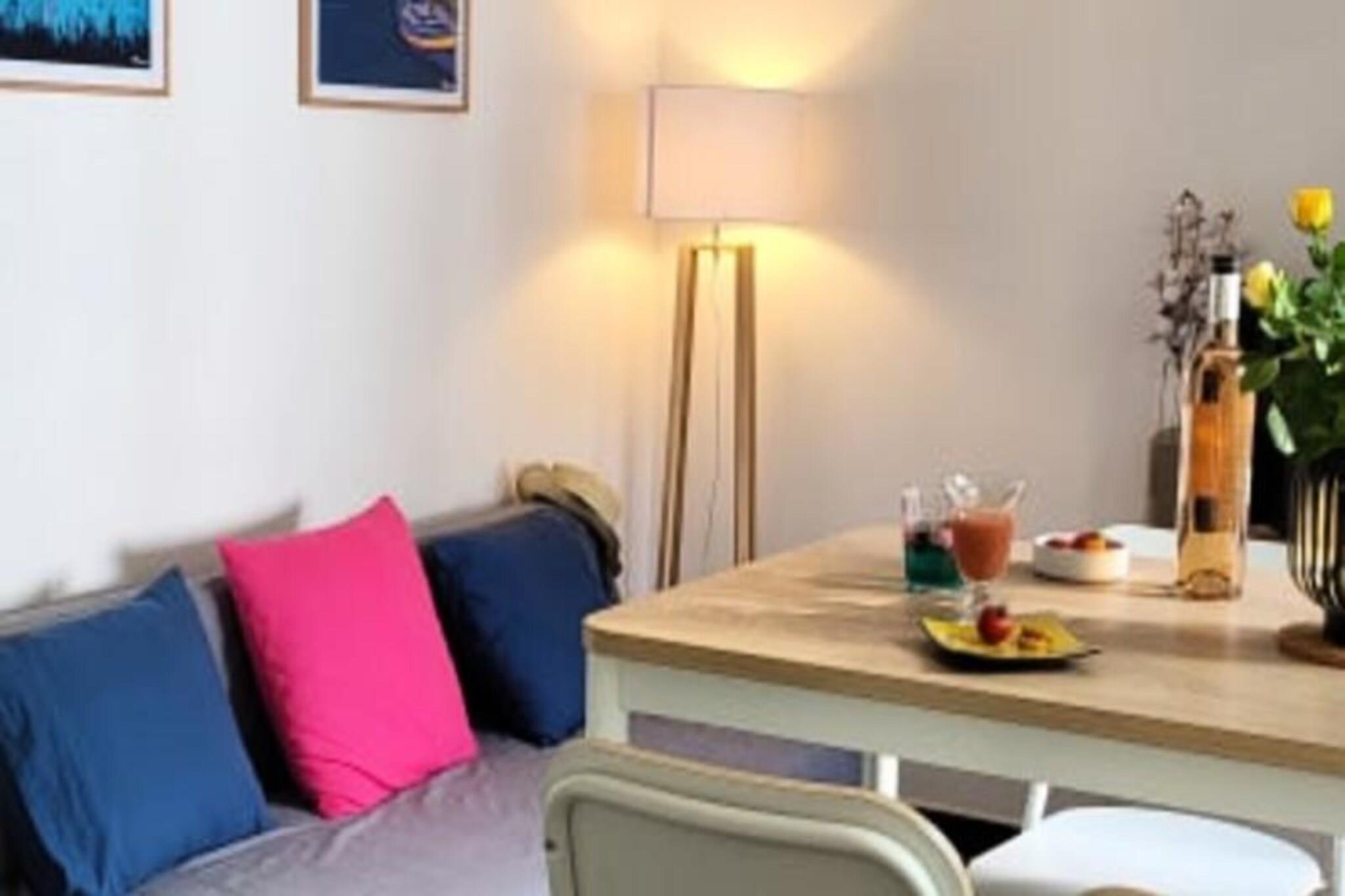 This charming apartment, located on the first floor of a residence with a shared swimming pool, offers a relaxing retreat for up to 2 guests. It features a bedroom with a 140 cm bed, a cozy living room with a convertible sofa, and a fully equipped kitchen. Pets are welcome upon request for an additional EURO30. The property includes private parking within the residence and a non-debited pre-recorded deposit of EURO400 with a registration fee of EURO7.94. The apartment is perfectly situated just 15 minutes on foot from North Beach in Port Camargue and 10 minutes from local shops. Nearby attractions include the fishing port, where visitors can watch the trawlers return, and the first marina in Europe, home to the UCPA Sailing School. Experience beautiful sunsets along the North Beach promenade and enjoy the flight of pink flamingos in the Camargue. Local markets are held twice a week, just a 10-minute walk away. Inside, the open-plan living area boasts large bay windows offering views of the gardens and beach. The kitchen is equipped with a glass ceramic hob, microwave, fridge, and a Dolce Gusto coffee maker. The shower room includes jet showers, a vanity unit with drawers, and a separate toilet. Sheets and towels are available for EURO20 per two people.