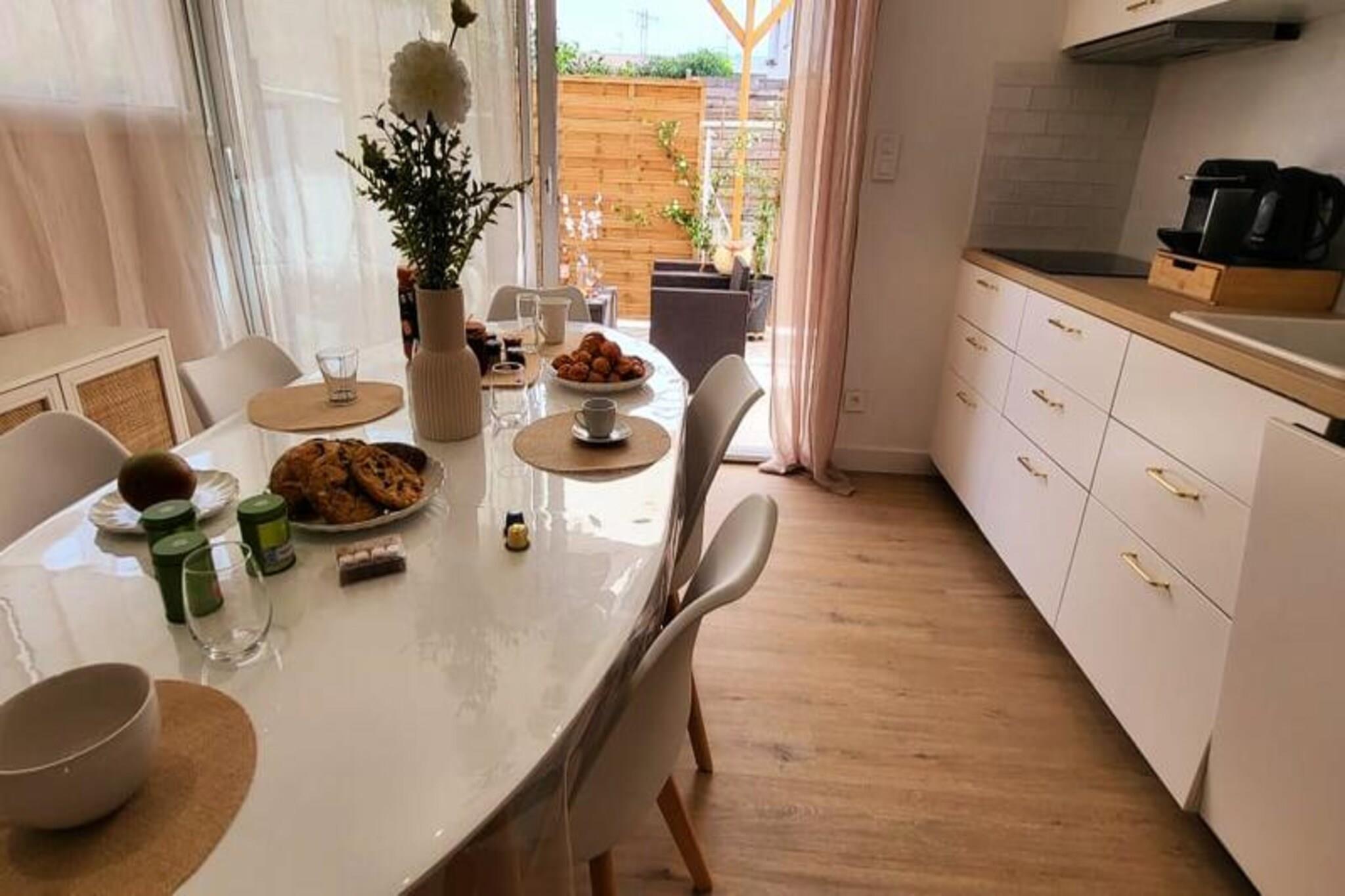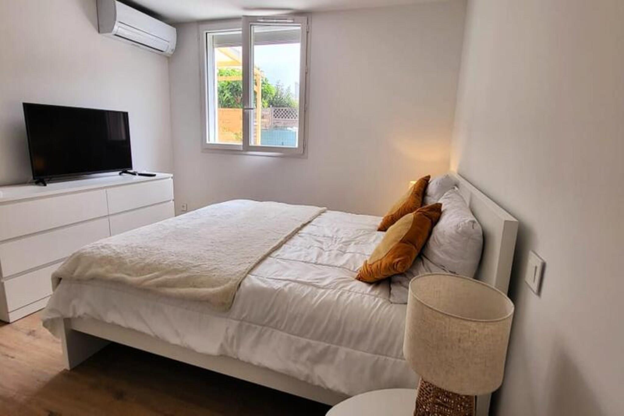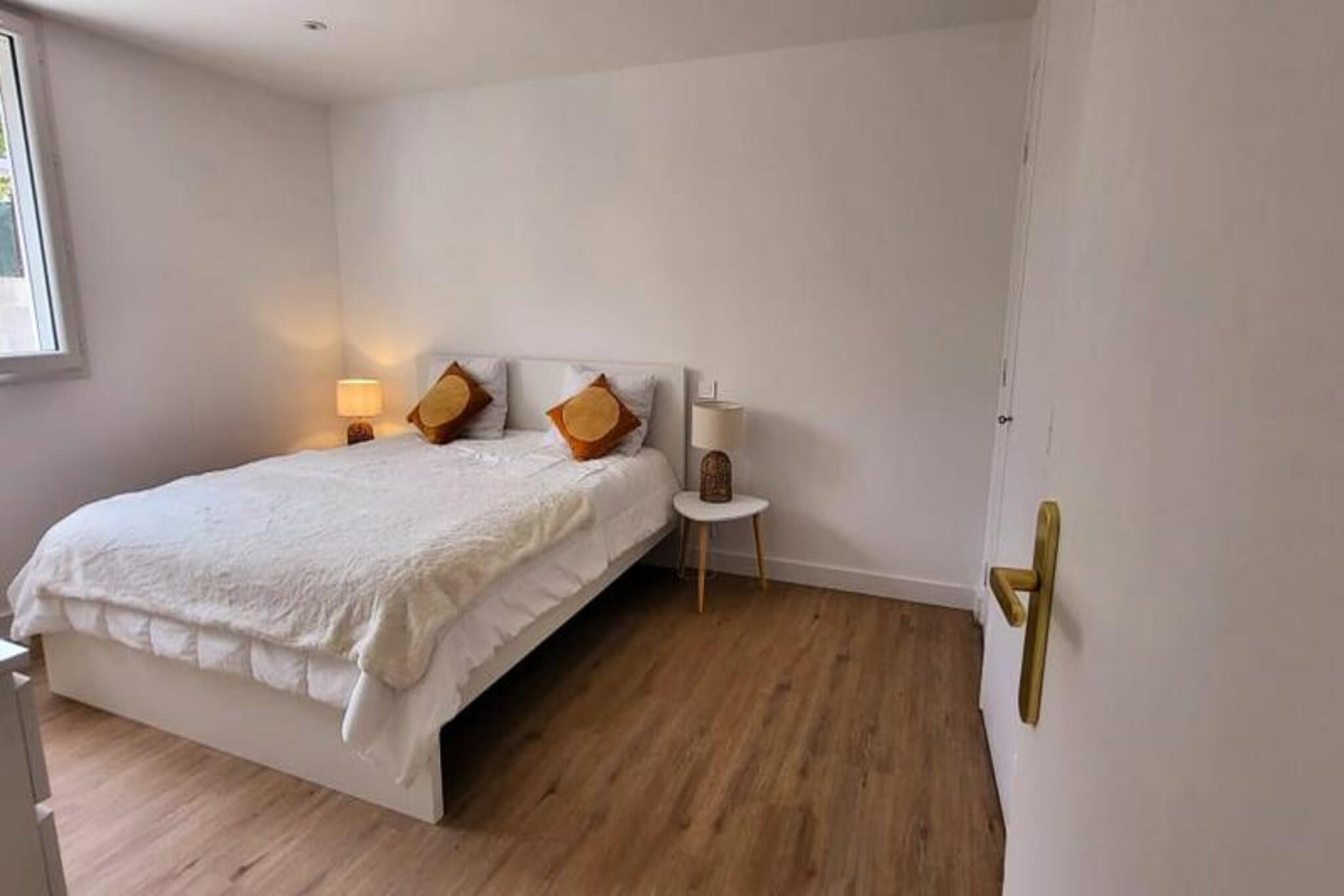 This beautifully renovated apartment offers a comfortable stay with two bedrooms, each featuring a 160 cm bed with soft pillows and duvets. Located on the ground floor of a closed residence, it provides a peaceful retreat just 300 meters from the beach and local shops. The apartment is air-conditioned and includes Wifi for added convenience. Pets are not allowed, ensuring a calm and quiet environment for all guests. With parking available on-site or in the street, it's easy to explore the surrounding area on foot. Located in the quiet Town Hall district, the apartment is just 500 meters from Boucanet Beach promenade, where guests can enjoy stunning sunsets and Mediterranean views. The nearby fishing port offers a glimpse of local life, with trawlers passing through the canal and sales stalls along Quai Colbert. Port-Camargue, 1 km away, is Europe’s first marina and a hub for yachts and sailboats. Visitors can also enjoy local cafés, markets, and vineyards nearby. The open-plan living room leads to a large bay window with access to a terrace, perfect for meals or relaxing in the garden. The fully equipped kitchen includes two induction burners, oven, microwave, fridge, freezer, dishwasher, washing machine, Nespresso coffee maker, toaster, and kettle. The shower room features a vanity unit with drawers, and a separate toilet for convenience.