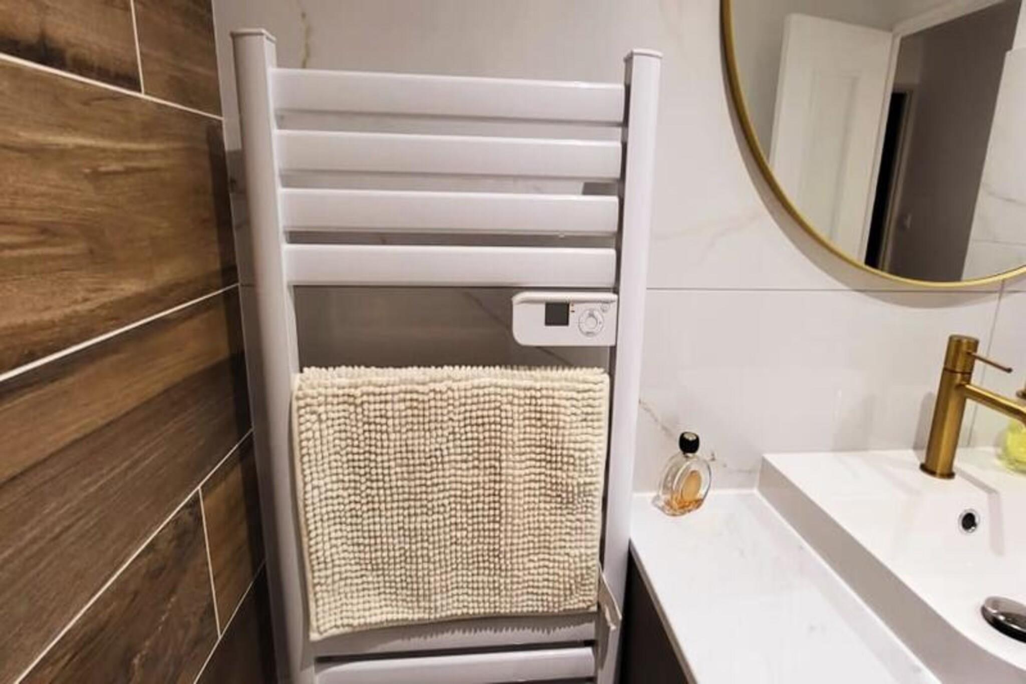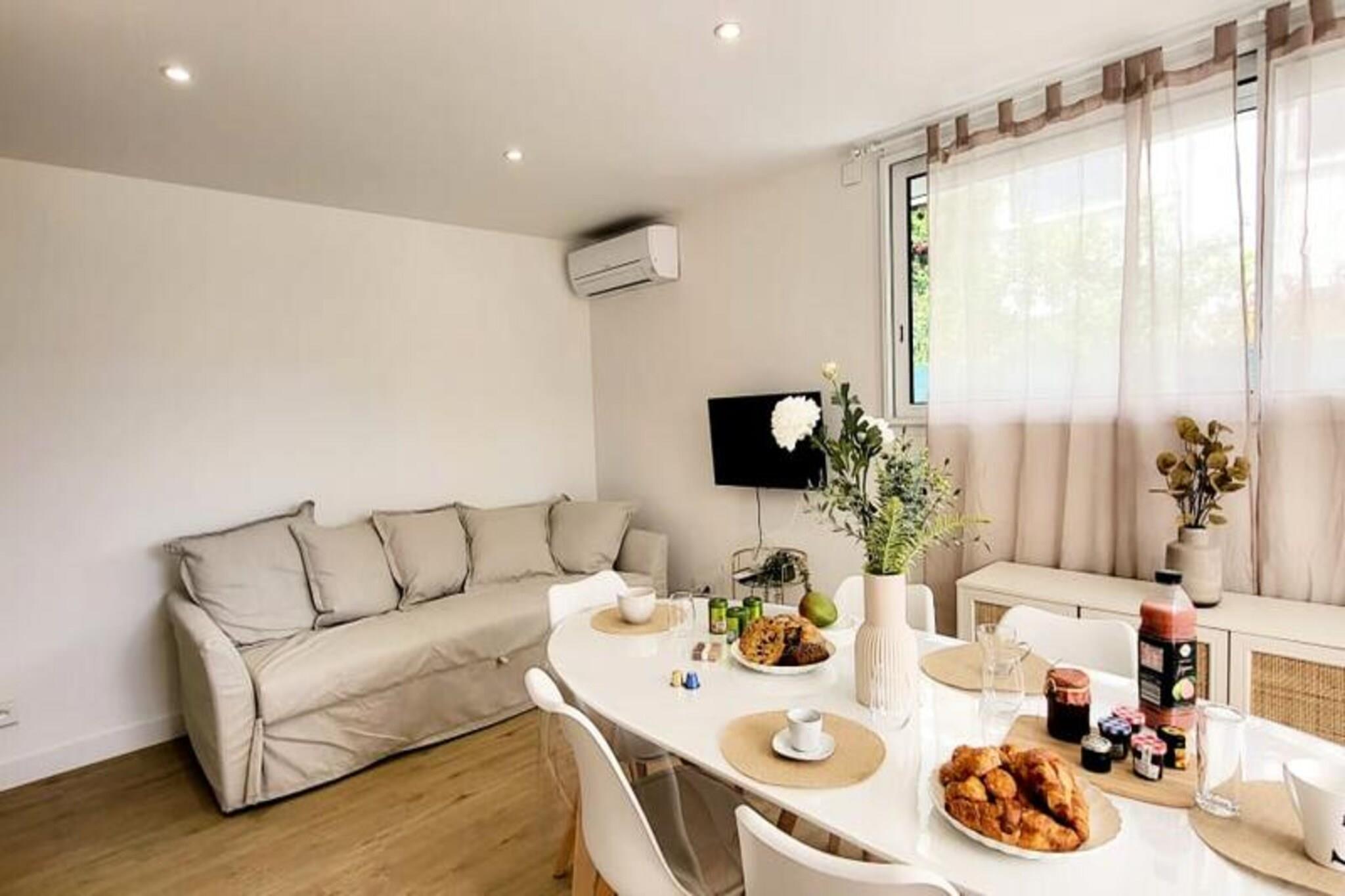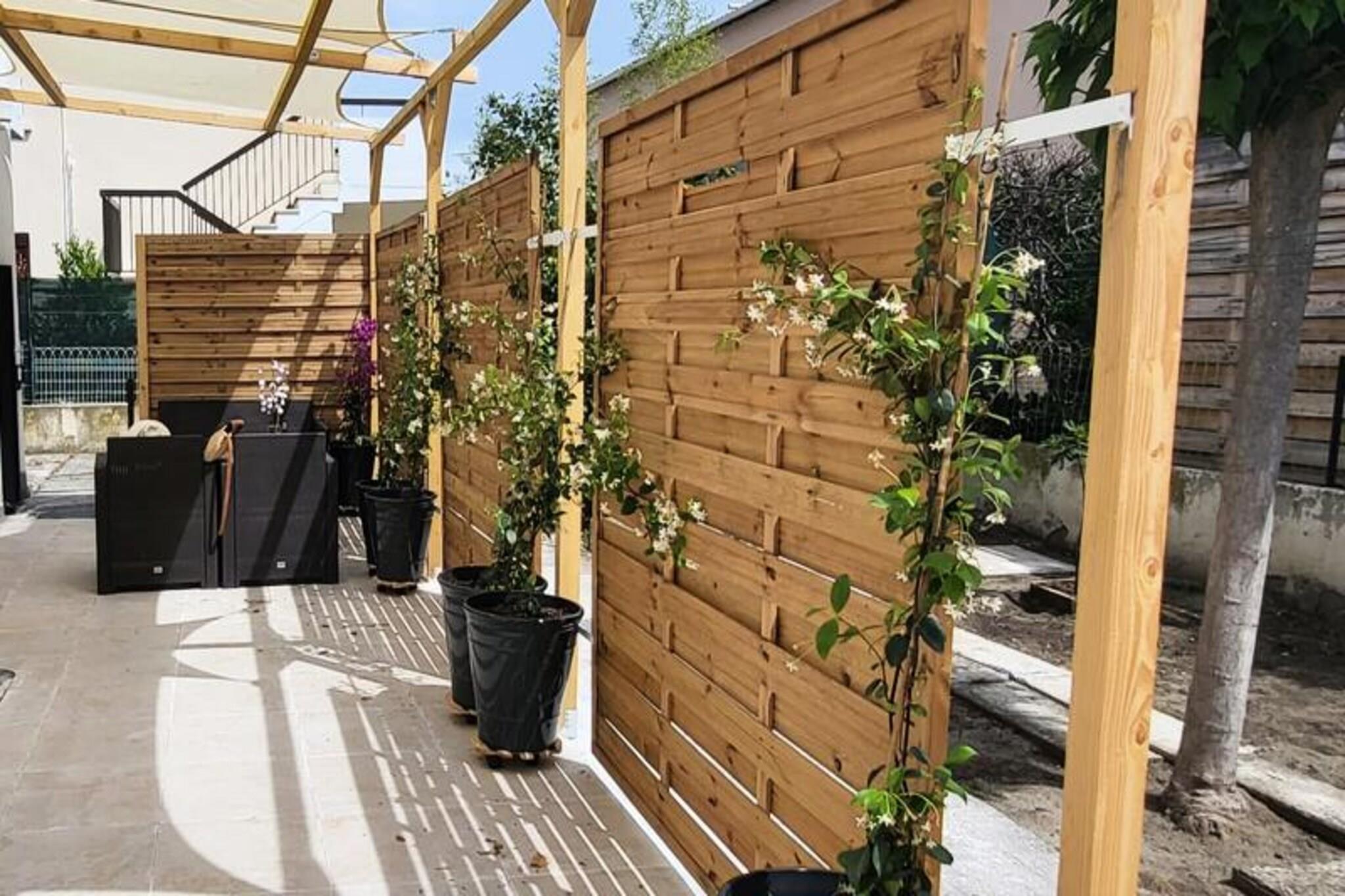 This beautifully renovated apartment offers a comfortable stay with two bedrooms, each featuring a 160 cm bed with soft pillows and duvets. Located on the ground floor of a closed residence, it provides a peaceful retreat just 300 meters from the beach and local shops. The apartment is air-conditioned and includes Wifi for added convenience. Pets are not allowed, ensuring a calm and quiet environment for all guests. With parking available on-site or in the street, it's easy to explore the surrounding area on foot. Located in the quiet Town Hall district, the apartment is just 500 meters from Boucanet Beach promenade, where guests can enjoy stunning sunsets and Mediterranean views. The nearby fishing port offers a glimpse of local life, with trawlers passing through the canal and sales stalls along Quai Colbert. Port-Camargue, 1 km away, is Europe’s first marina and a hub for yachts and sailboats. Visitors can also enjoy local cafés, markets, and vineyards nearby. The open-plan living room leads to a large bay window with access to a terrace, perfect for meals or relaxing in the garden. The fully equipped kitchen includes two induction burners, oven, microwave, fridge, freezer, dishwasher, washing machine, Nespresso coffee maker, toaster, and kettle. The shower room features a vanity unit with drawers, and a separate toilet for convenience.