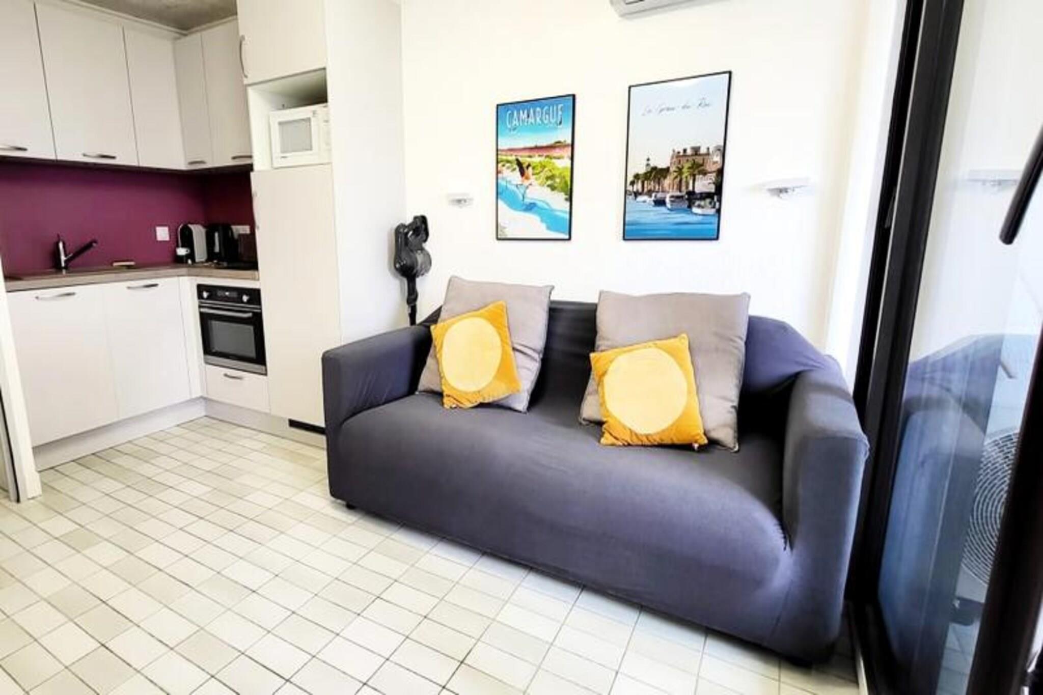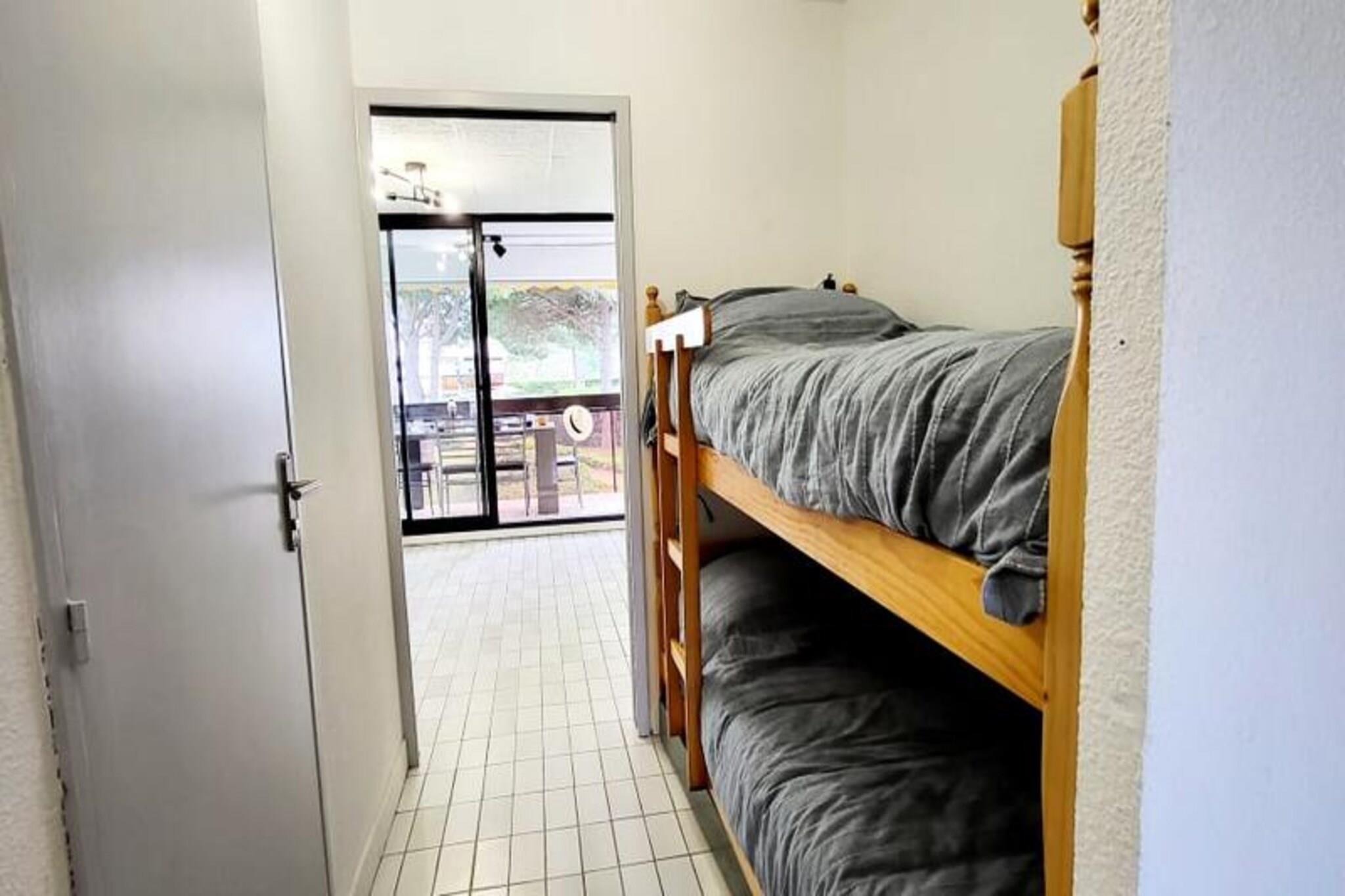 This renovated, air-conditioned apartment features 1 bedroom and a cabin, perfect for 2 adults and 2 children or young adolescents. Located on the 1st floor of a secure residence, it offers 3 comfortable beds and is just 300 meters from the beach and 600 meters from local shops. The apartment is ideal for a relaxing Mediterranean getaway, with private parking and Wifi available for convenience. Please note, pets are not allowed, ensuring a quiet atmosphere for all guests. The apartment is situated in the Seaquarium district, only 10 minutes on foot from the heart of Grau du Roi town center. Guests can explore the charming Port Camargue, just 10 minutes away, and enjoy a stroll along the boats. The area is home to a fishing port where visitors can witness the local fishing culture, from trawlers passing through the canal to food stalls along Quai Colbert. The first marina in Europe, Port-Camargue, is also nearby, offering sailing experiences and sports training facilities. The living room opens onto a terrace where guests can relax and enjoy meals with family or friends. The fully equipped kitchen includes two induction burners, a microwave, fridge, freezer, dishwasher, Nespresso coffee maker, toaster, and kettle. The apartment also features a shower room with a sink and separate toilet for convenience.