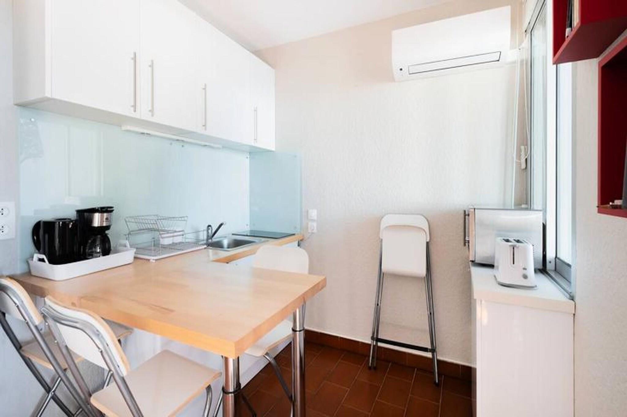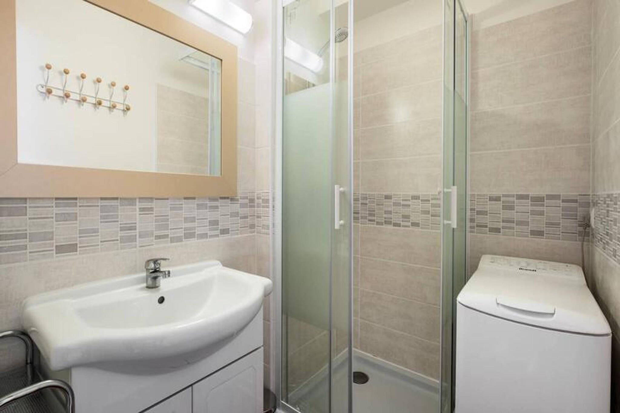 This well-equipped studio cabin, located on the raised ground floor of a luxury holiday home, offers a comfortable stay for up to 4 people. It features a 140 cm built-in bed in the living room, along with air conditioning and a TV. There is also an 80 cm bunk bed in a separate cabin, perfect for 2 additional guests. Pets are not allowed, ensuring a peaceful environment for all. A beautiful 14m² terrace offers an ideal spot for relaxation. The property boasts direct access to the beach, just 0 meters away, with no roads to cross. It is also within a short distance of 200 meters to a shopping center, restaurants, and various water activities, making it perfect for guests seeking both relaxation and adventure. Public transport is also easily accessible, located just 500 meters away. The apartment includes an equipped kitchen with a microwave, hob, and fridge-top for preparing meals at your convenience. The bathroom comes with a washing machine, and the toilet is separate for added privacy. For convenience, there is a shared, secure parking area available for guests.