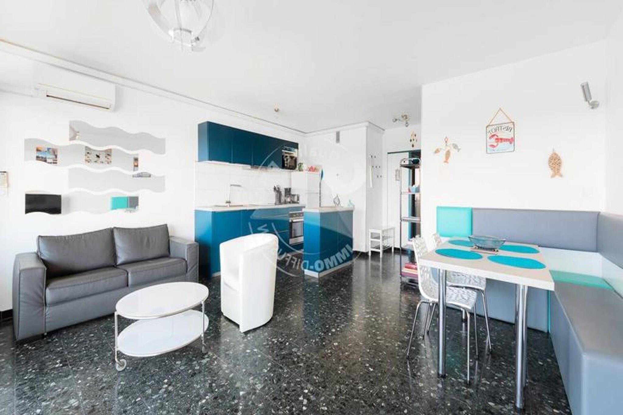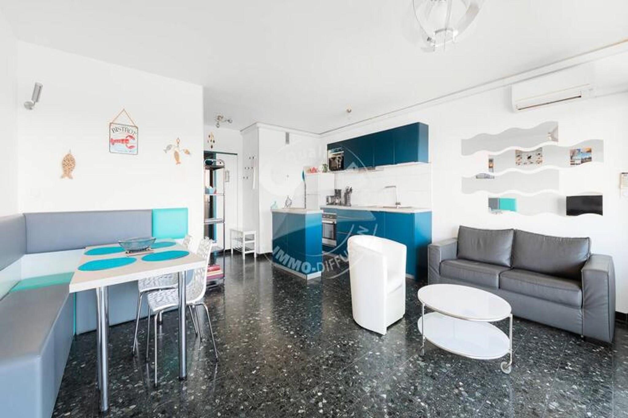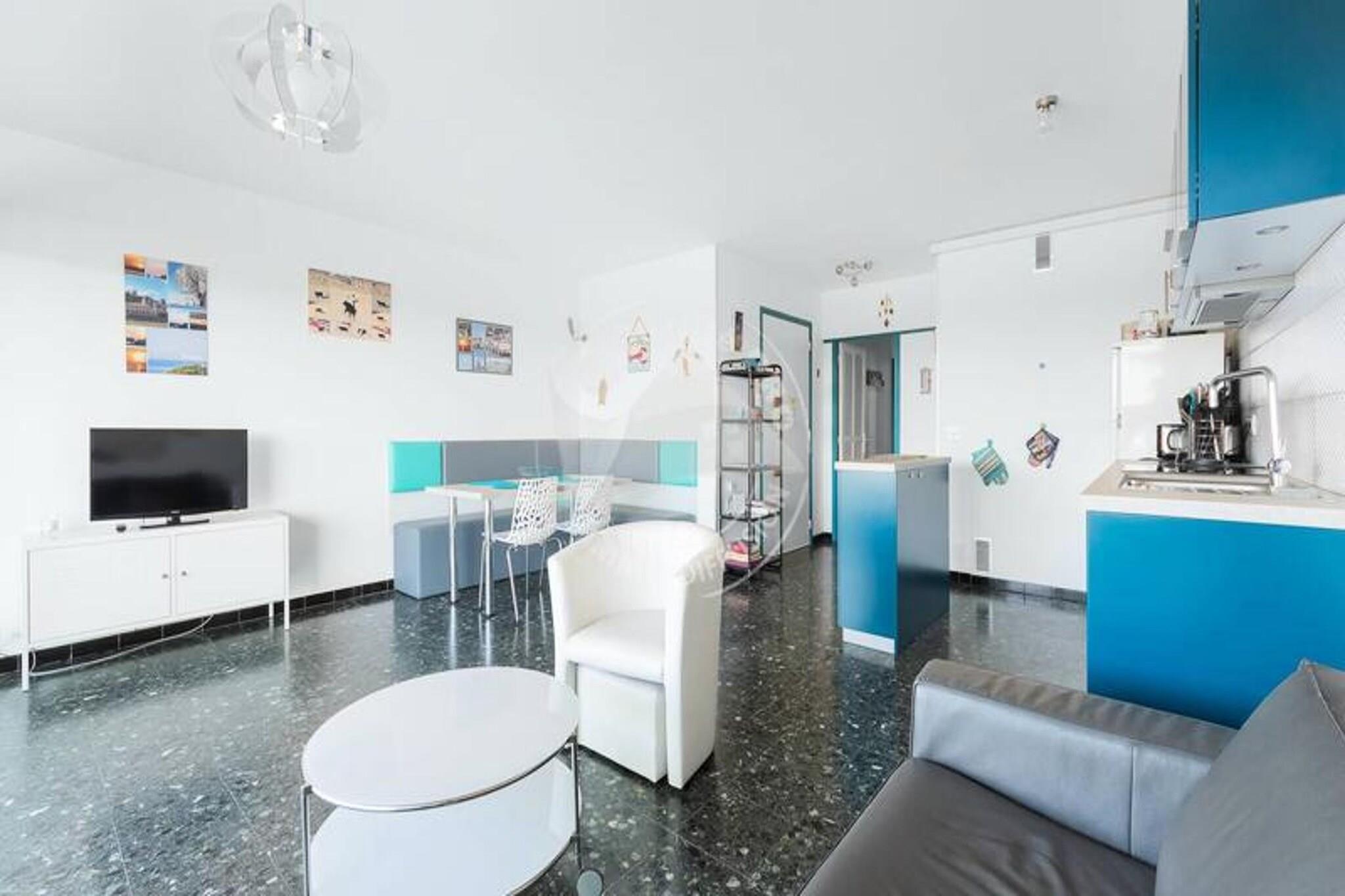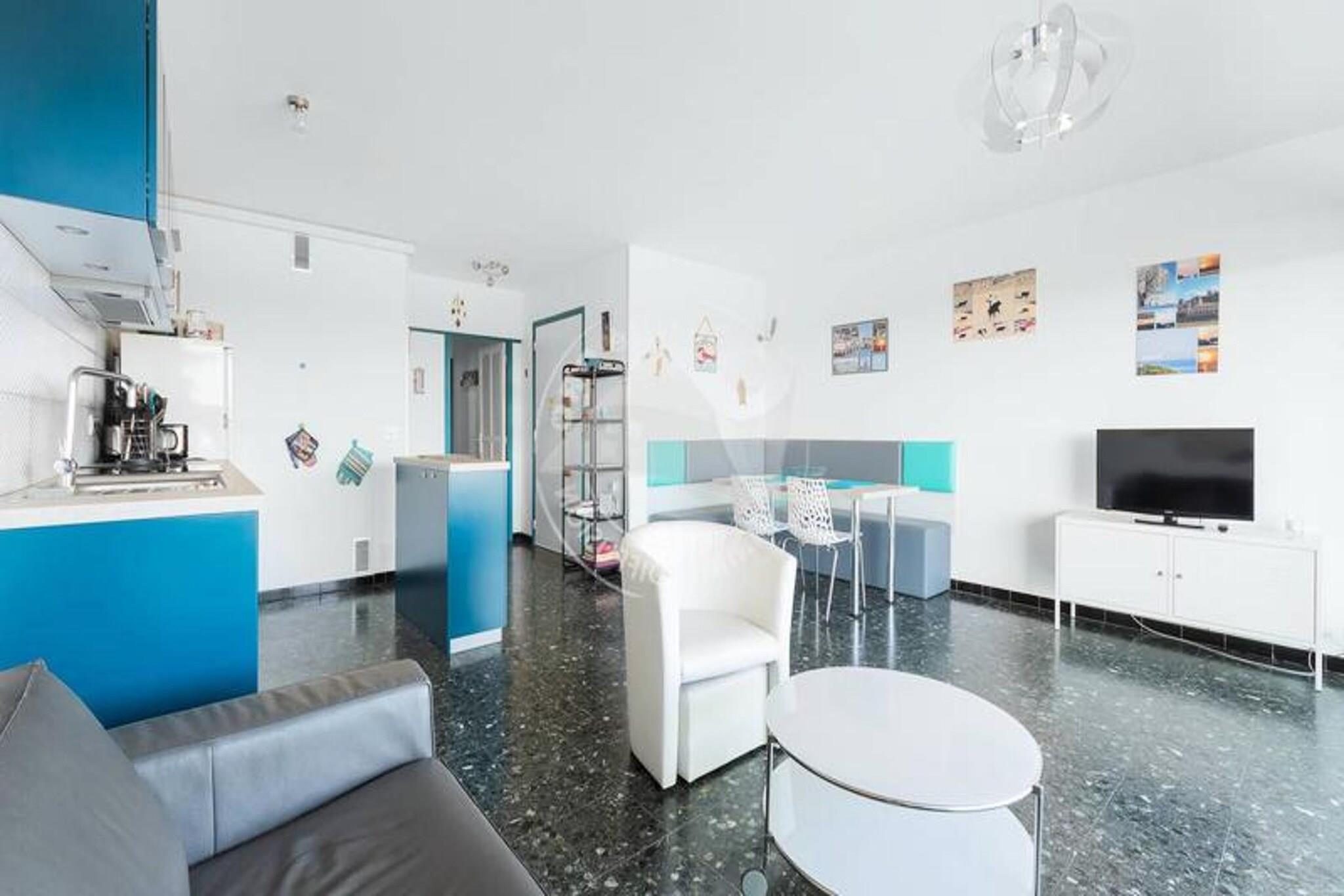 This spacious 62m² apartment is located on the 3rd floor of a secure building with an elevator, offering a beautiful sea view. The apartment includes a bright living room with a 140 cm convertible sofa, air conditioning, television, and wifi, all opening onto an 8m² terrace with a south-west facing view. The property is not pet-friendly and is furnished for 6/7 people. The two bedrooms consist of one with a 140 cm double bed and another with two 90 cm single beds and a 90 cm pull-out bed. There is also a bathroom with a washing machine and a separate toilet, ensuring comfort and convenience. The location of this apartment is ideal for those seeking easy access to local amenities. It is just 50 meters from the beach and 50 meters from a small shopping center that includes a bakery, hairdresser, grocery store, bar, tobacconist, and butcher. The city center, with its many shops and attractions, is only 800 meters away, making it a perfect spot for both relaxation and exploration. The kitchen is fully equipped with a fridge/freezer, microwave, oven, dishwasher, and hob, providing everything needed to prepare meals. A central island offers extra space for cooking or casual dining. The apartment also has bicycle storage, making it easy for guests to explore the area by bike.