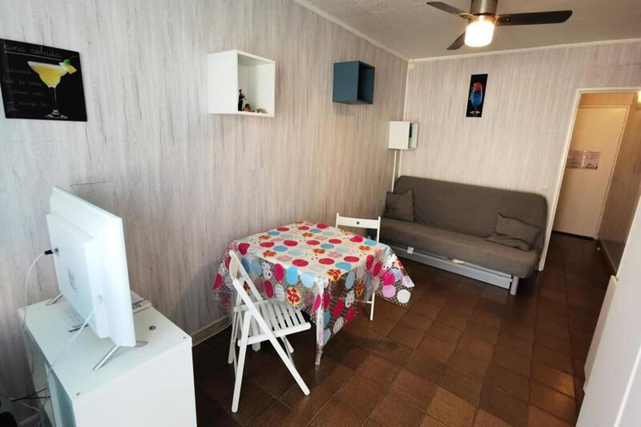 This charming 20m² studio apartment is located on the 1st floor of a secure residence with digital code access, offering a comfortable stay for up to 3 people. The living room features a 140 cm sofa bed and a 90 cm extra bed for children, along with a television, wifi, and a dining area with a microwave. The apartment is equipped with all necessary amenities for a pleasant stay, including a bathroom with a WC. Pets are not allowed. The studio is ideally situated just 100 meters from the beach and the tourist office, and only 200 meters from the vibrant city center on Rédares shopping street. The fishing port shopping center is just 300 meters away, offering convenient access to shops and restaurants. Guests can also enjoy nearby attractions, including the Seaquarium, mini golf, Babyland, private beach, beach slide, and water sports, providing a wide range of activities for all ages. The kitchenette comes equipped with a fridge-top and a 2-burner hob, allowing guests to prepare simple meals during their stay. Municipal parking is available just 200 meters away, providing easy access for guests traveling by car. This well-furnished studio provides all the essentials for a comfortable and relaxing holiday in Grau du Roi.